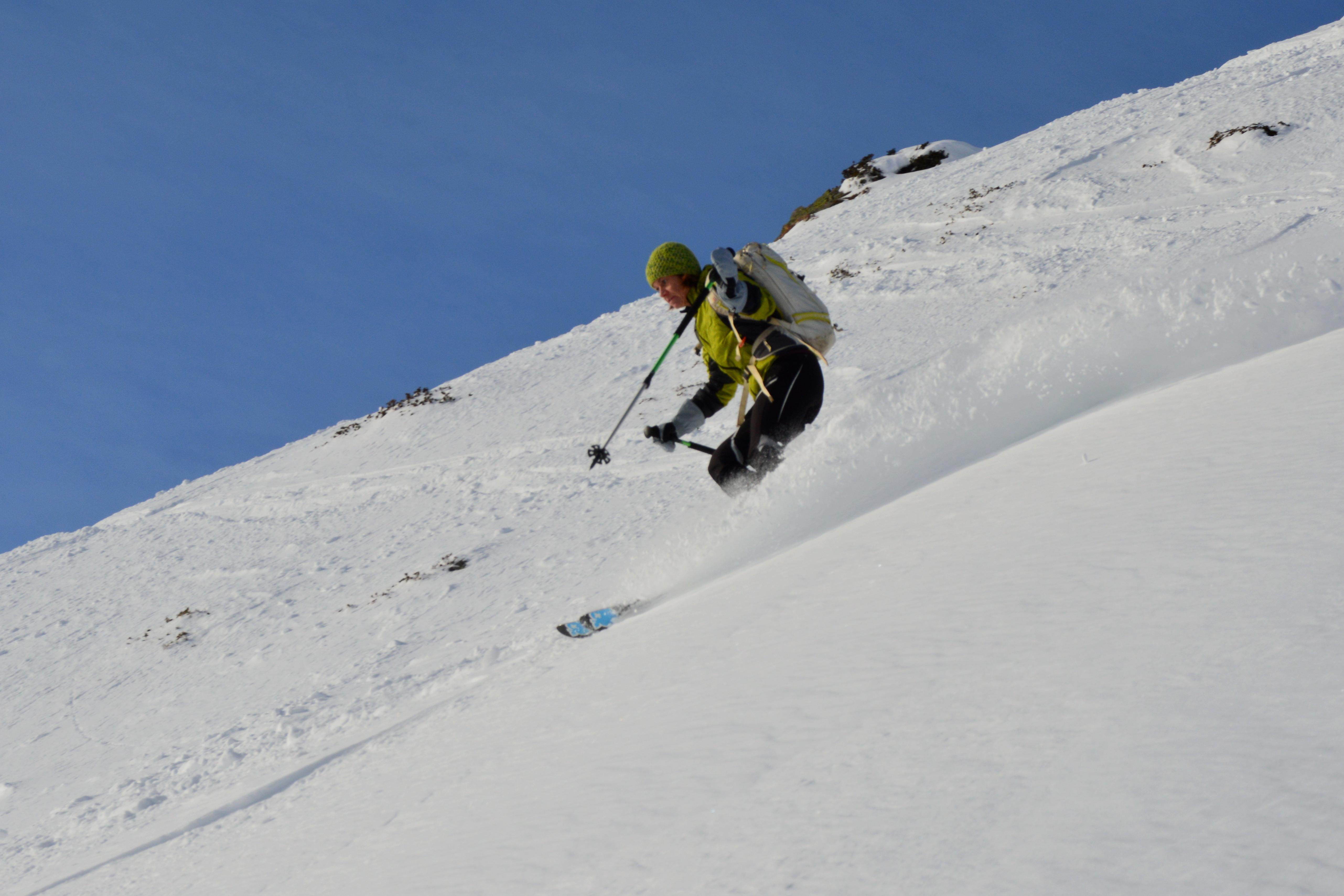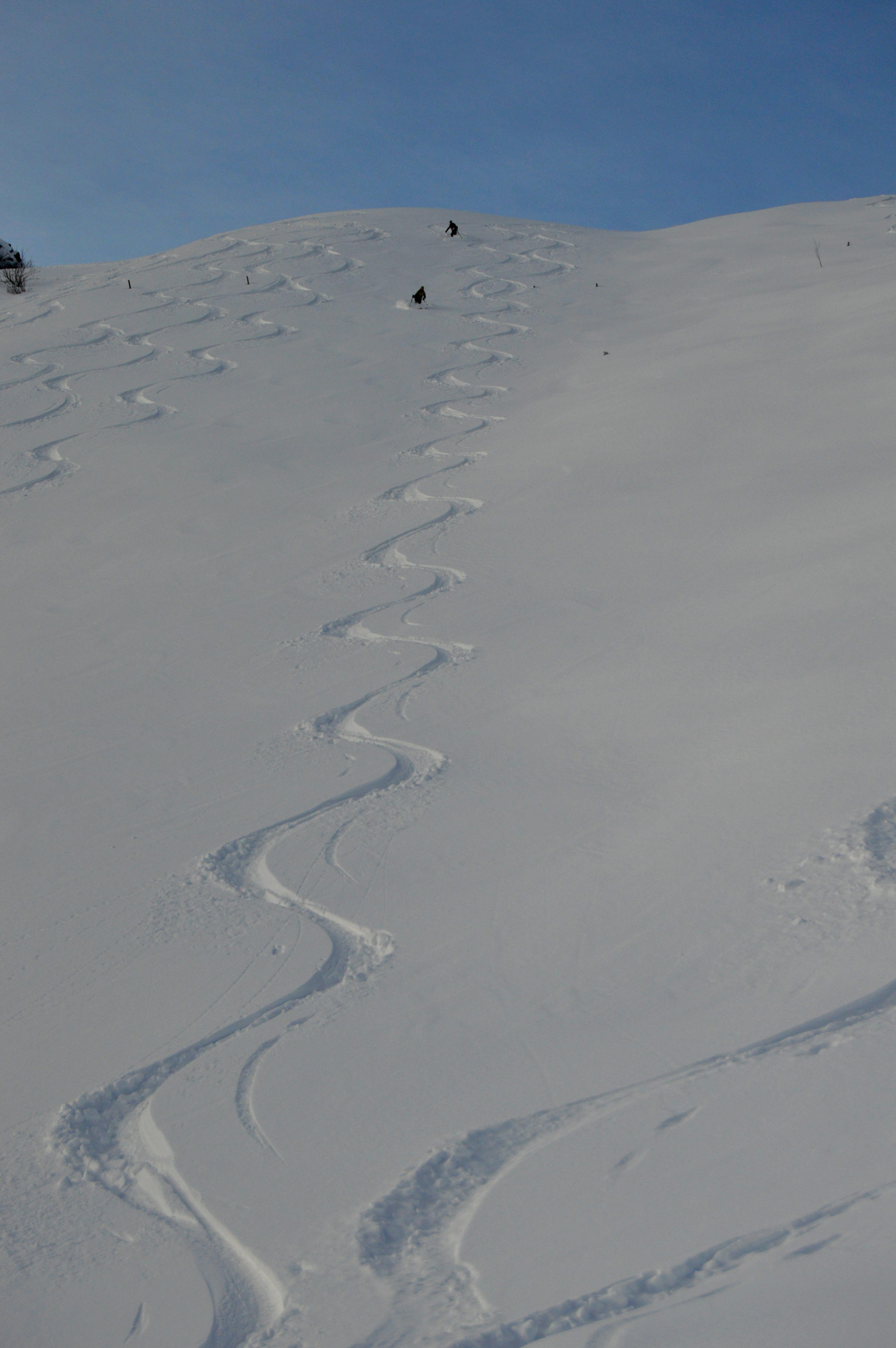 15-20cm gesetzter Pulverschnee mit weicher Unterlage während der gesamten Abfahrt.