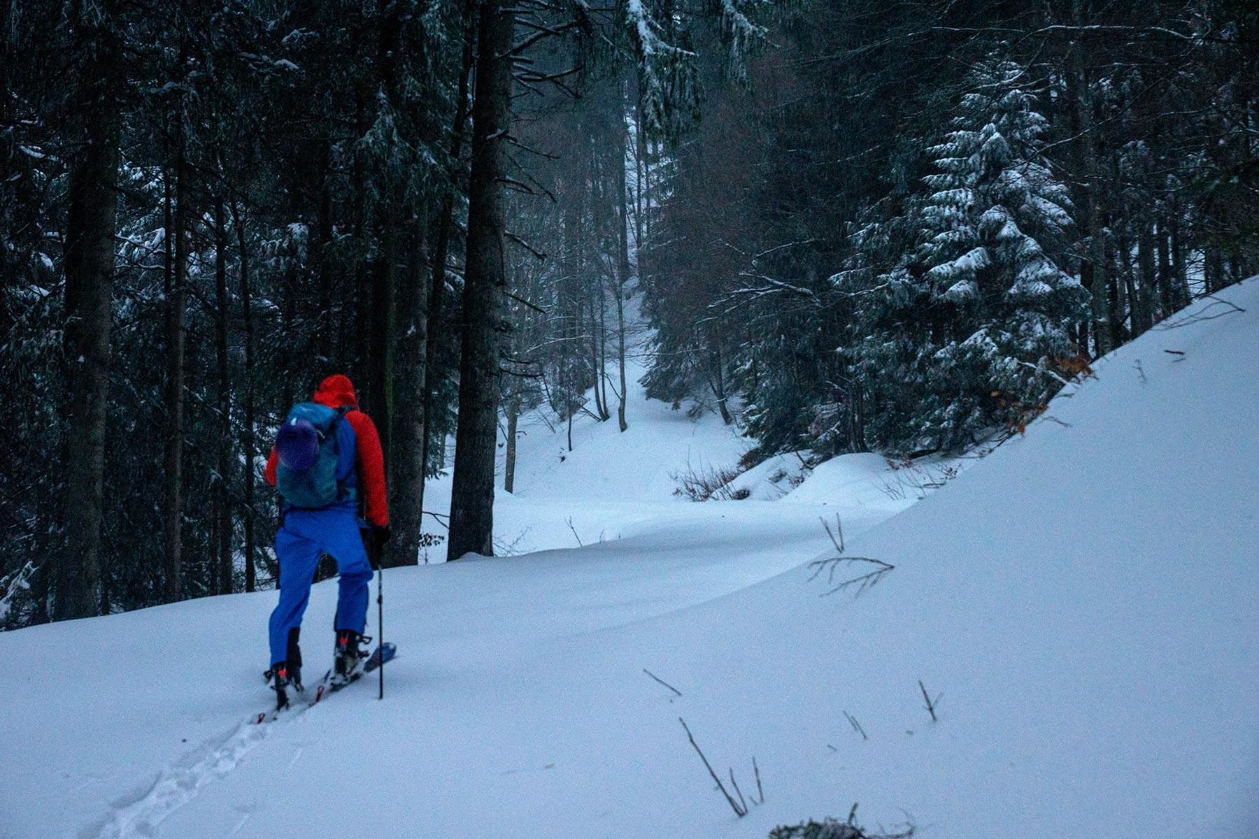 Um 07:30 losgegangen und bis zum Zinken gespurt. Teilweise keine Sicht. Viel Wind. Die Spurt ging nicht über 35 Grad und bei den Spitzkehren sind die Ecken teilweise in einer Mächtigkeit von 20 cm abgerutscht.