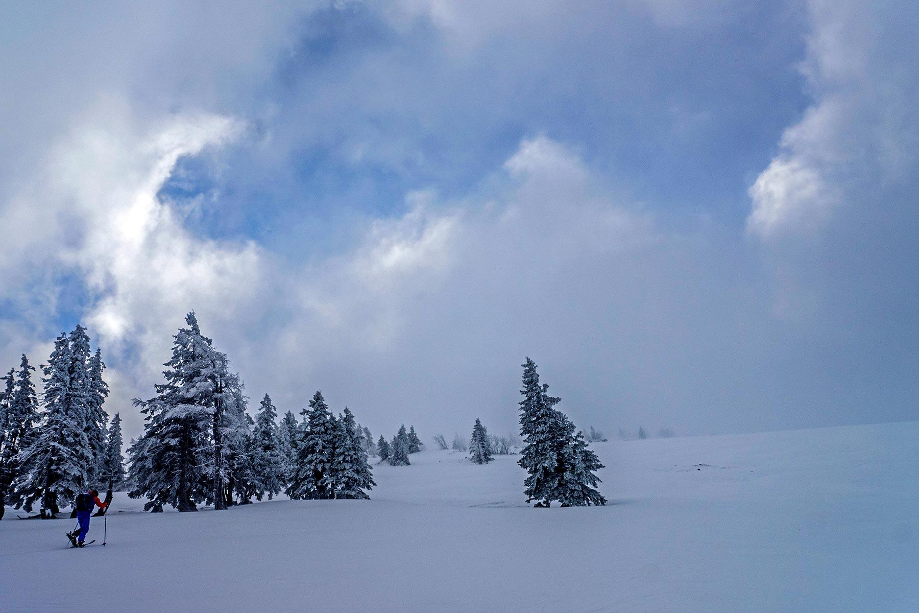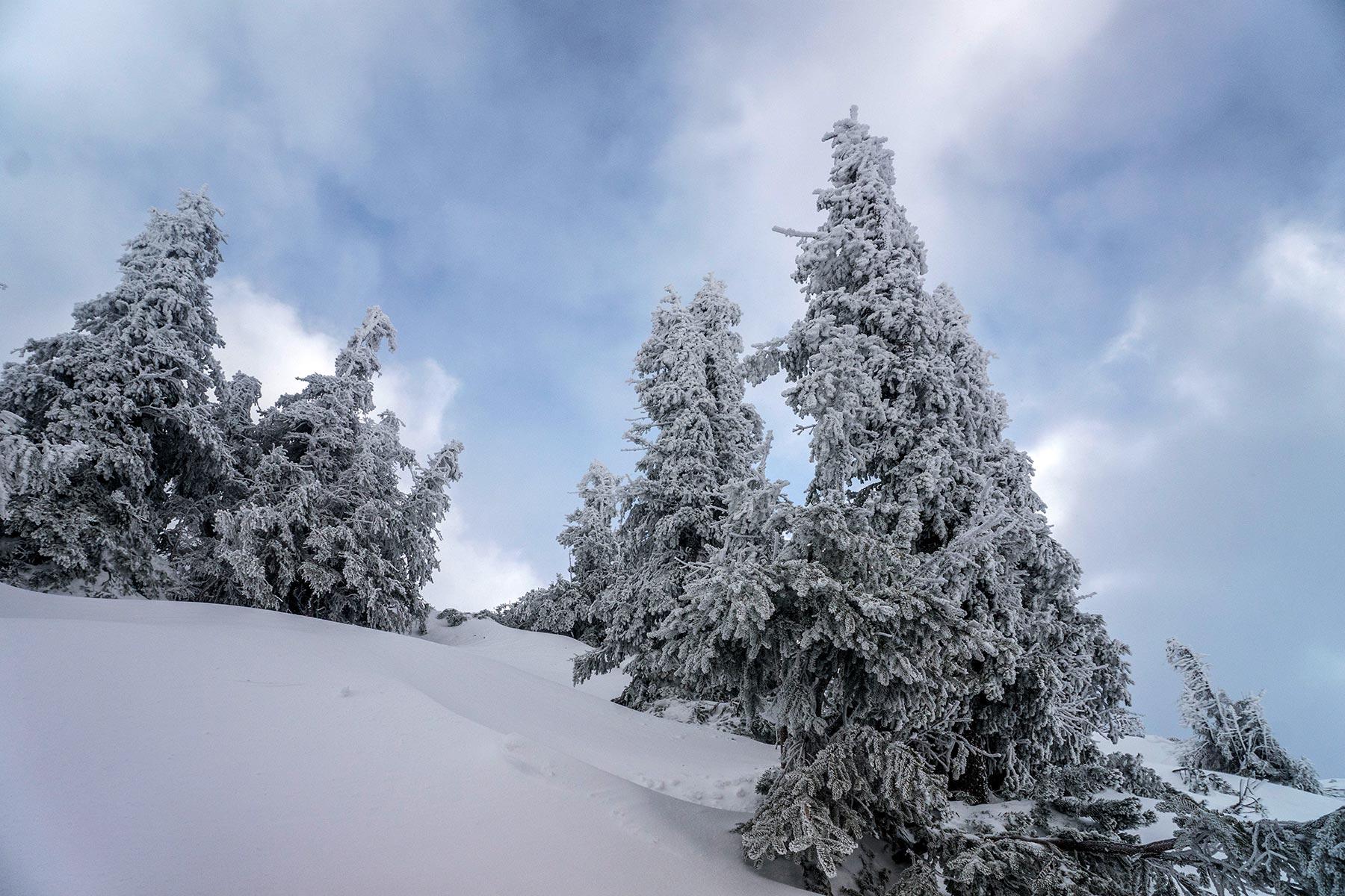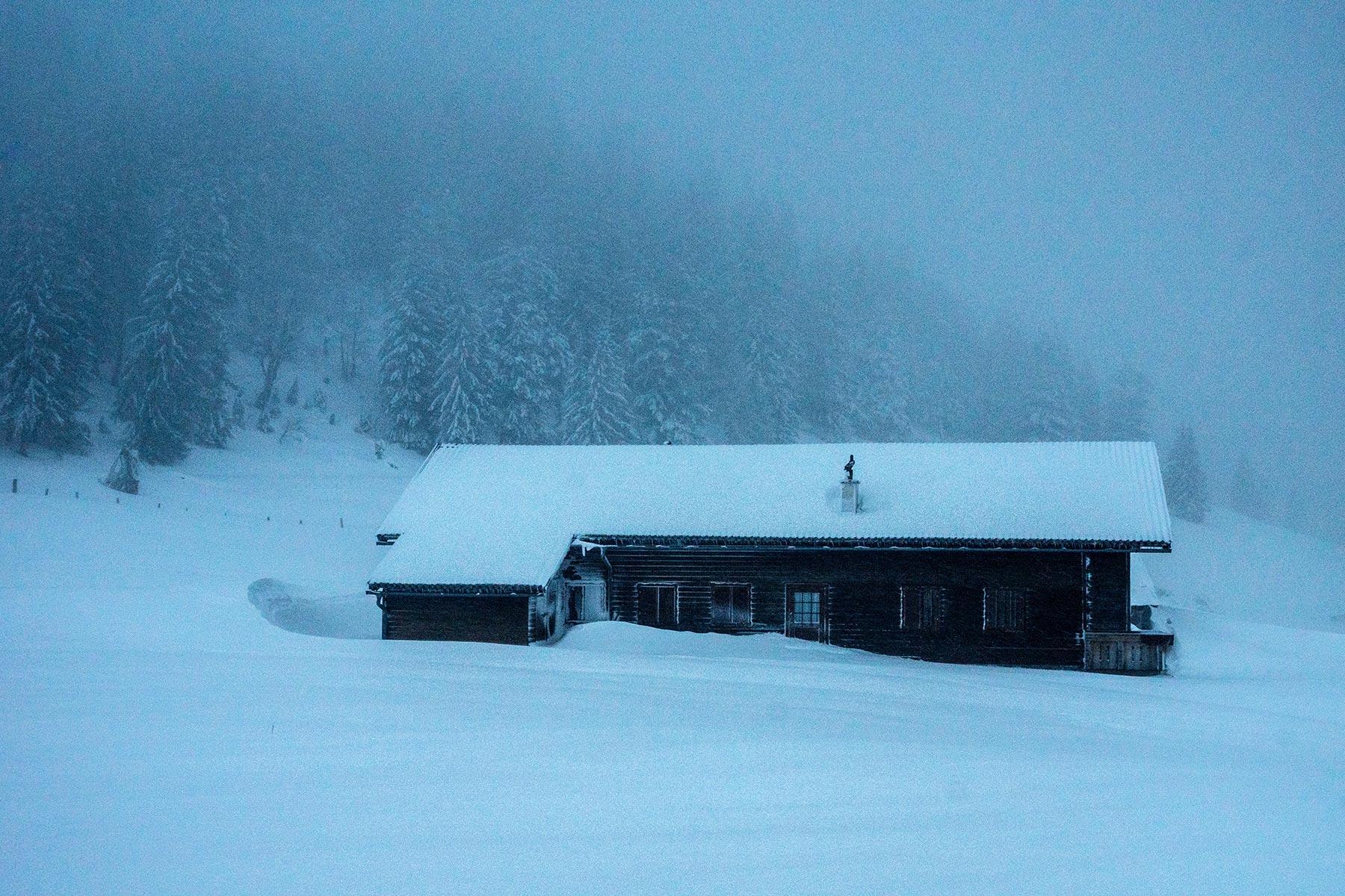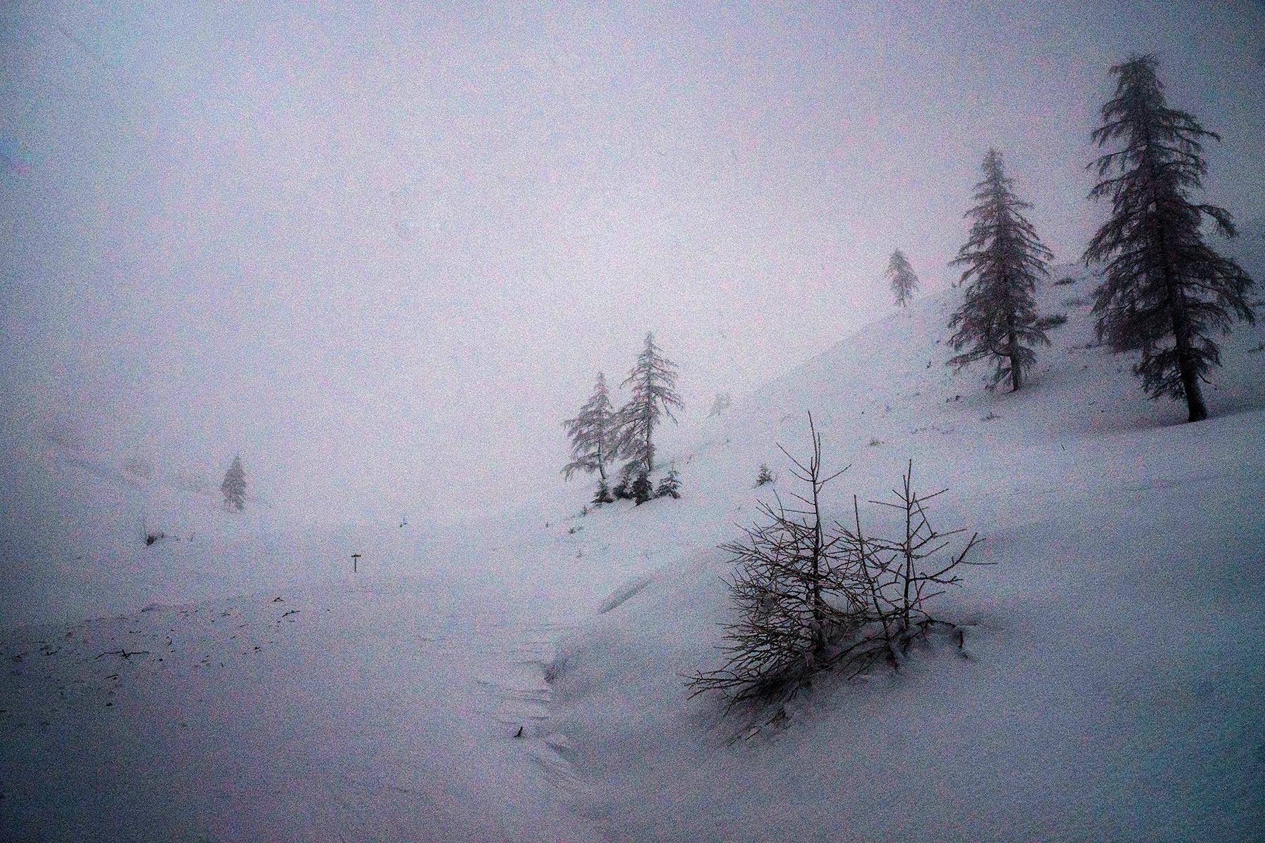 Es hat immer wieder geschneit und gegraupelt. Durch den Wind haben die Wolken immer wieder aufgemacht, teilweise war es aber auch null Sicht.