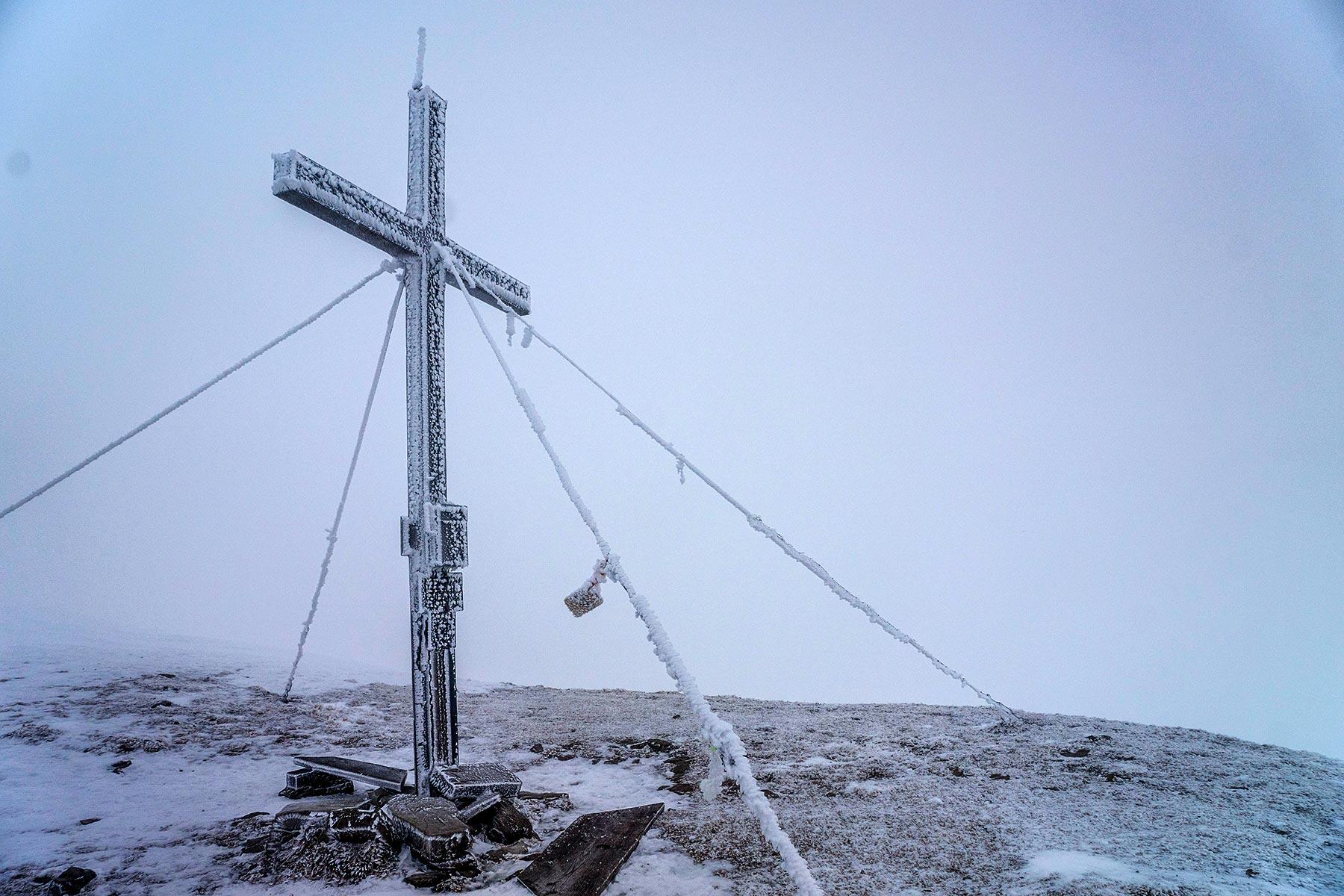 Beim Start um die 0 Grad, oben am Gipfel nicht viel Kälter aber starker Wind.