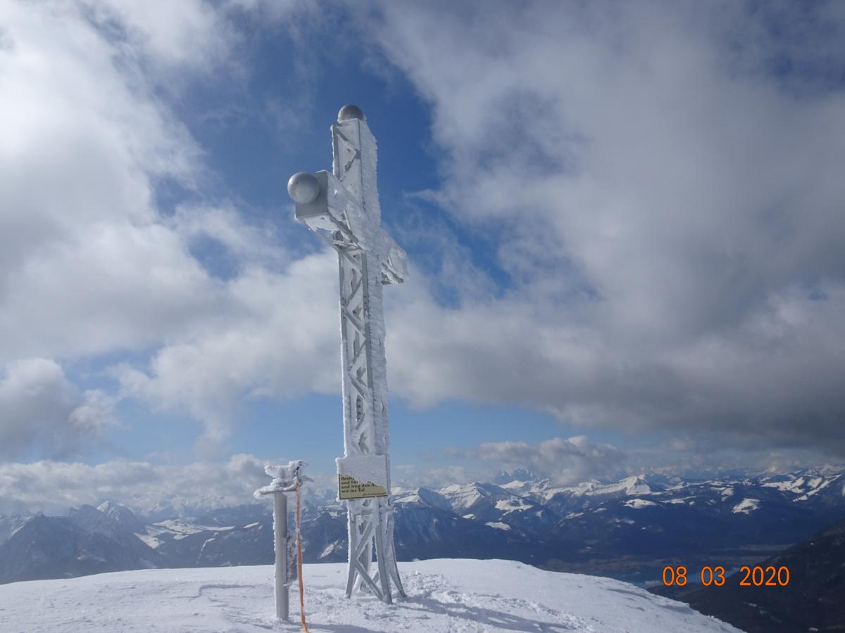 Erstmals heuer kein verharschter Gipfel - Pulver bis oben. Außer drei Schneeschuhgehern die nachkamen niemand am Berg - schöner gehts nicht.