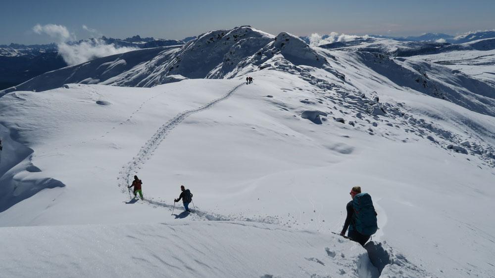 Wir haben dennoch eine sehr schöne kleine Durchquerung gemacht, die wegen der großen Schneemenge zu Fuß ganz schön anstrengend war. Von latzfons ging es zur Klausener Hütte, dann am nächsten Tag weiter zum Latzfonser Kreuz und über den Jocherer Berg zur Villanderer Alm (Gasser Hütte).