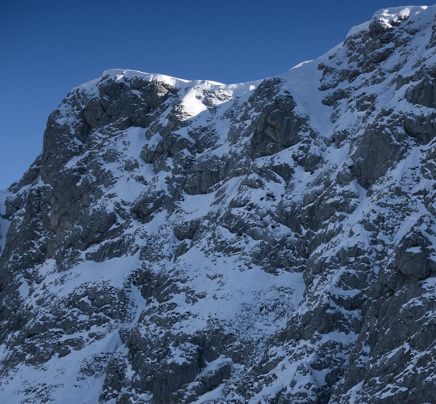 Über uns turnen die Gemsen in der steilen schattigen Fagsteinwand herum und lösen kleine Staublawinen aus.