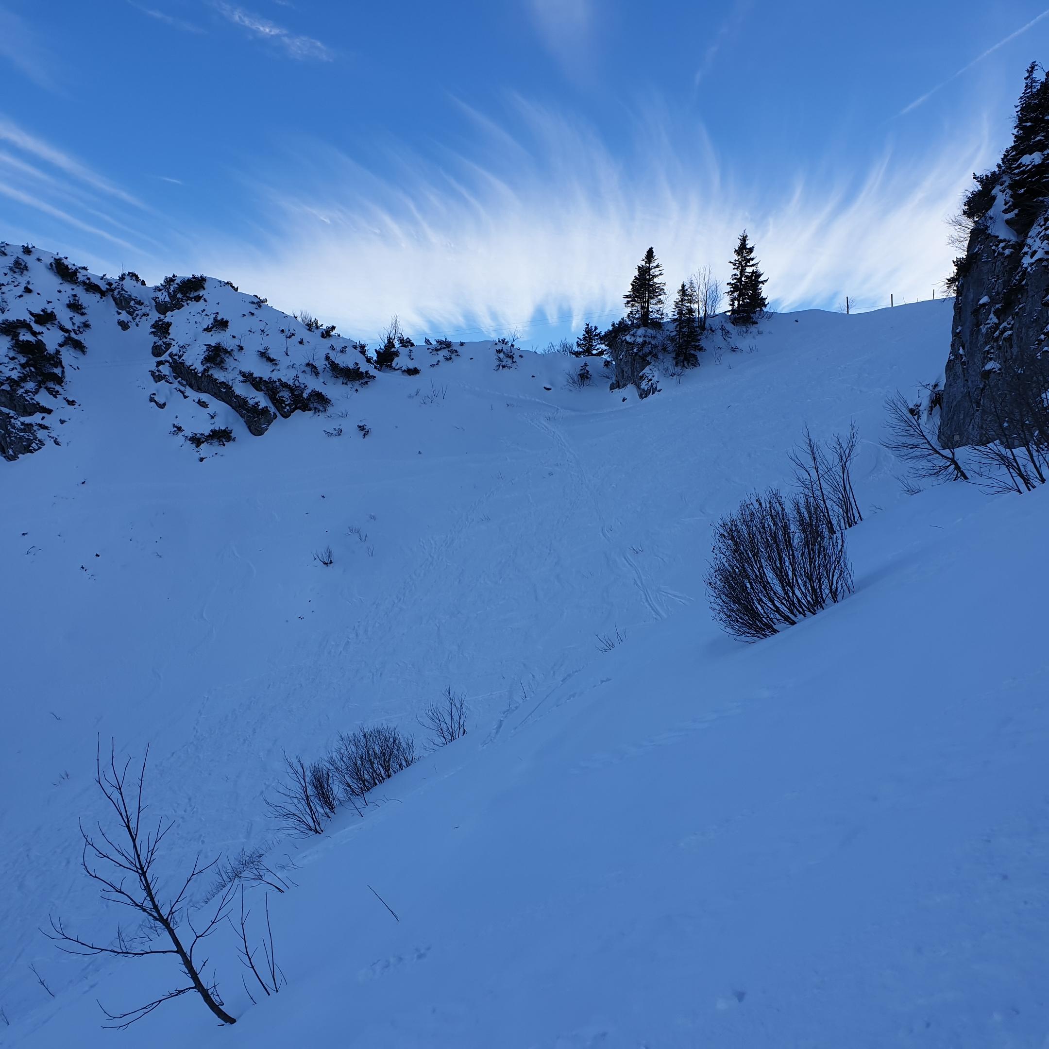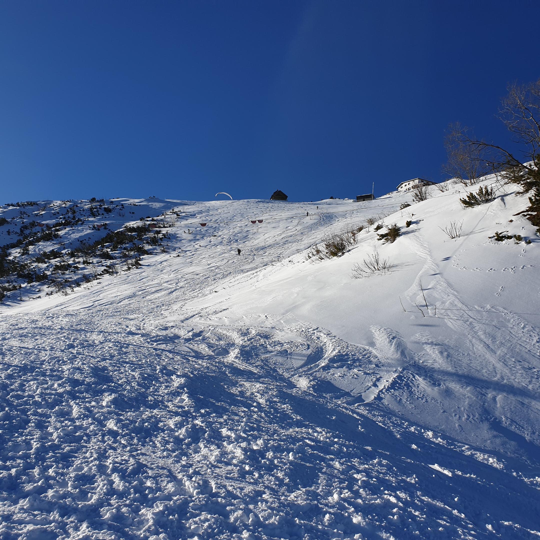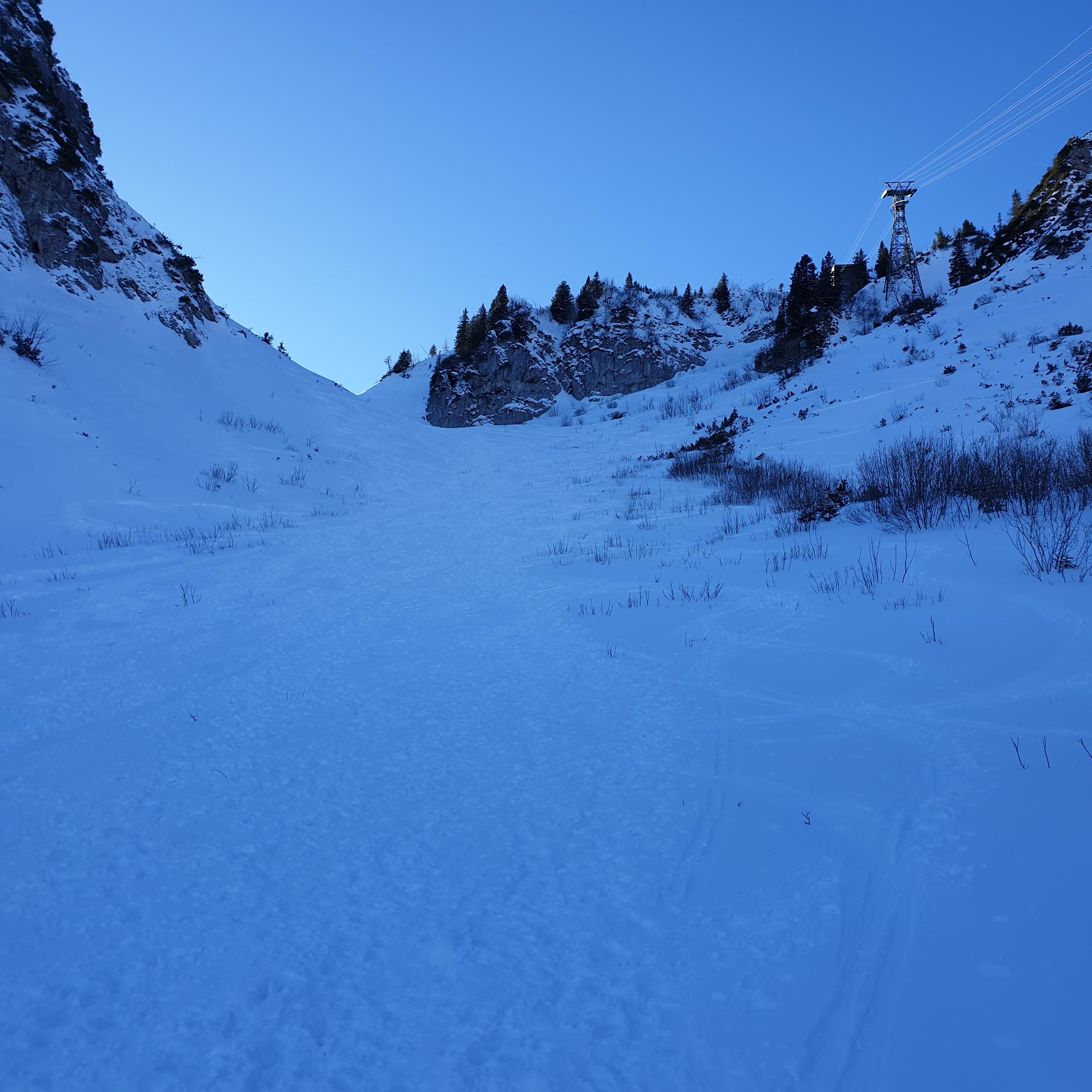 Ab "Loch" super Schnee u. Dank OHNE Pistenpräparierung gute Schneeverhältnisse. Obe gschmissn hob i mi übers Feuerköpfe, der Oberhammer;-) danach links ghoidn, bis i kurz vor dem großen u. kleinen Treffer wieder auf die Piste kemma bin. Hob nur selten so wenig gschnauft beim obe fahrn wia heid. Tragender Untergrund u. a Heidei Neischnää, kaum Bugl, kein Eis das ganze griffig. Auf der Piste (Bründlinger Alm) hod ma bissal schaun miasn wegen Stoana, aber nur a bissal