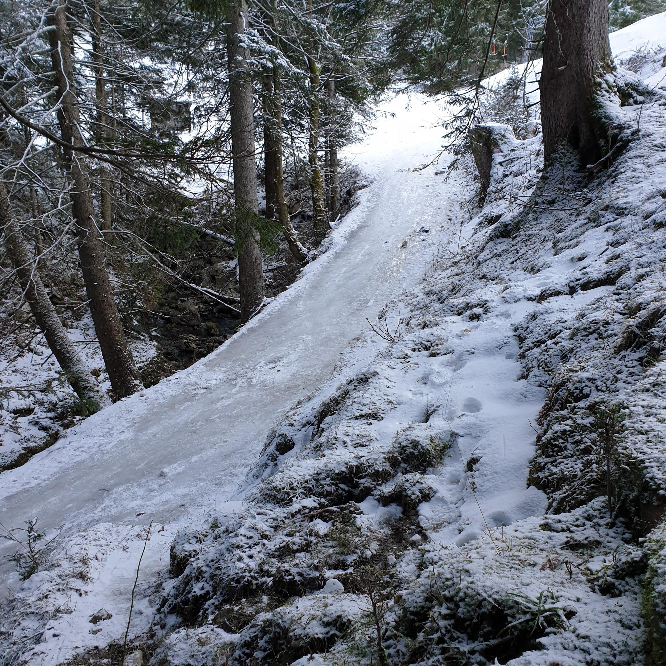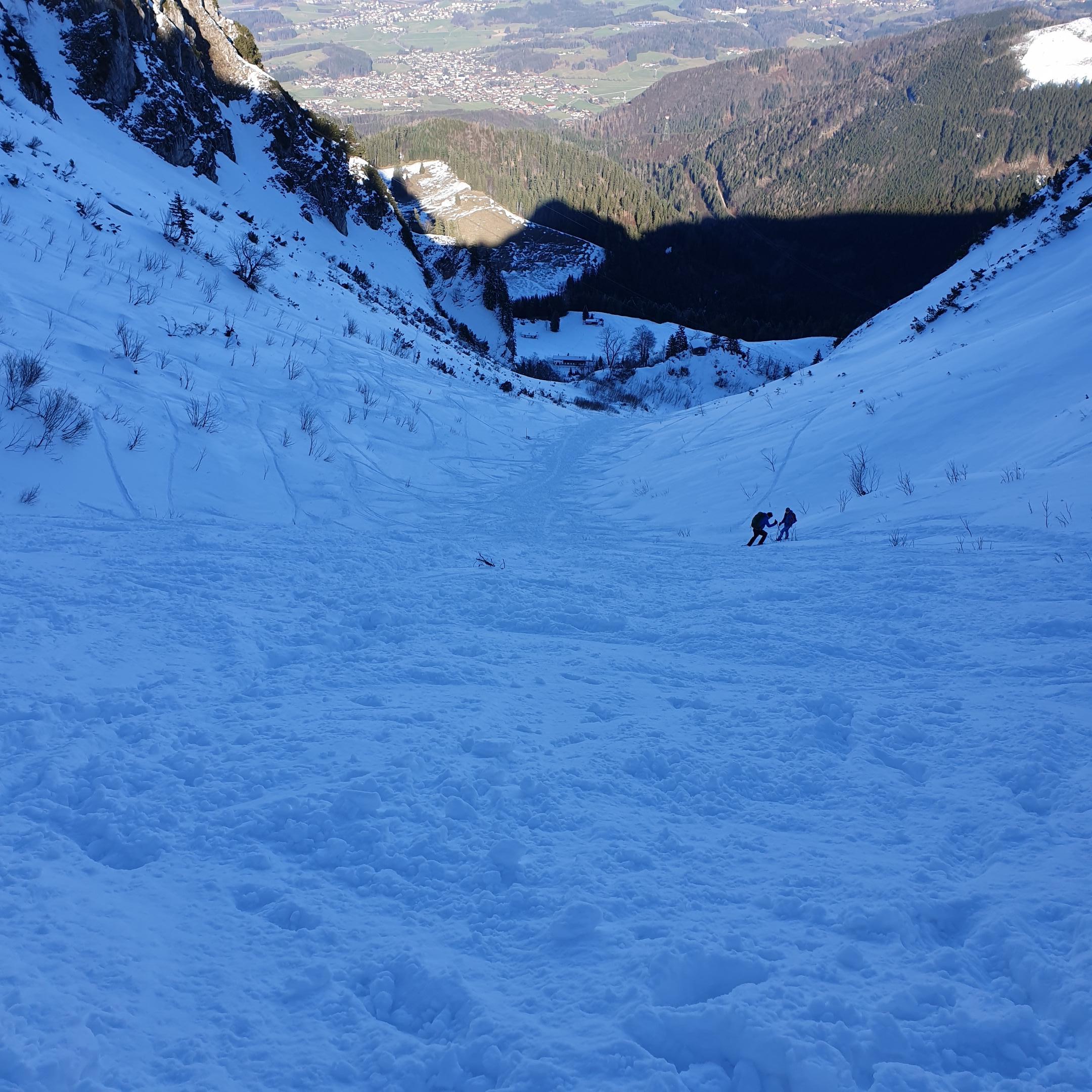 Heute auf dem Hochfelln, der HAMMER. Mittag von der Steinberger Alm los bis zum Wald mit Ski dann ume drong bis zur Mittelstation, kurz bevor man den Wald verläßt, die einzige Schlüsselstelle, auf ca 20m Blankeis, Steigeisen u Pickel natürlich ned dabei. Umdrahn? ;-) Na natürlich ned. Am Rand gehts vorsichtig weiter. ( einer war oben am Gipfel mit Steigeisen )