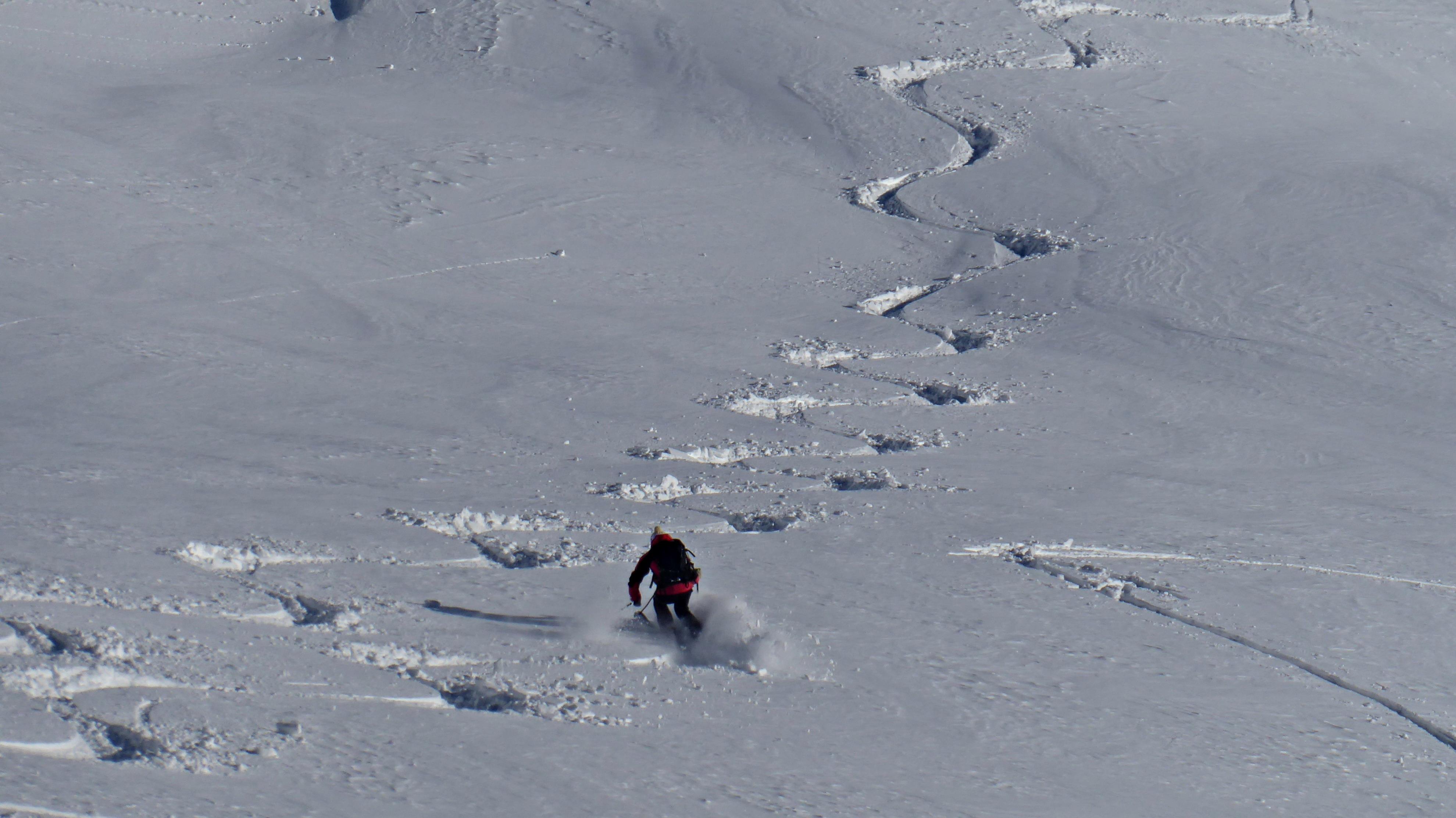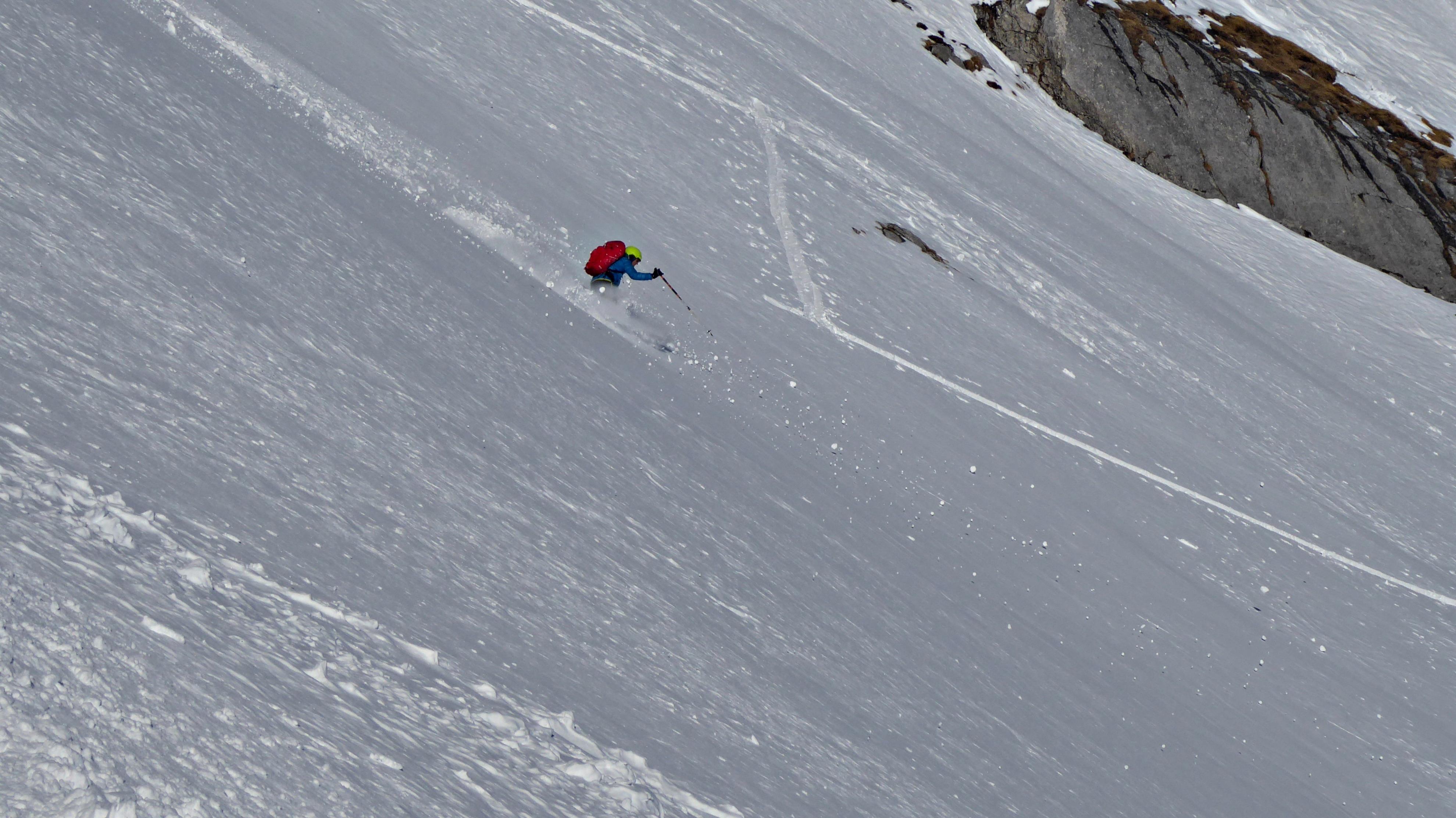 heute in fast allen Expositionen (ausgenommen windexponierte Nordwestseite) ein gut gesetzter, teils vermutlich leicht windgepackter Pulver