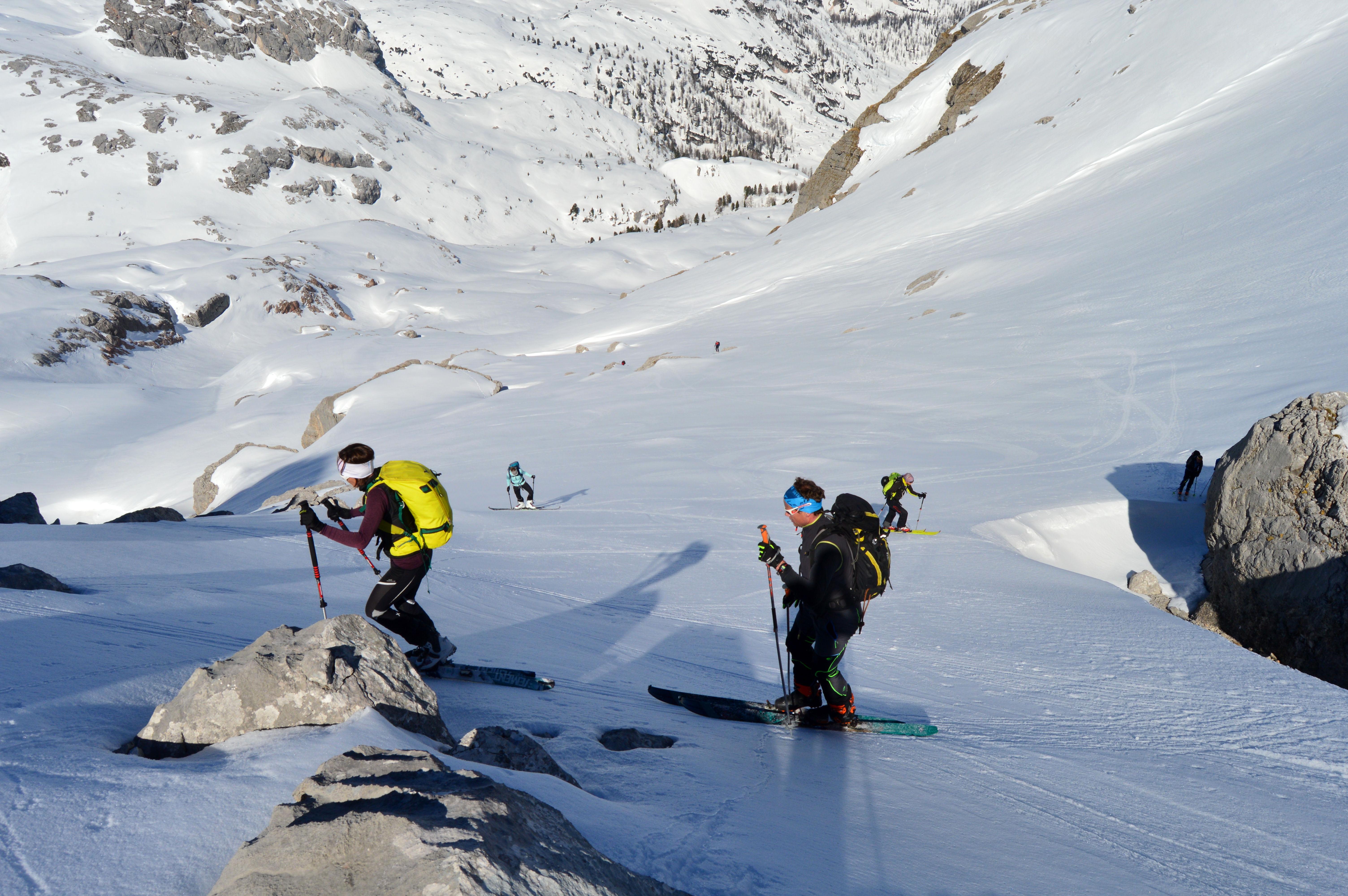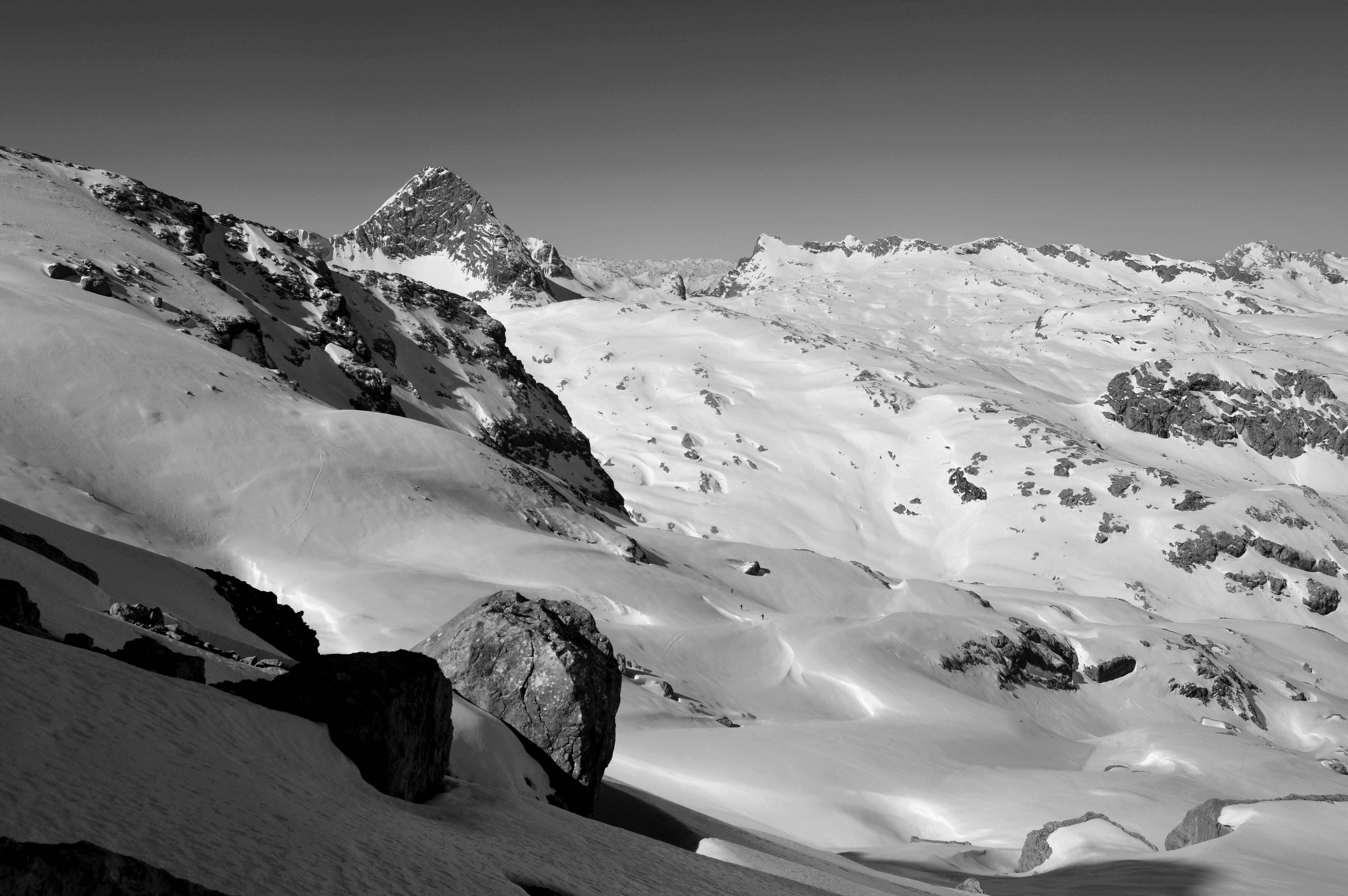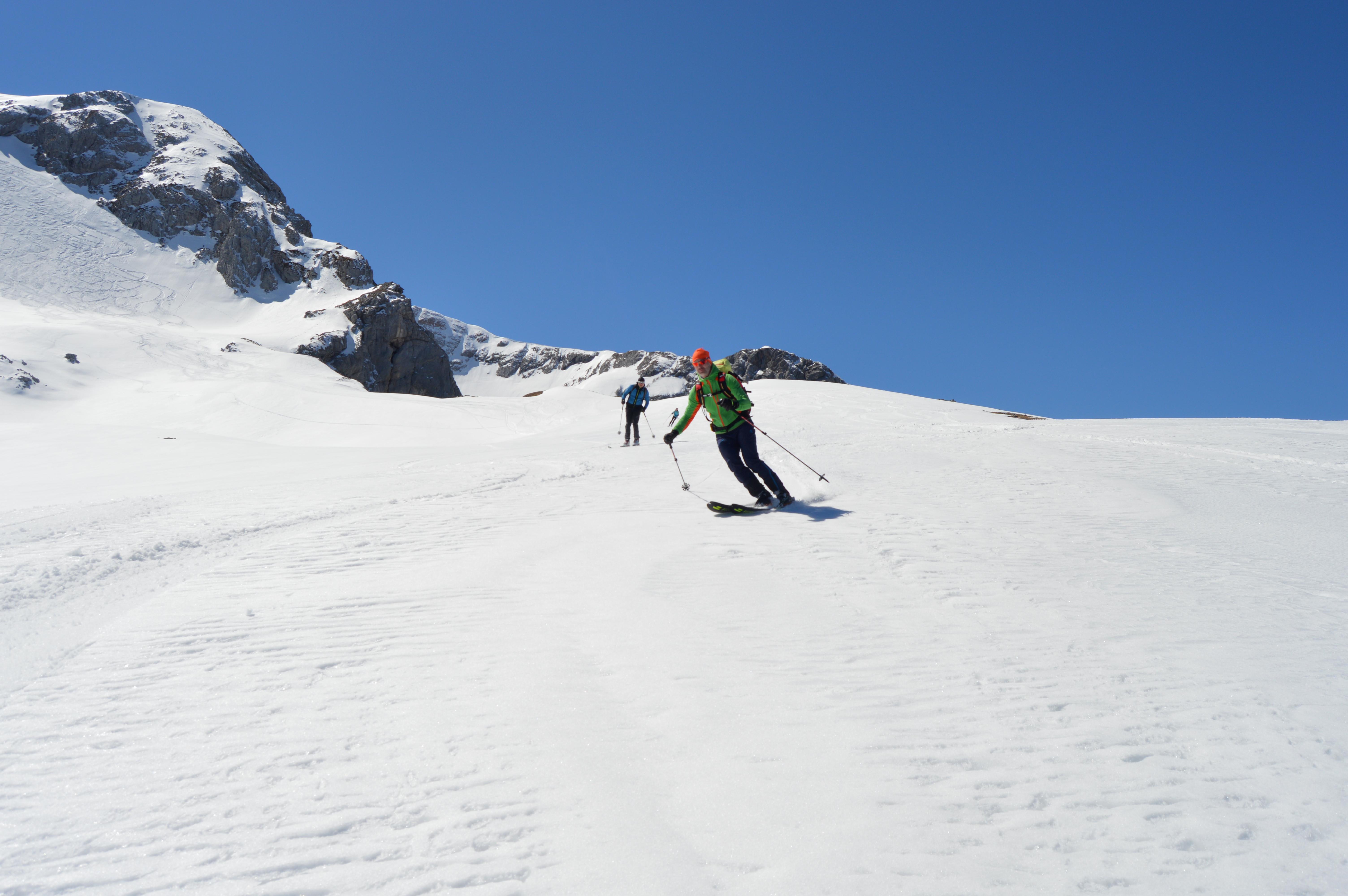 Trotz der Top Verhältnisse und dem perfekten Wetter haben wir relativ wenig Leute die Große Reib queren sehen, auch die alten Spuren hielten sich in Grenzen. Vielleicht waren wir aber auch nur zur falschen Zeit im Ledererkar unterwegs.