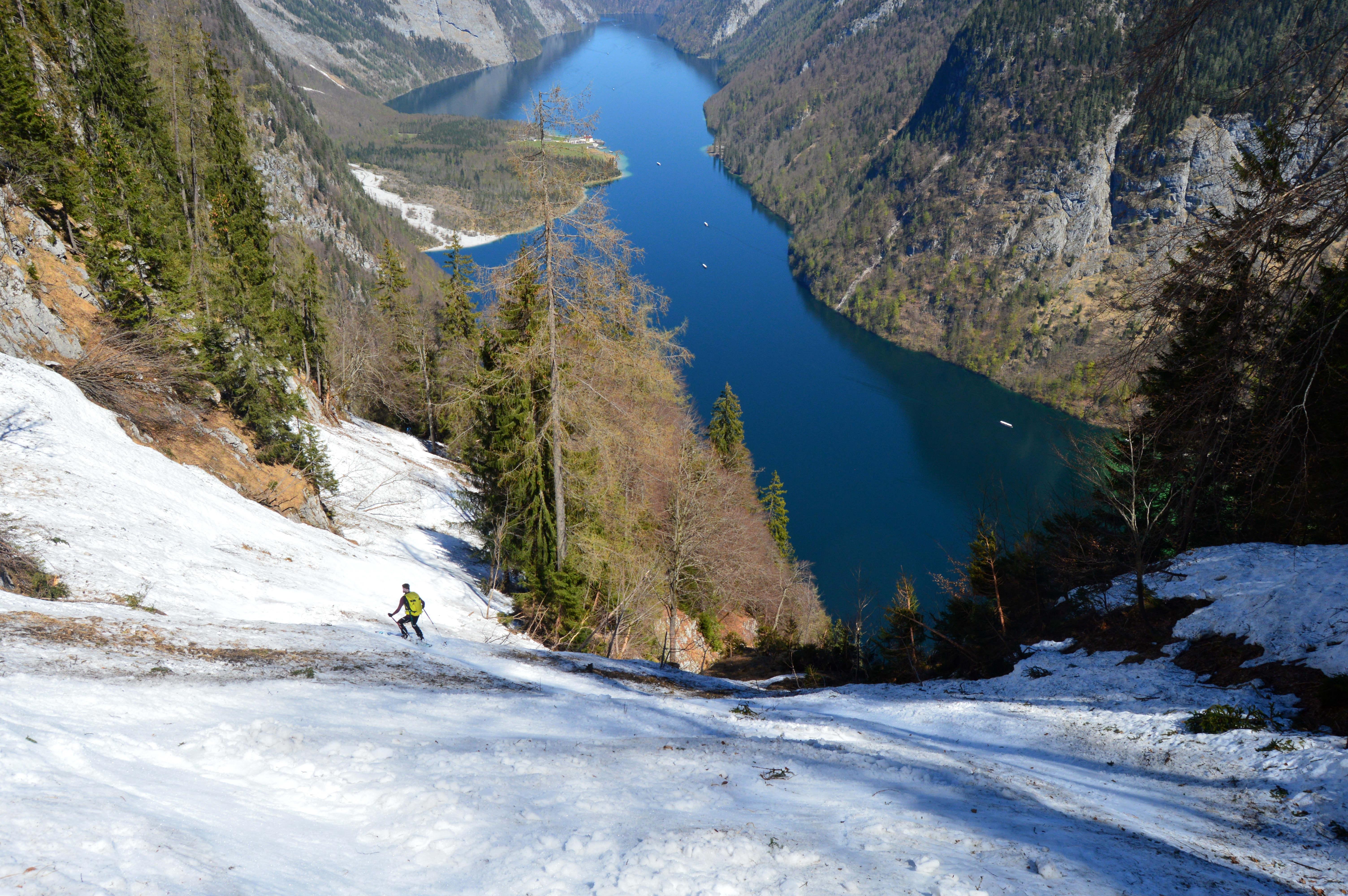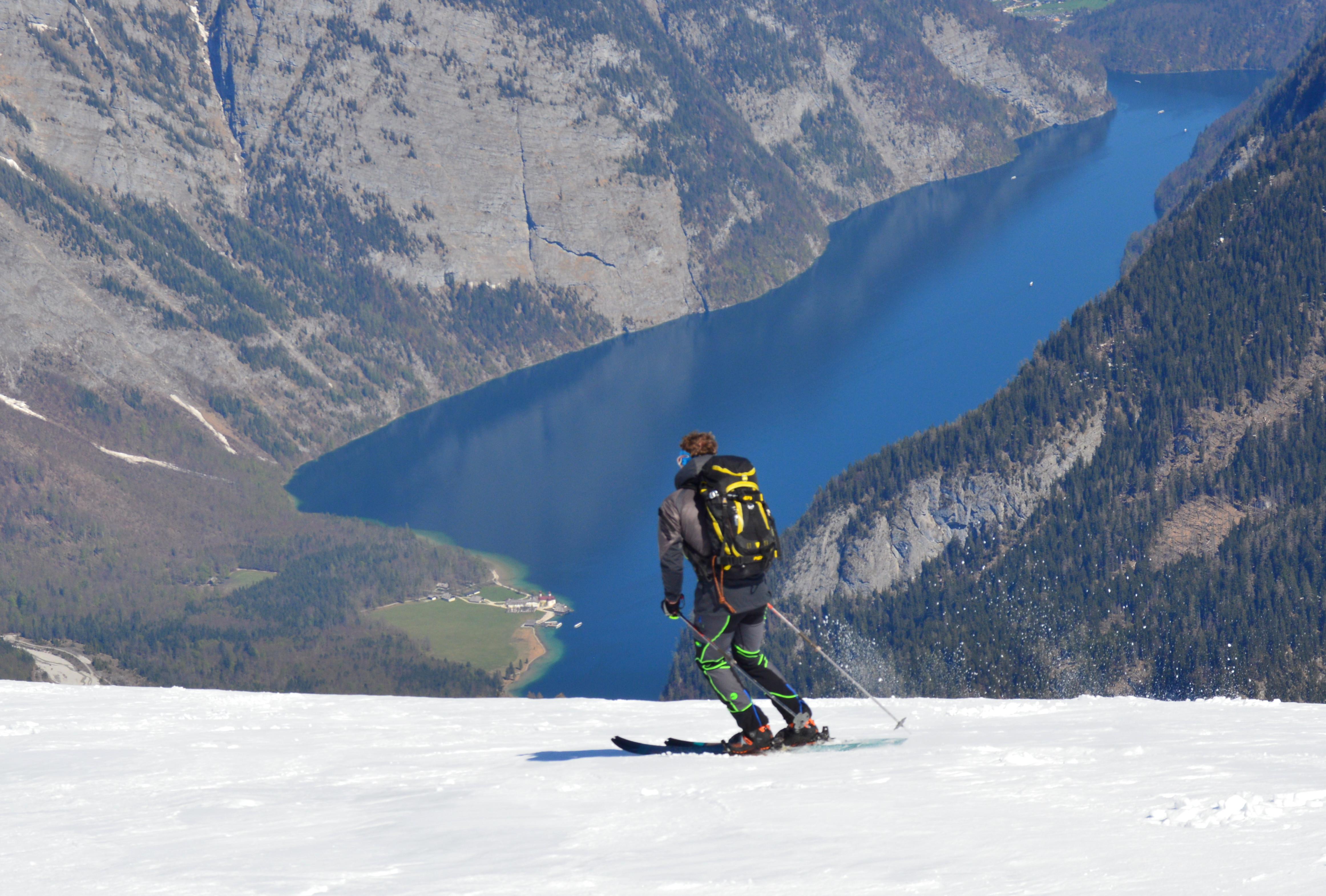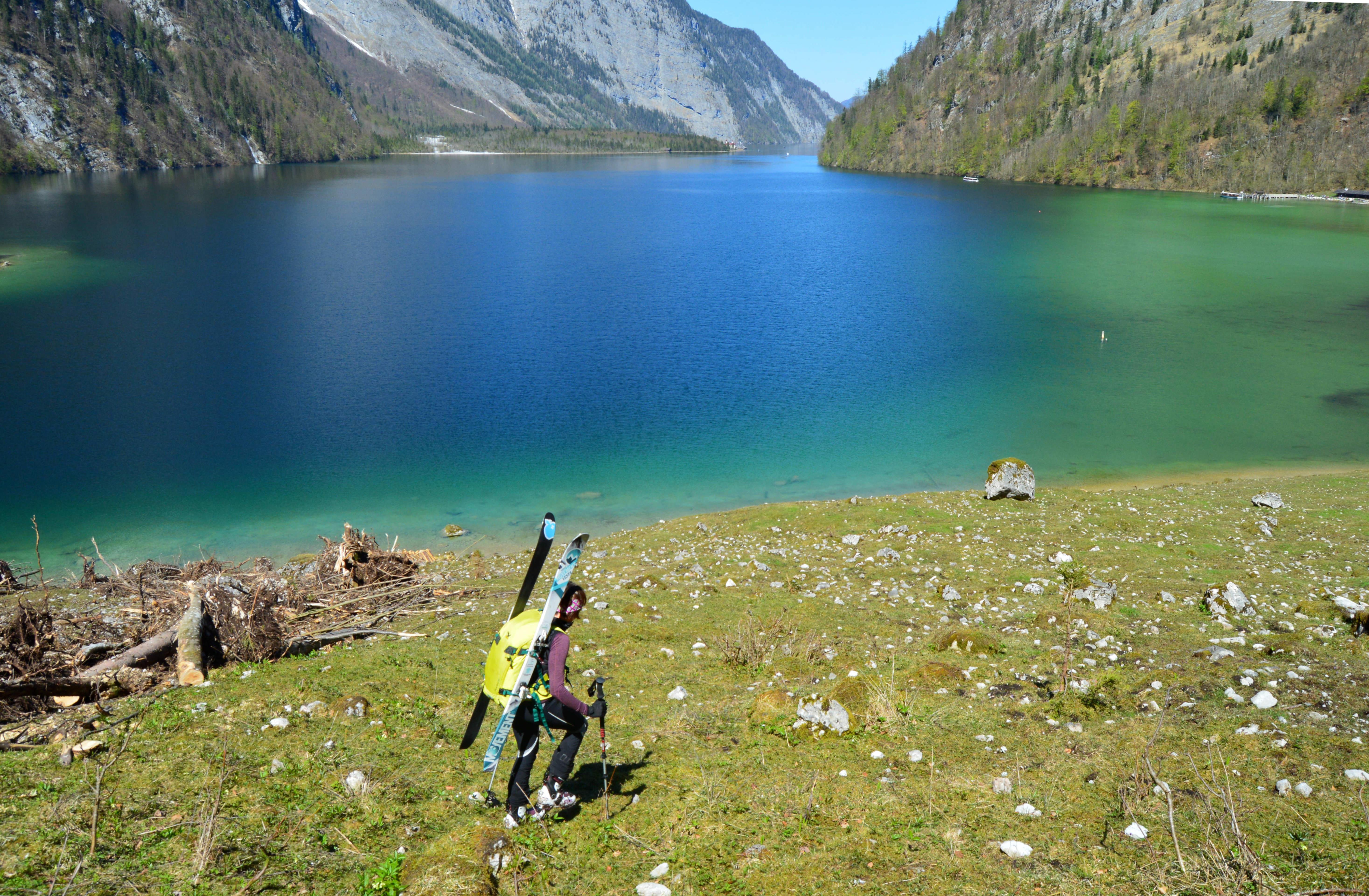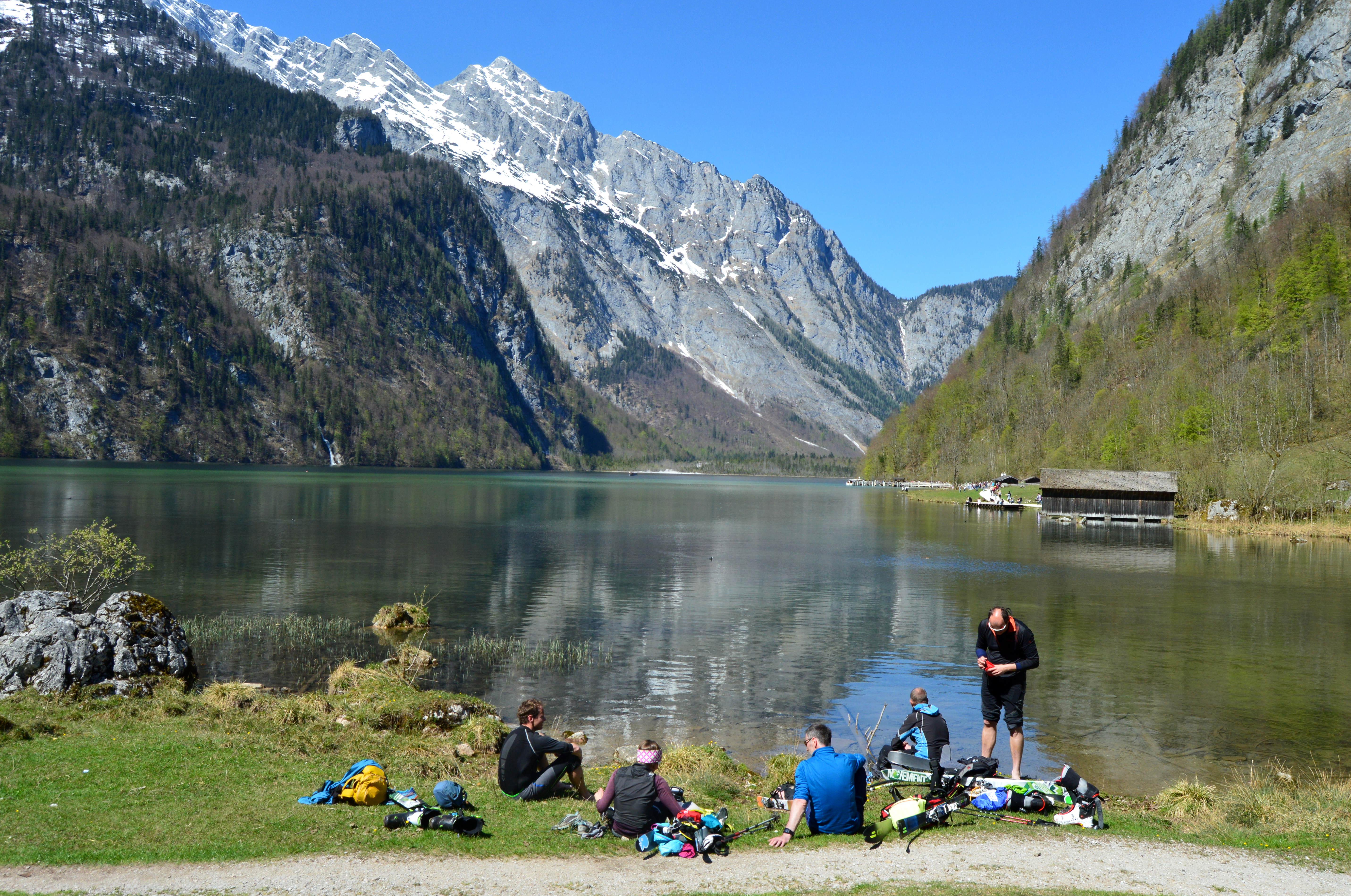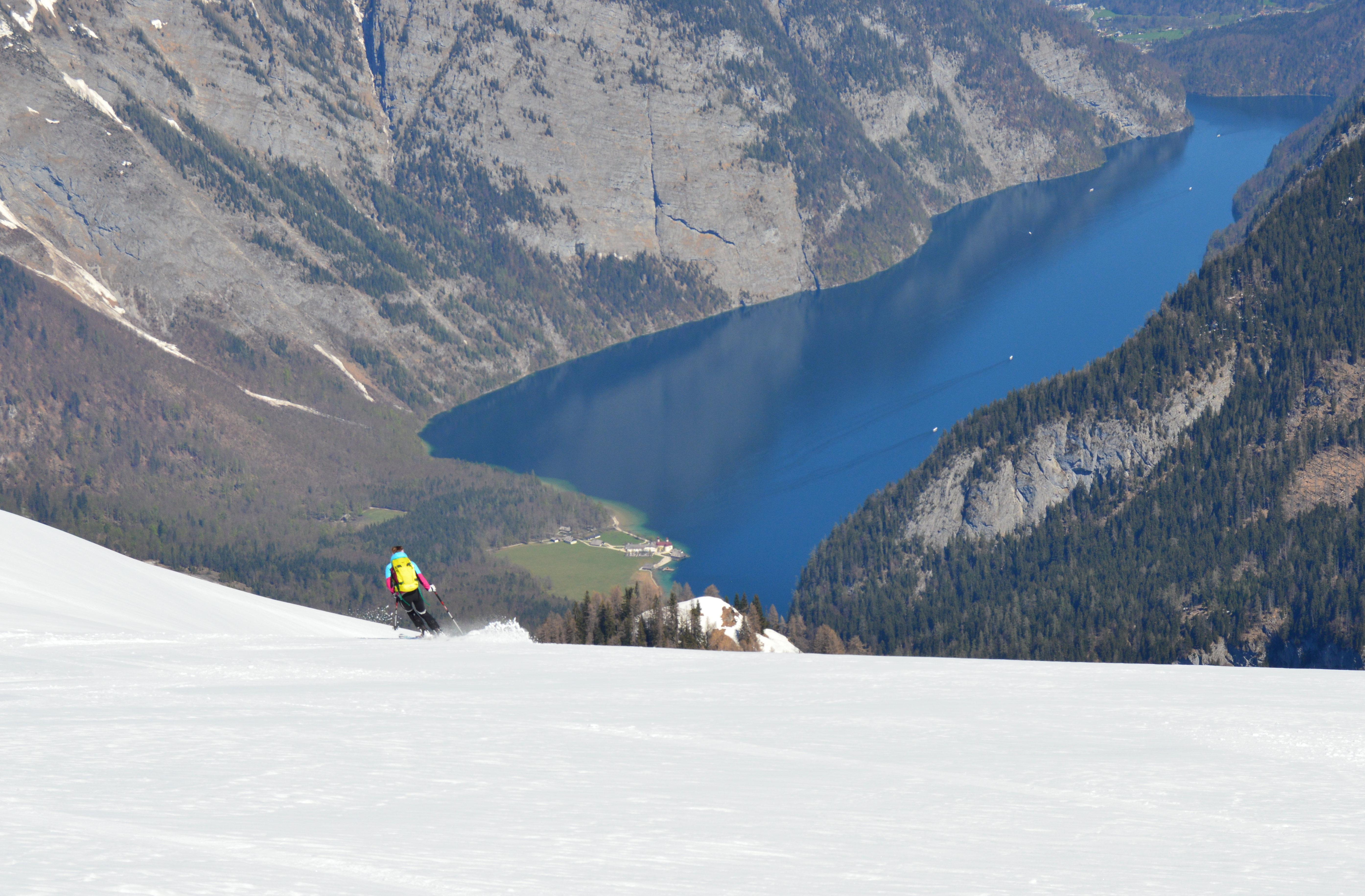 Traumtour von Maria Alm zum Königsee mit spannender Abfahrt und alpinem Abstieg nach Salet. Die Autos haben wir schon am Vortag an den Königsee gestellt und uns nach Maria Alm fahren lassen.