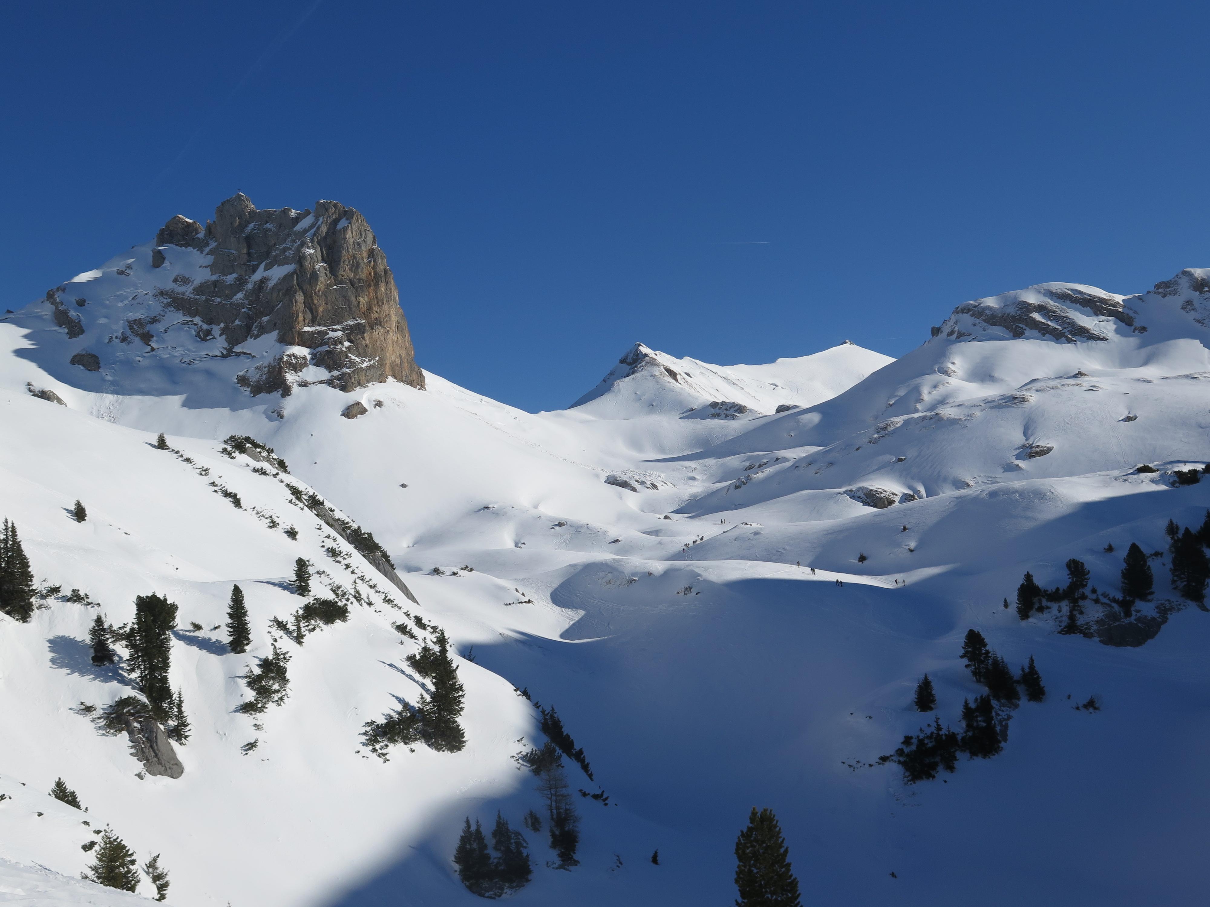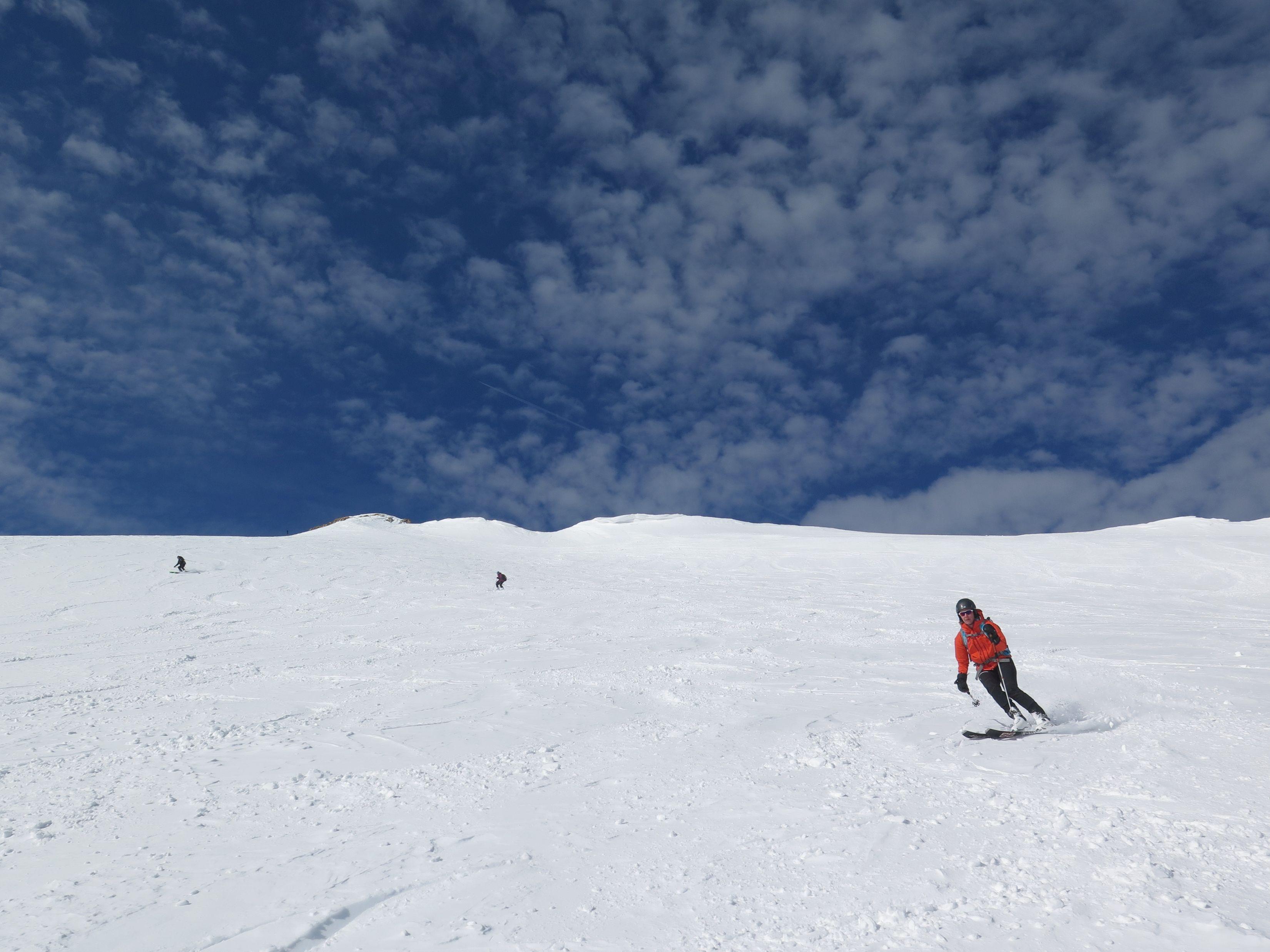 Schnee: gemischt, Pulver, Firn, Ruppig ( minimal), viele Spuren.