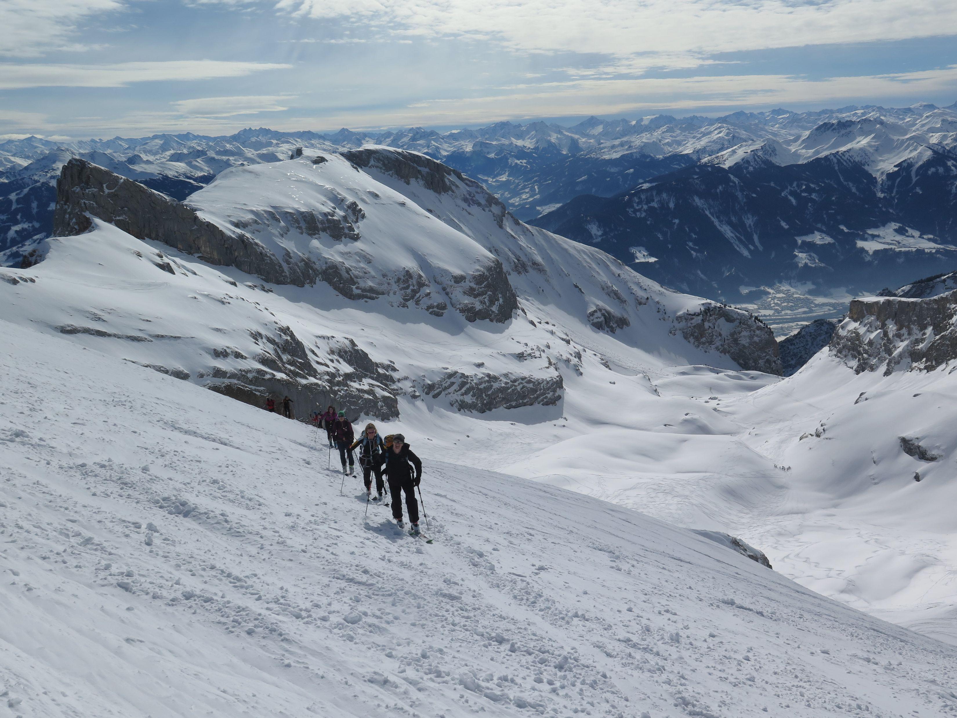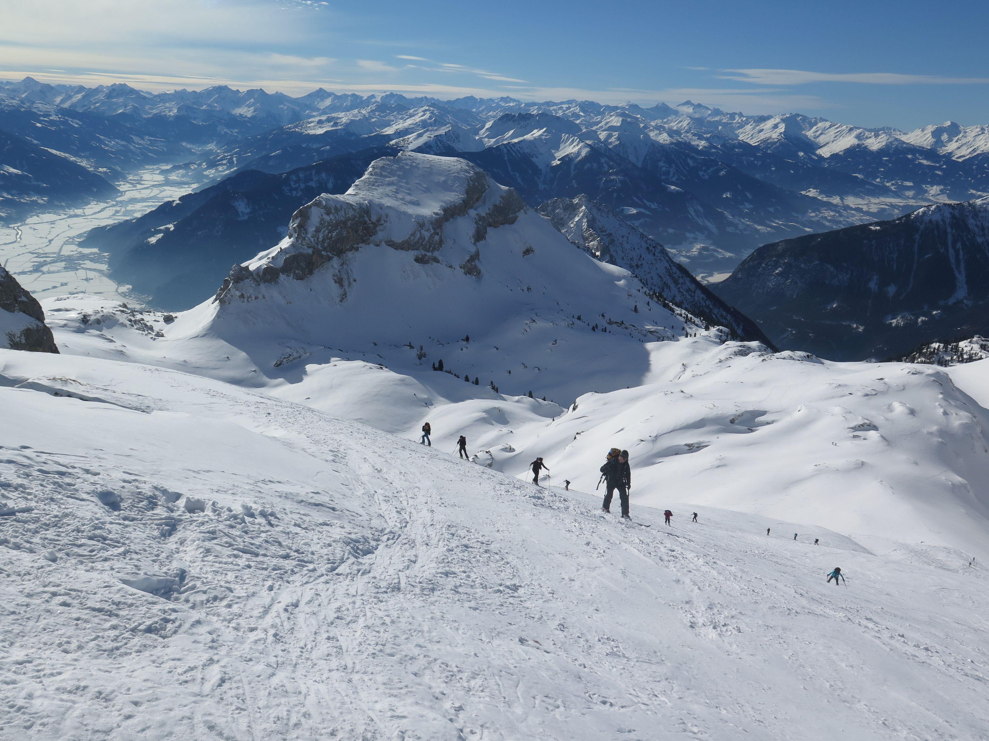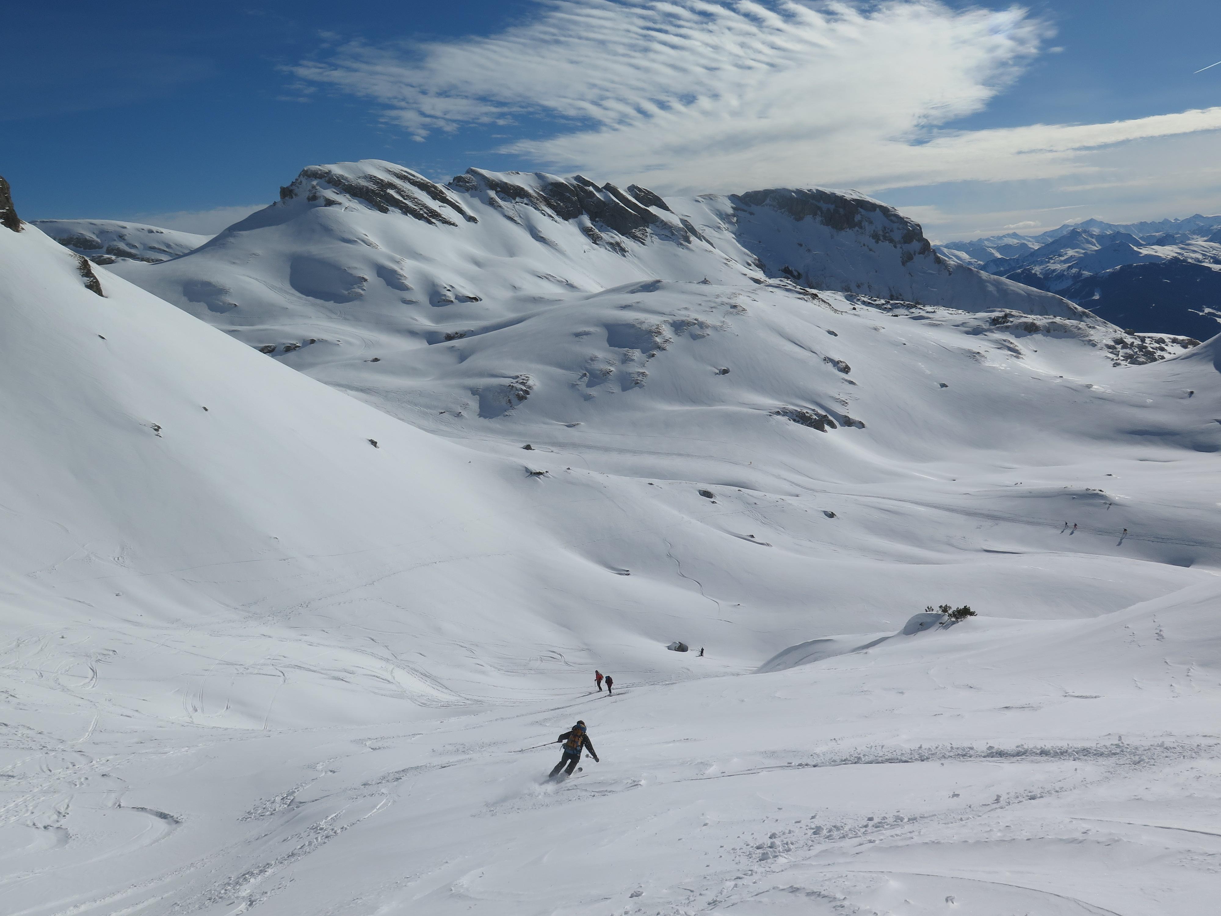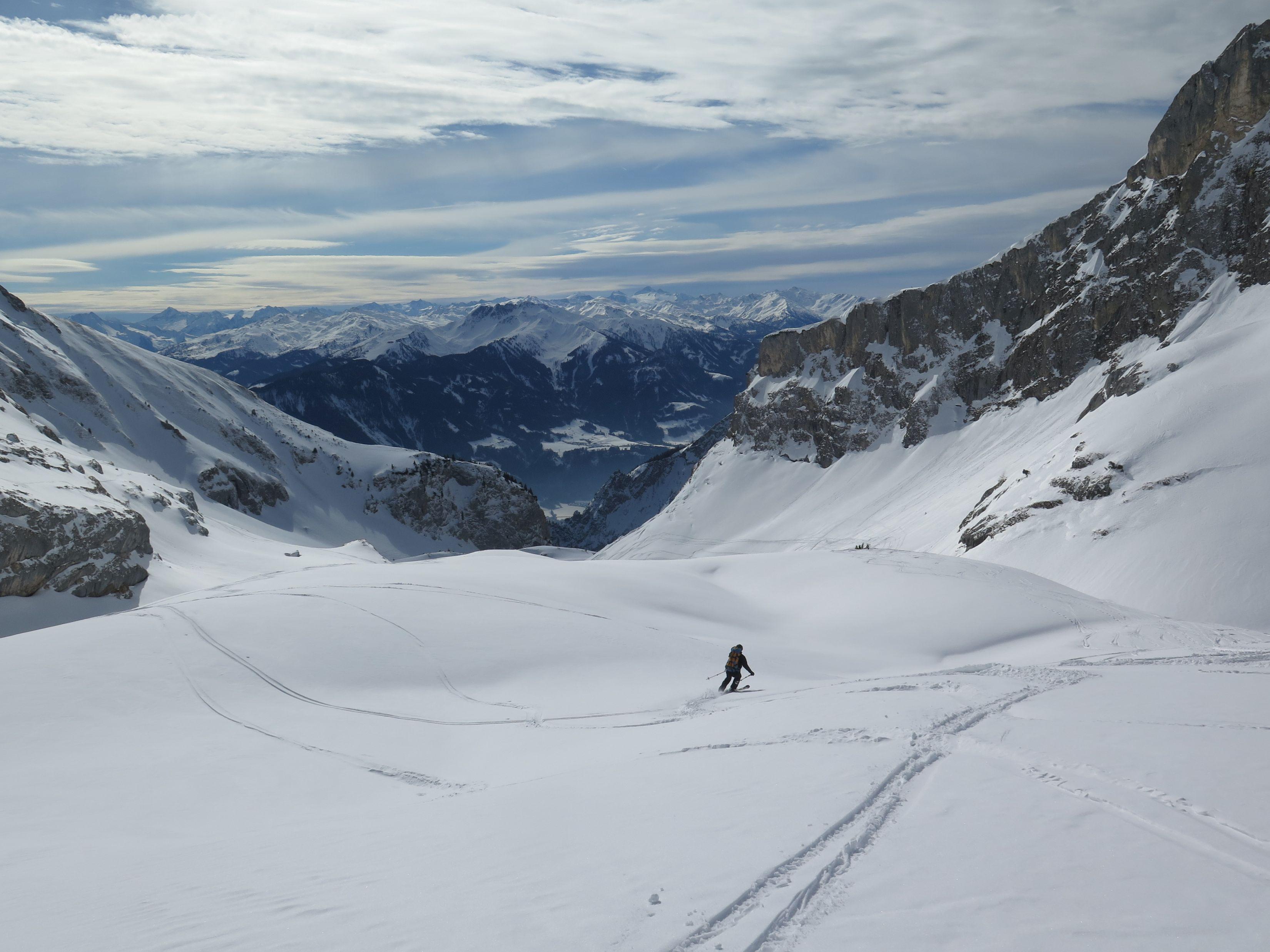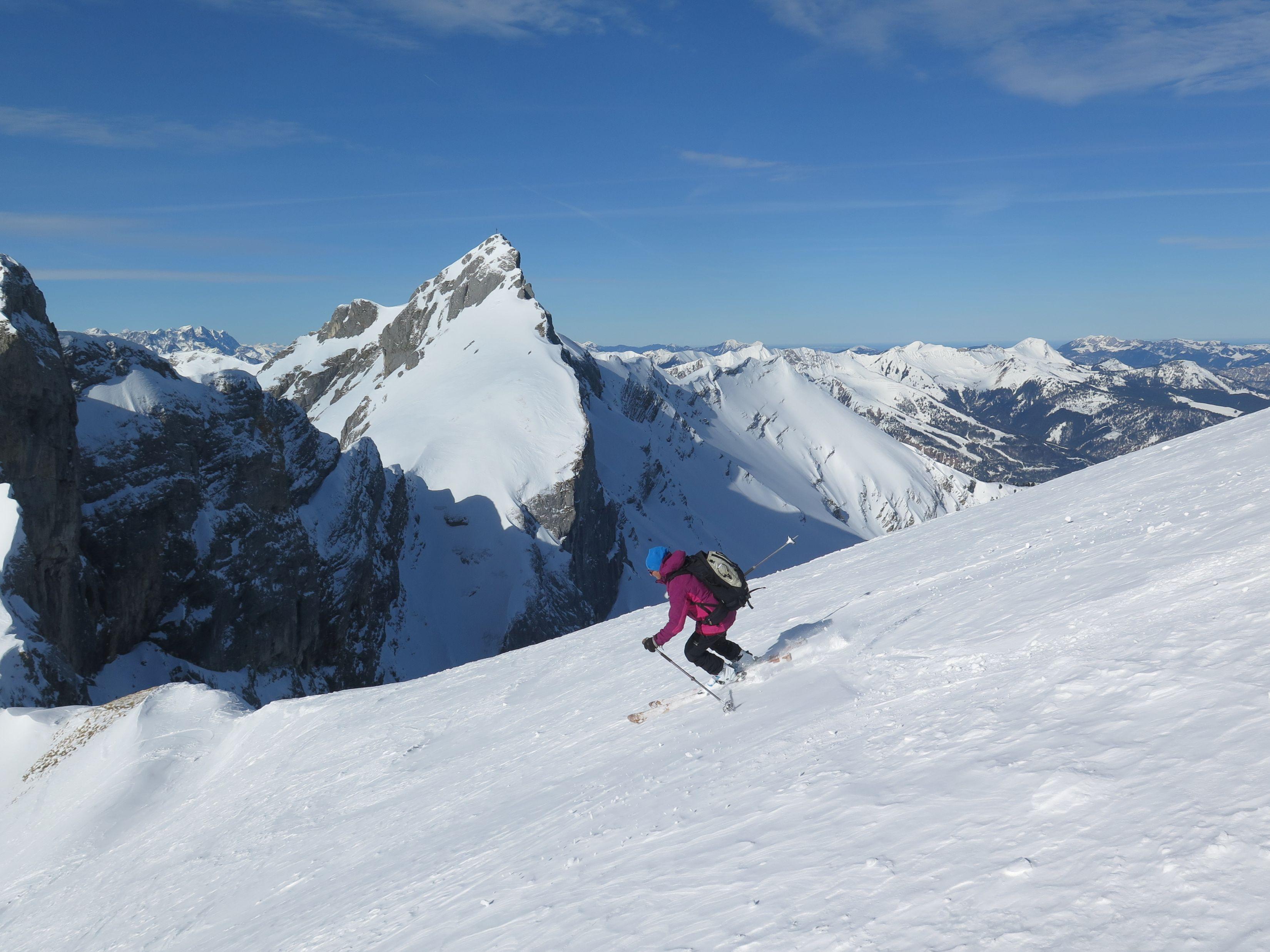 Tiroler Skitourenklassiger:Die Abfahrt von der Rofanspitze ist seit Bestehen der Rofanseilbahn ein Schlager für alle Tourengeher geworden, die mehr Wert auf eine tolle Abfahrt als auf einen längeren Aufstieg legen. 1650Hm Abfahrt stehen bevor, vom Gipfel bis ganz hinab ins Inntal nach Wiesing.