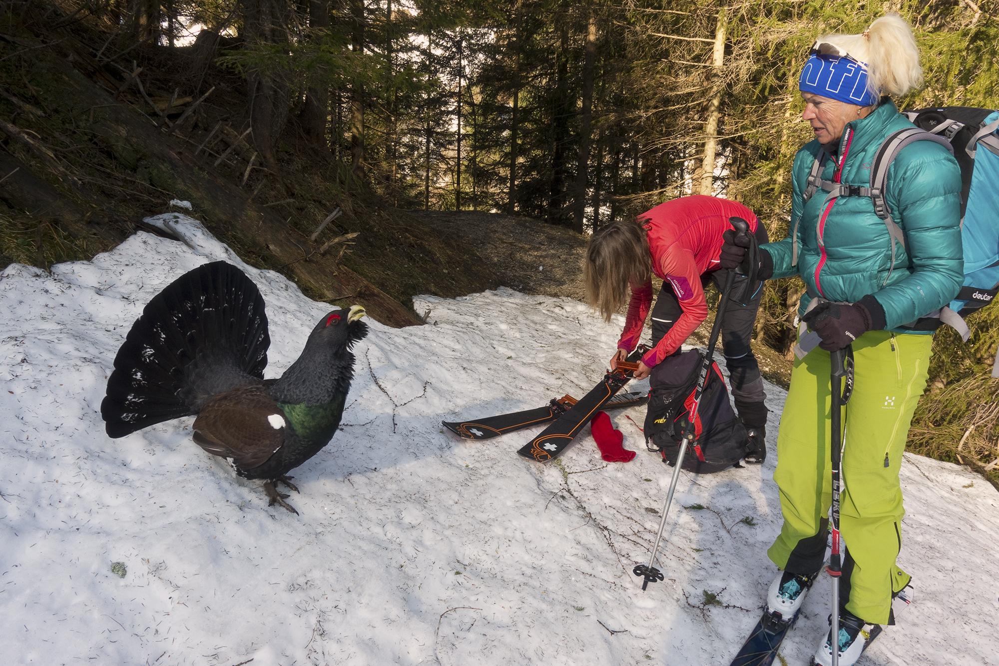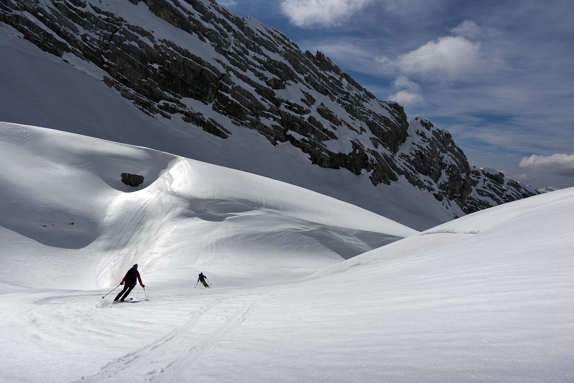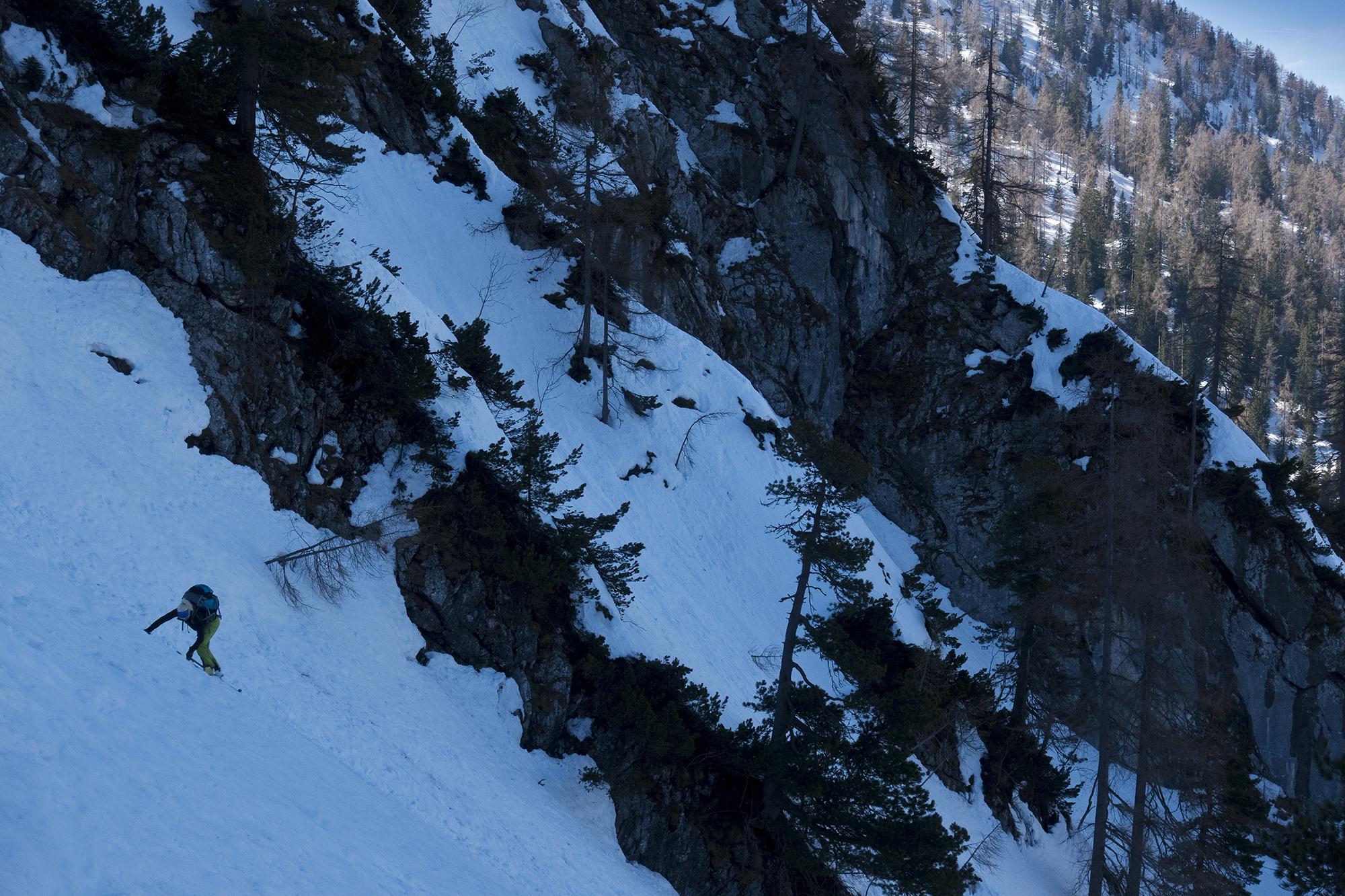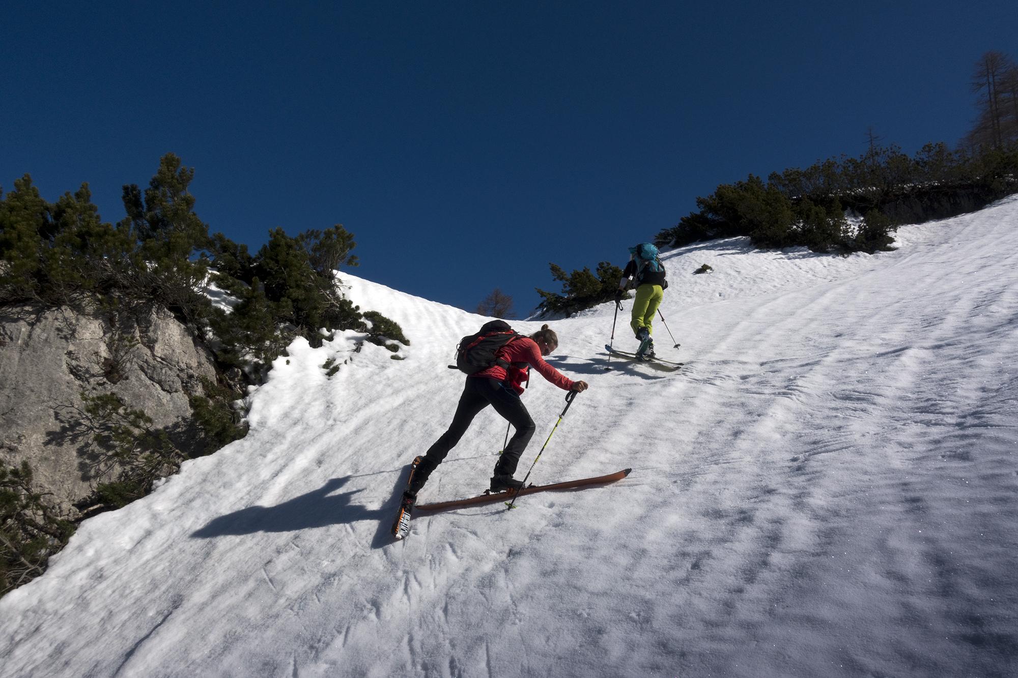 Beim Aufstieg waren hier Harscheisen noch sehr hilfreich gewesen.