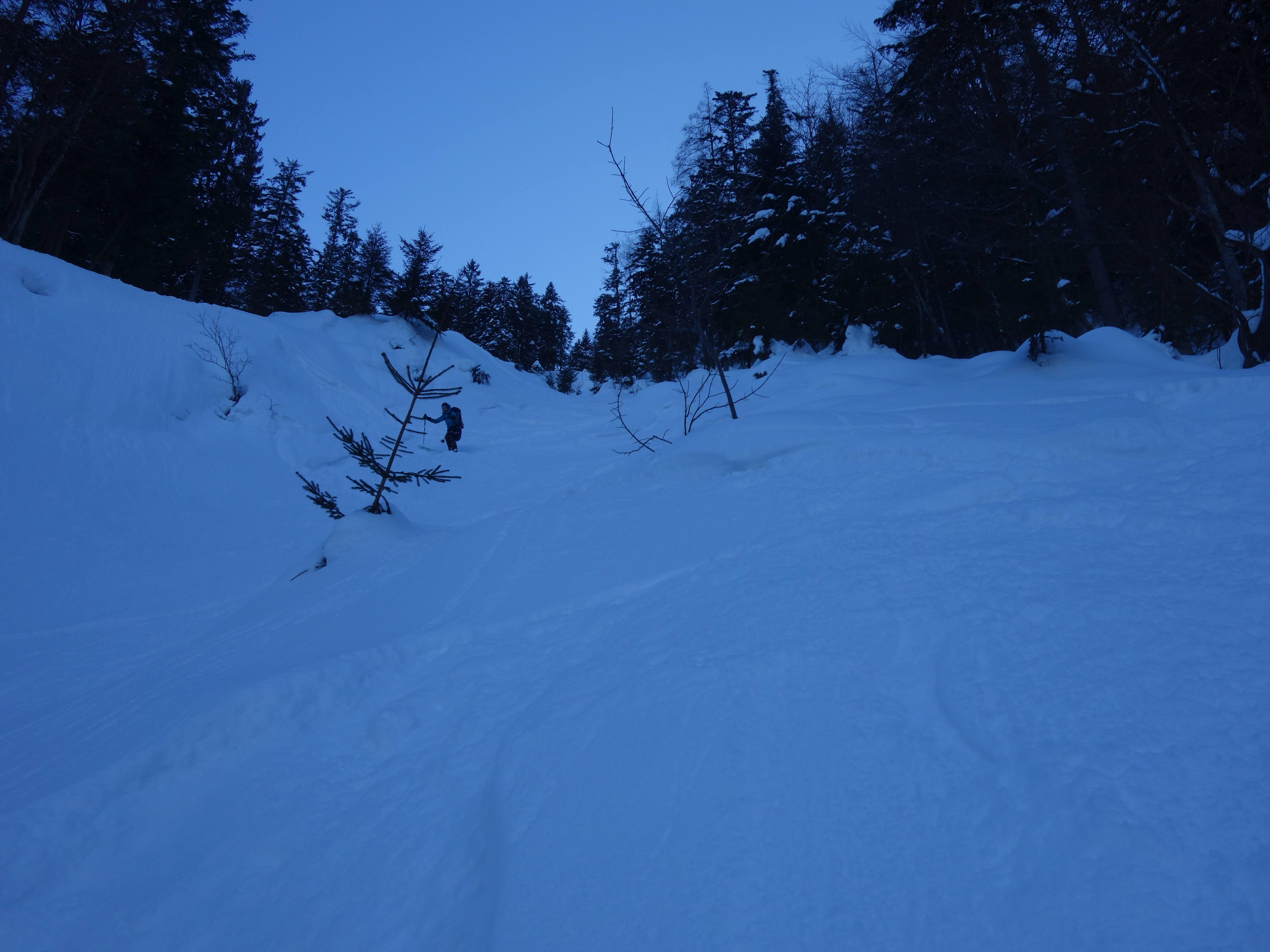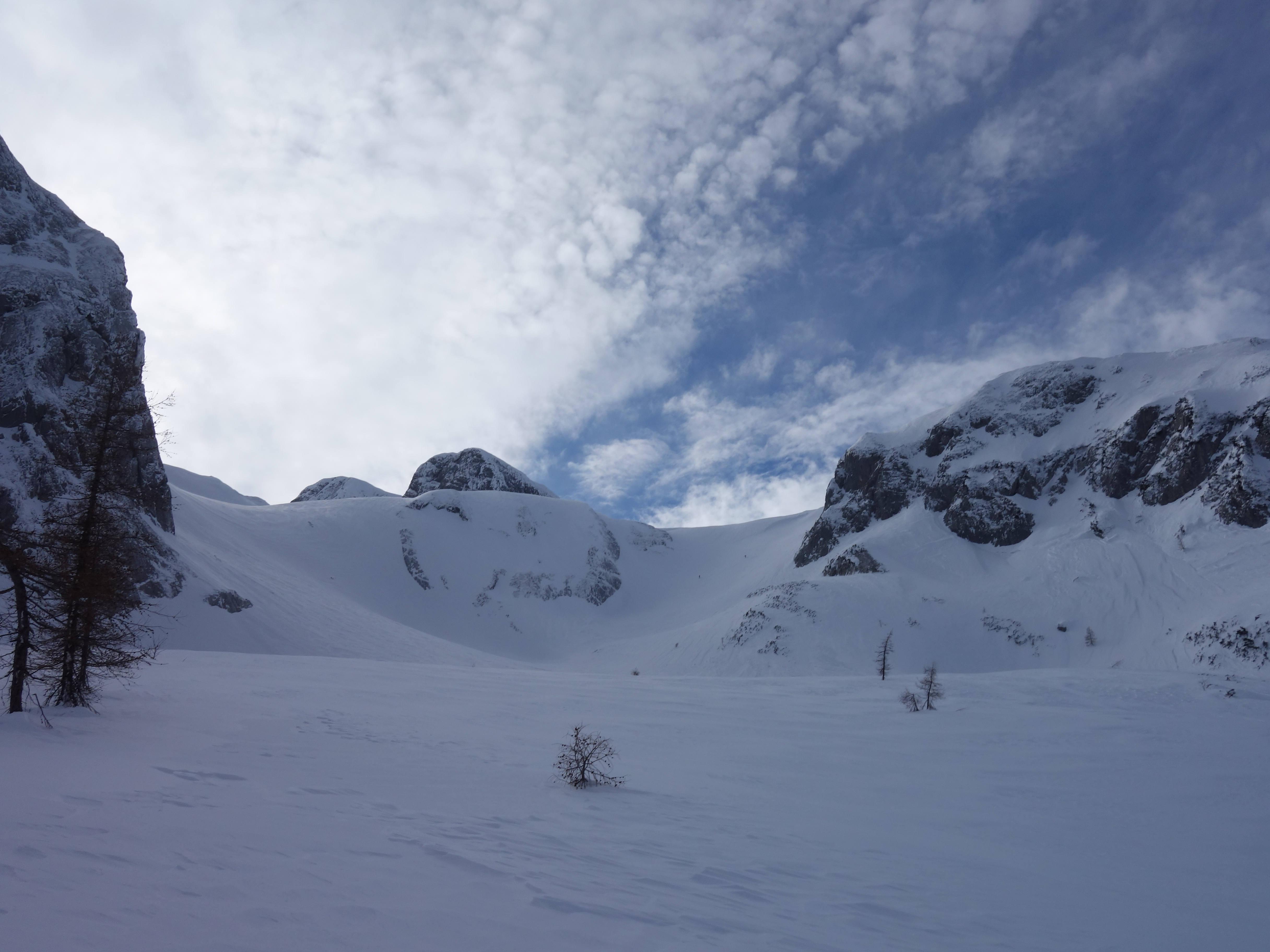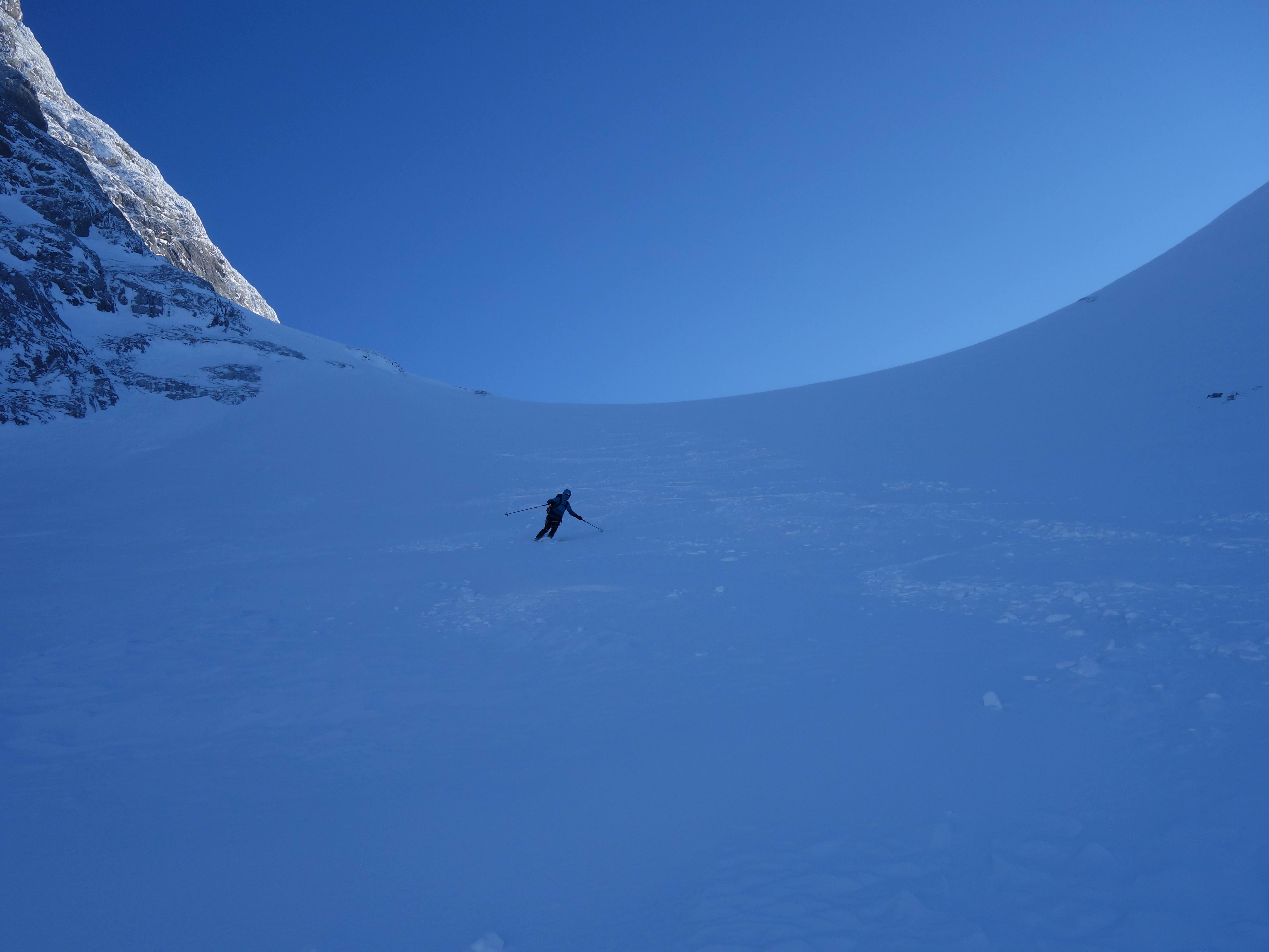 Schnee/Lawinen: Oben war der Schnee stark windbehandelt u. mässig gut zu fahren. Unten raus ists immer besser geworden. Ein paar frische Triebschneeansammlungen hasts gegeben, aber nicht mächtig. Eine Gruppe hat beim Abfahren einen kleinen Rutsch gelöst.