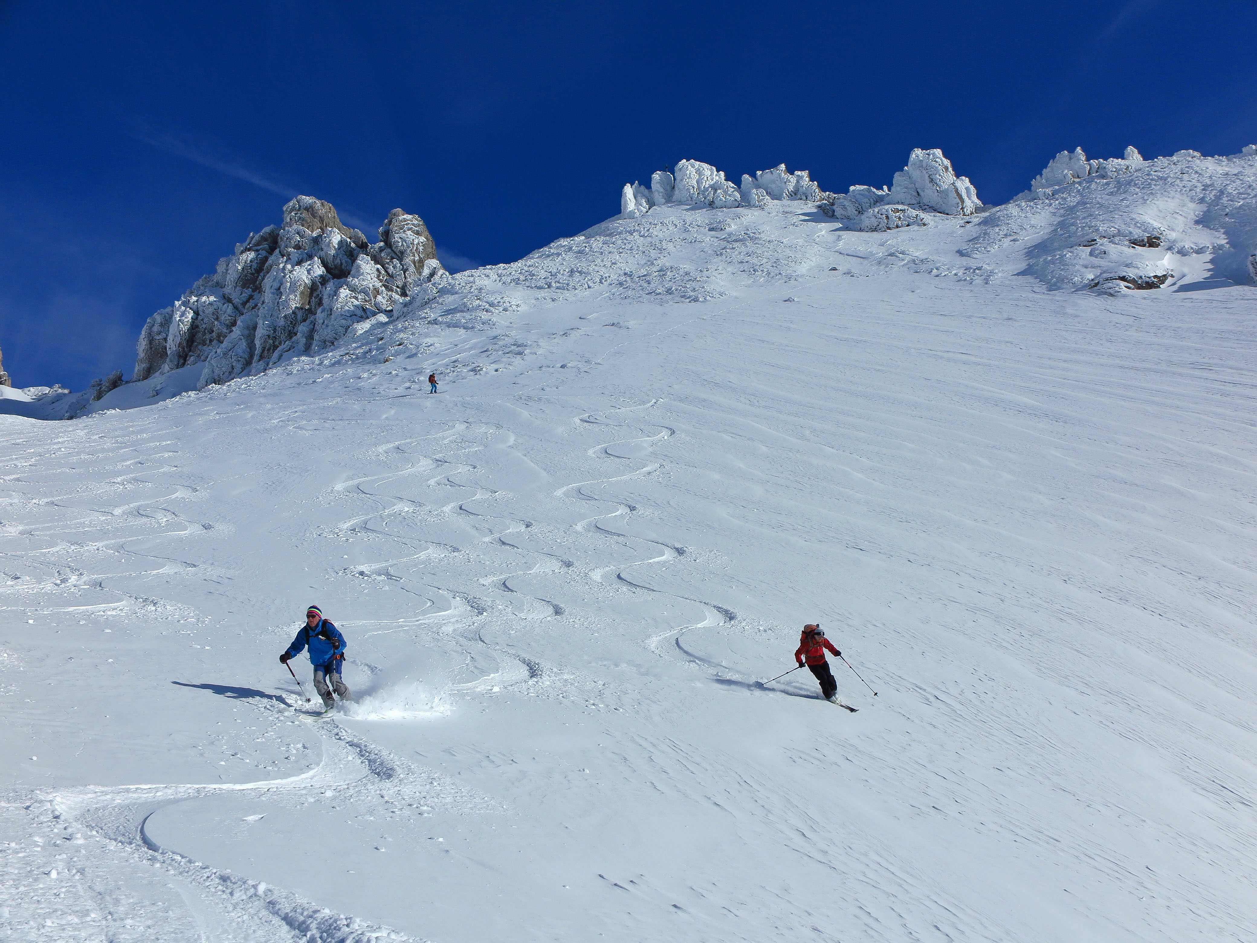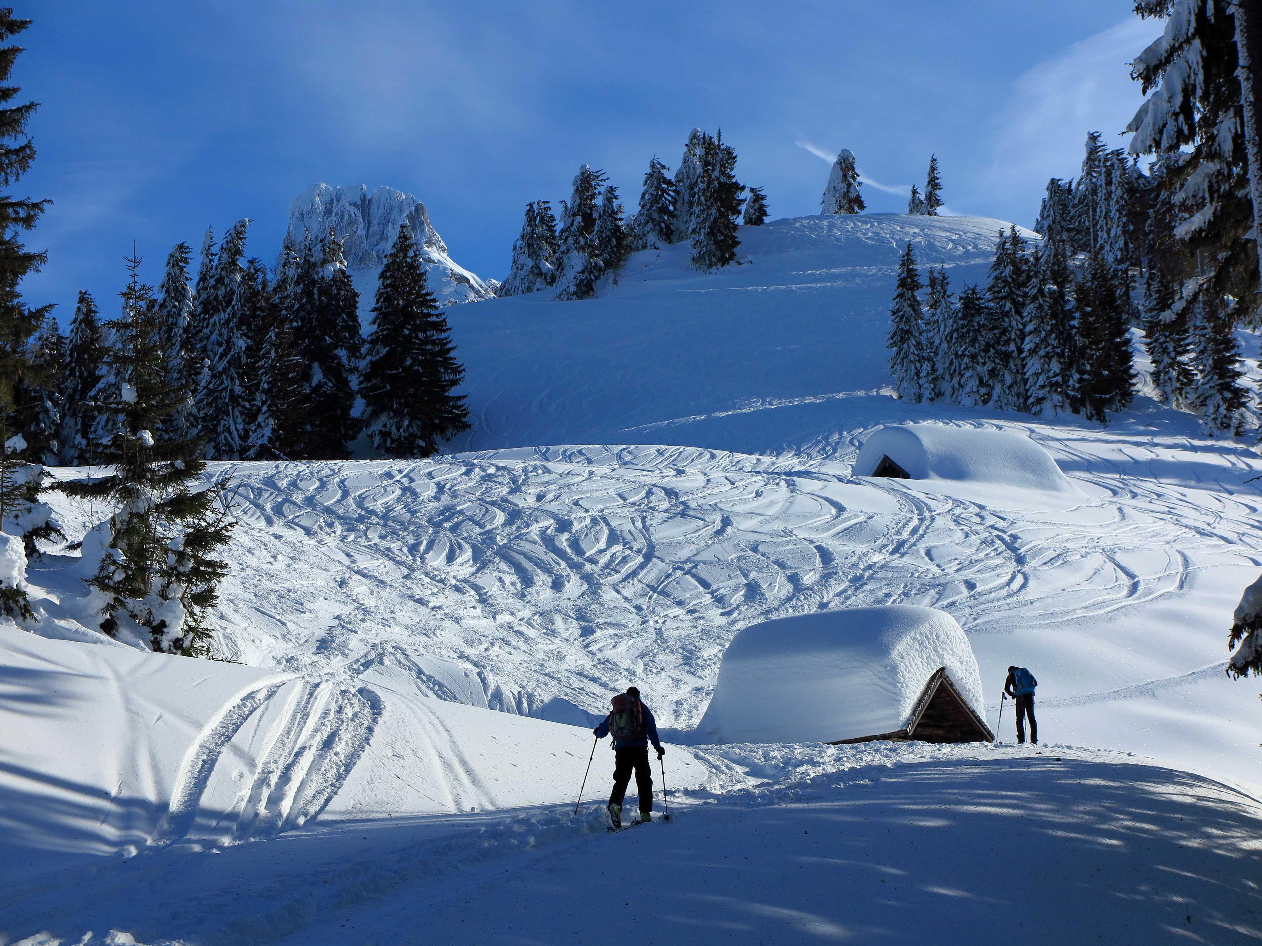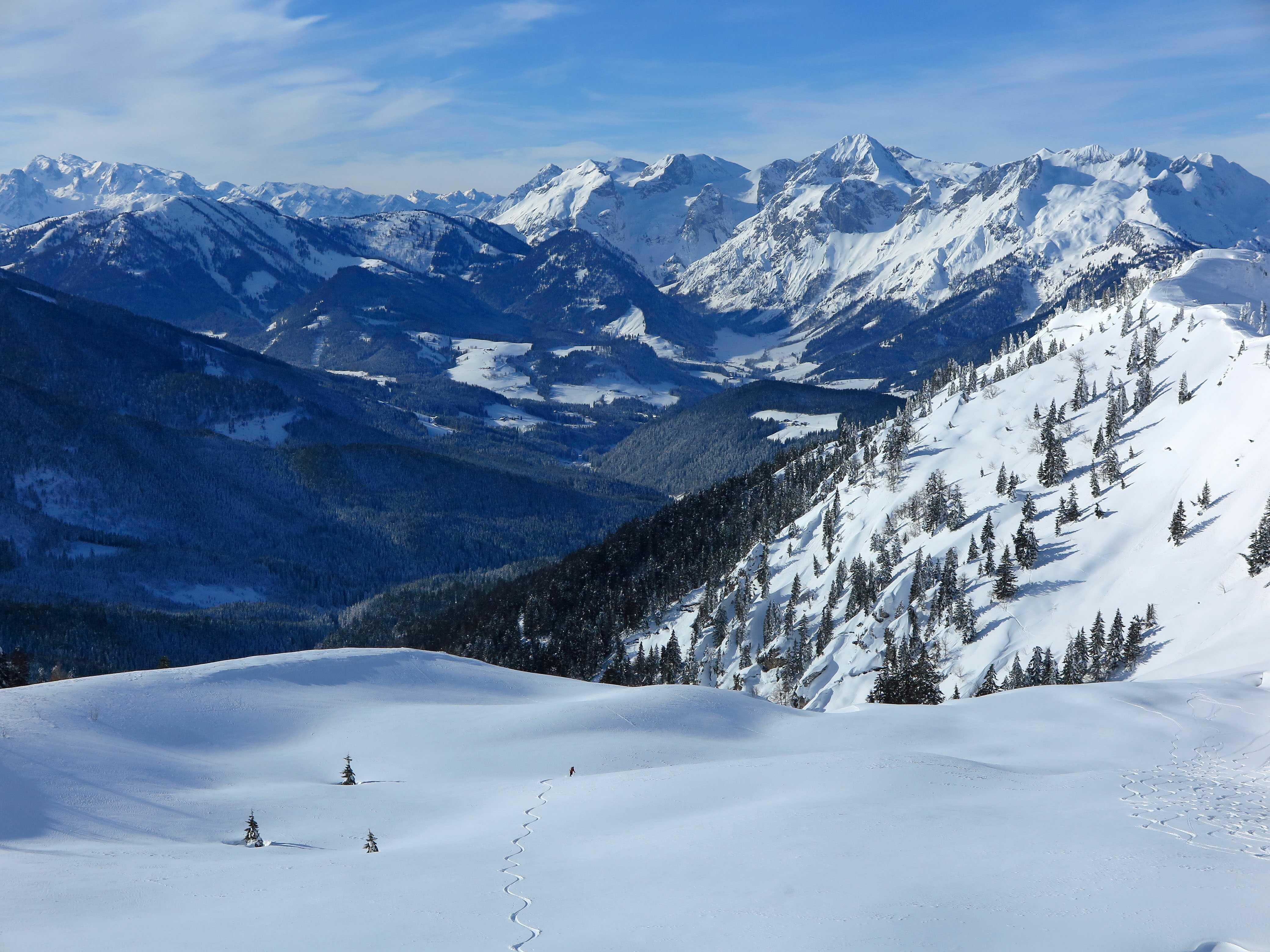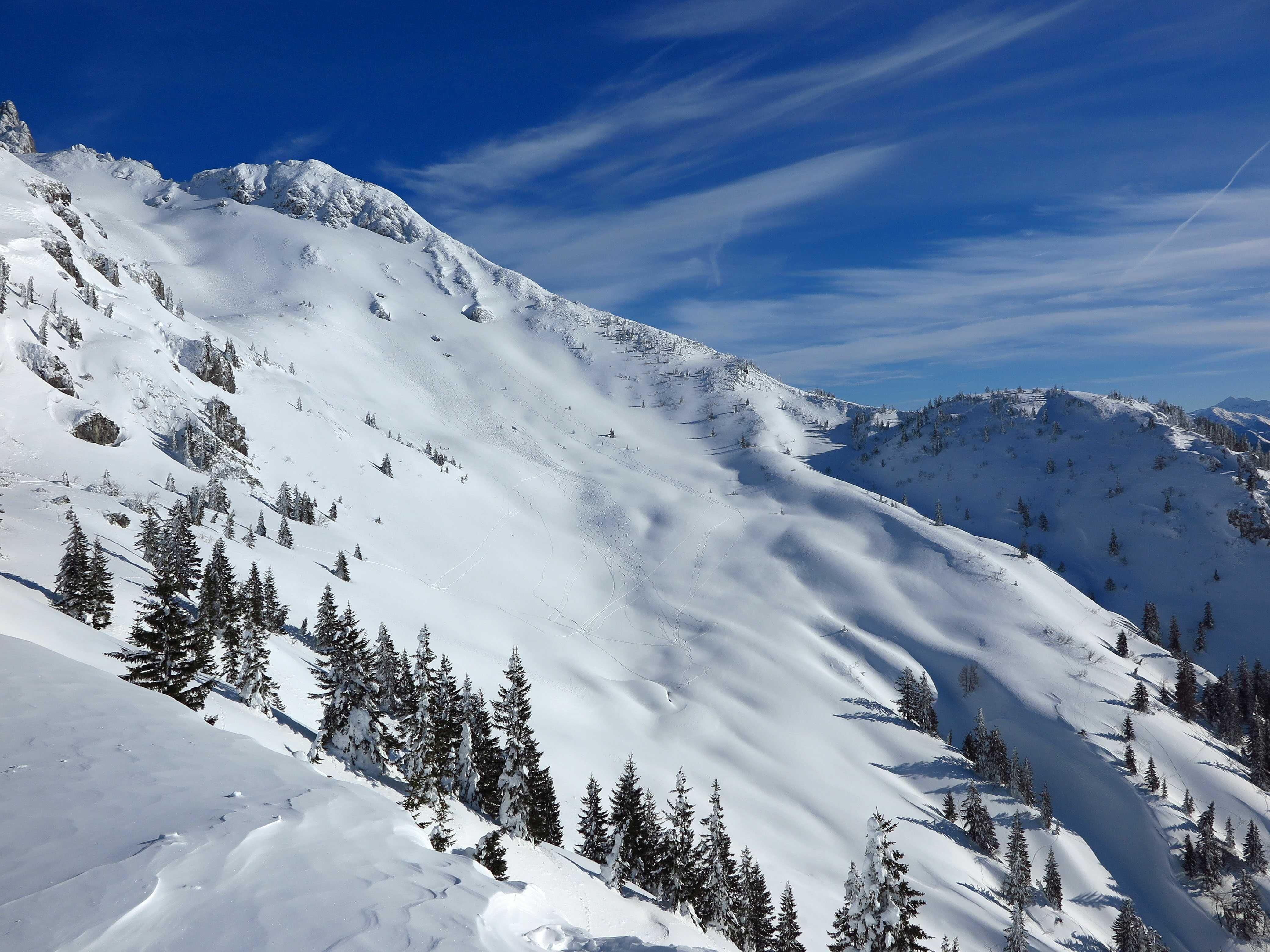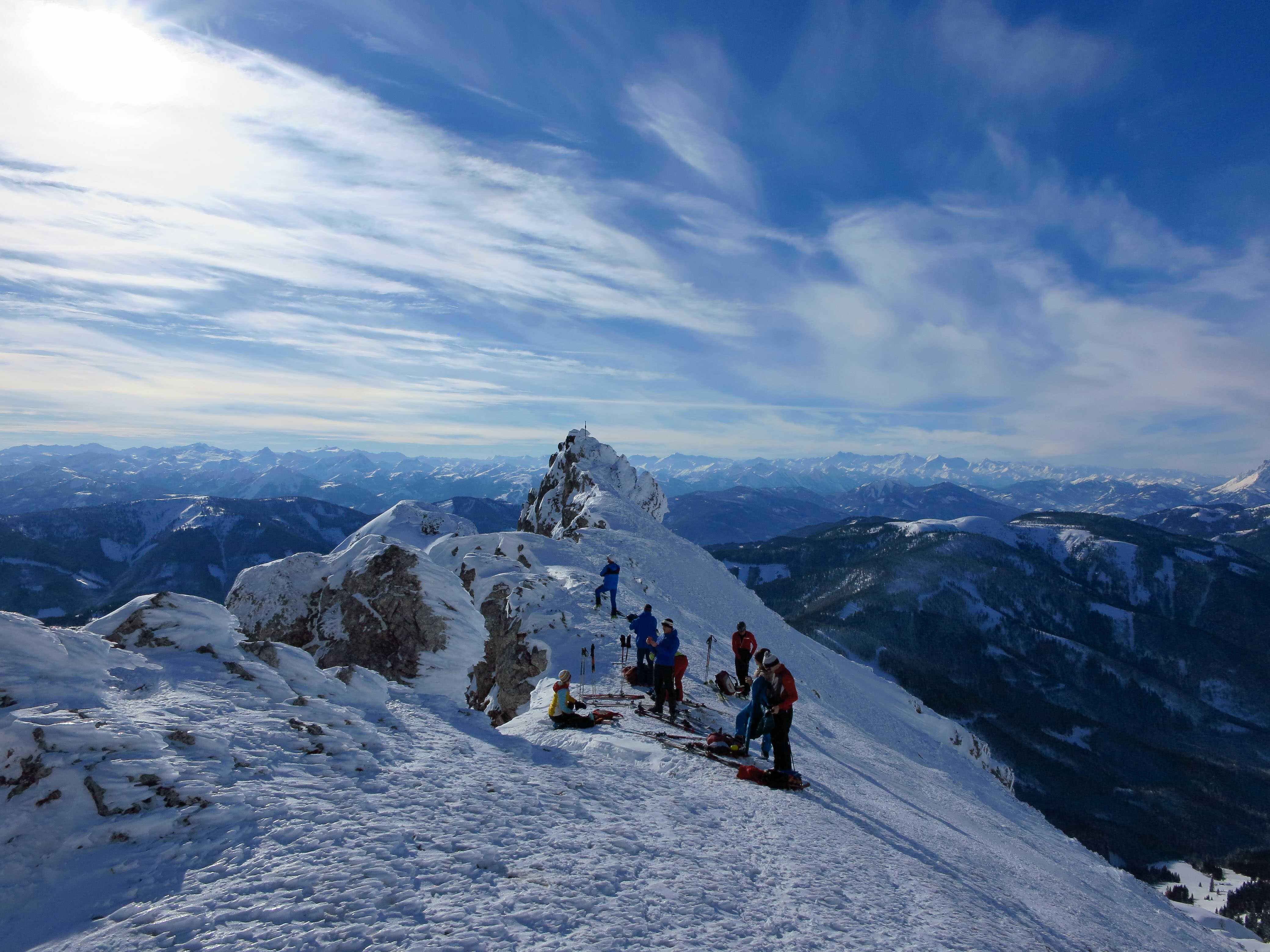 Schneelage: Schnee gibts hier in Massen. Im Langtal und auf den meisten Rücken (Losegg) ist die Pulverauflage etwas windbehandelt. Ebenso die Abfahrt zur Sulzkaralm, aber alles noch ganz ordentlich zu fahren.