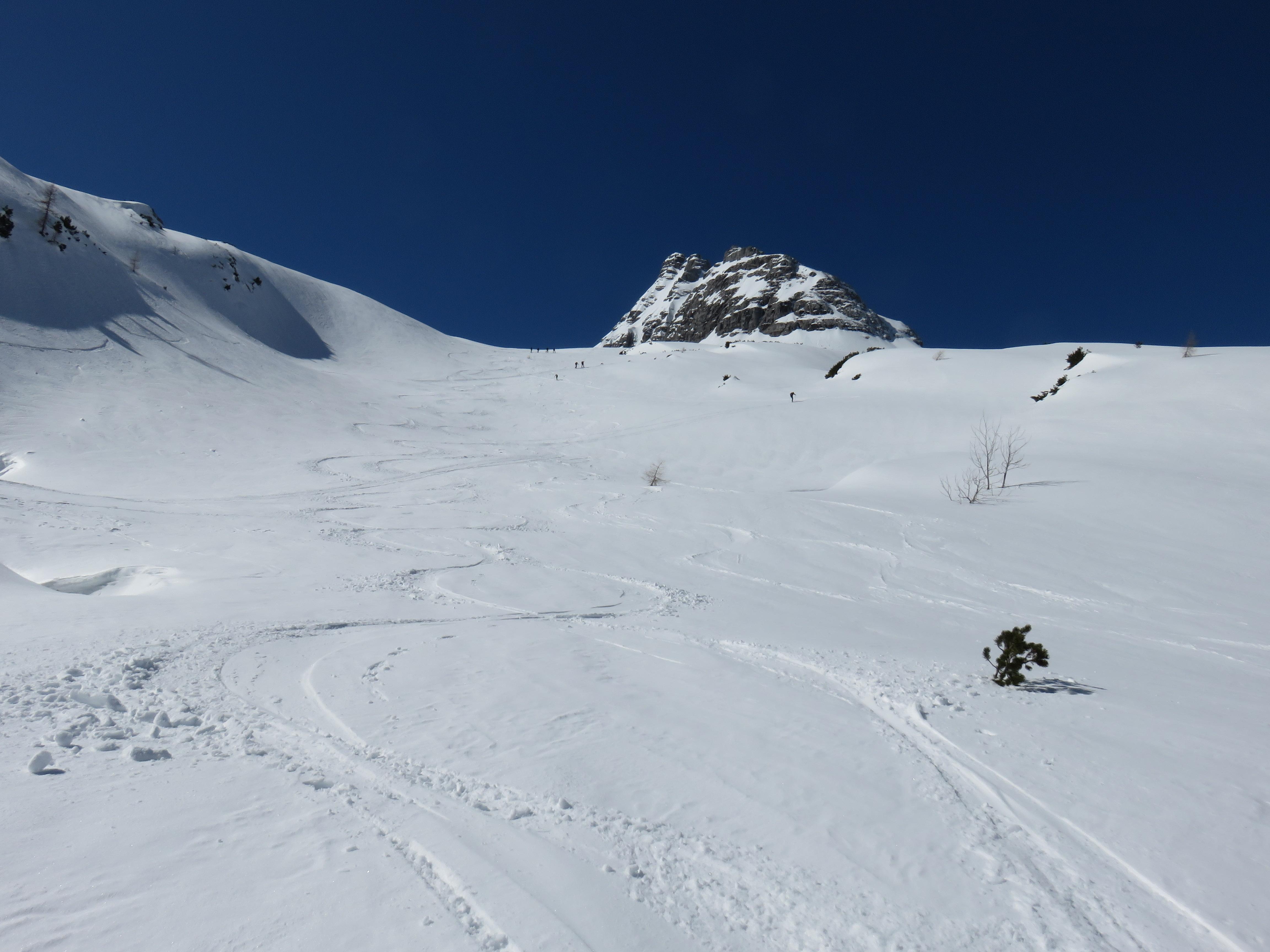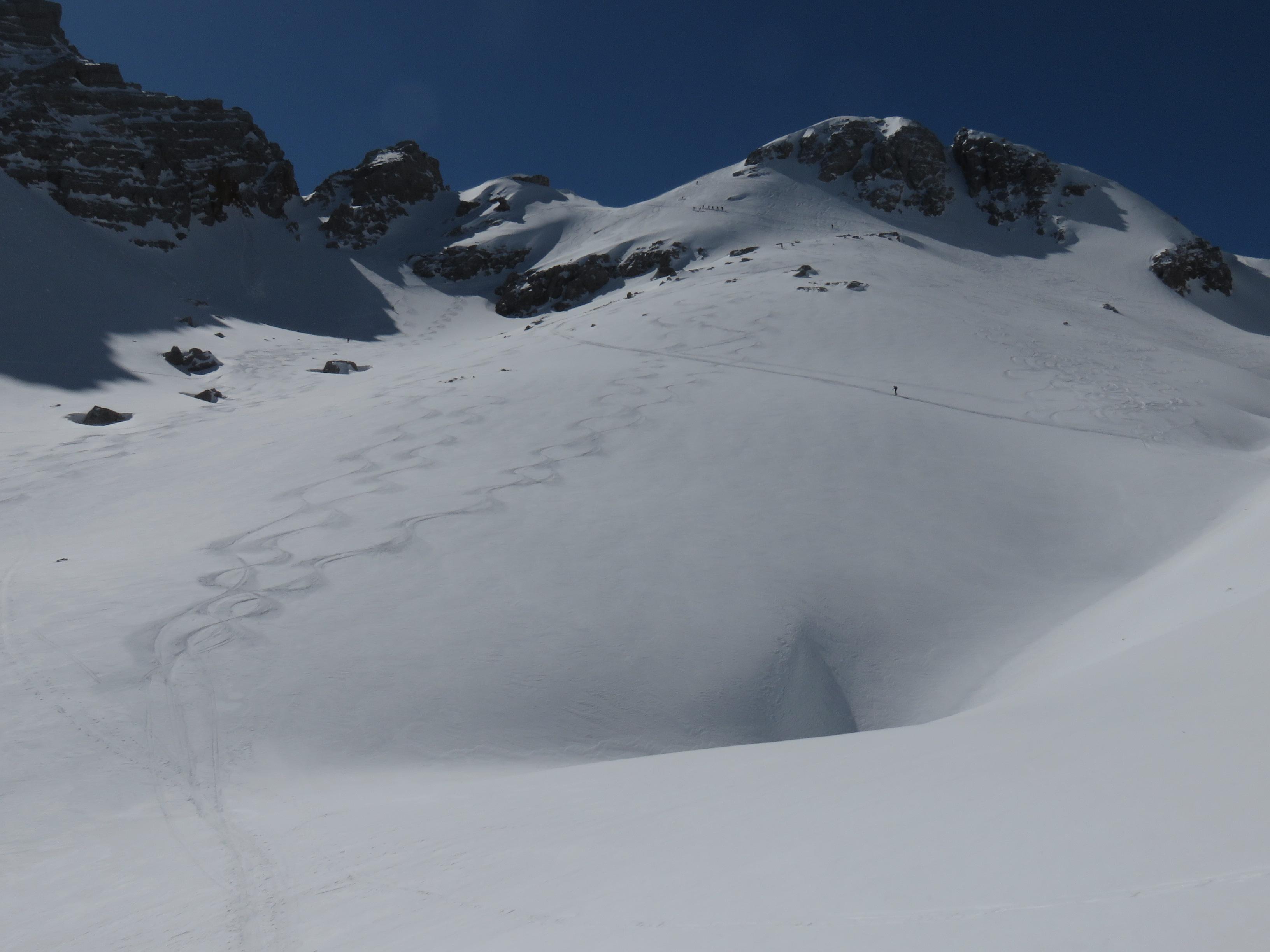 Lawine: bei der Abfahrt um 11:15 Uhr nur ein kleiner Rutsch von den Reifhörnern.