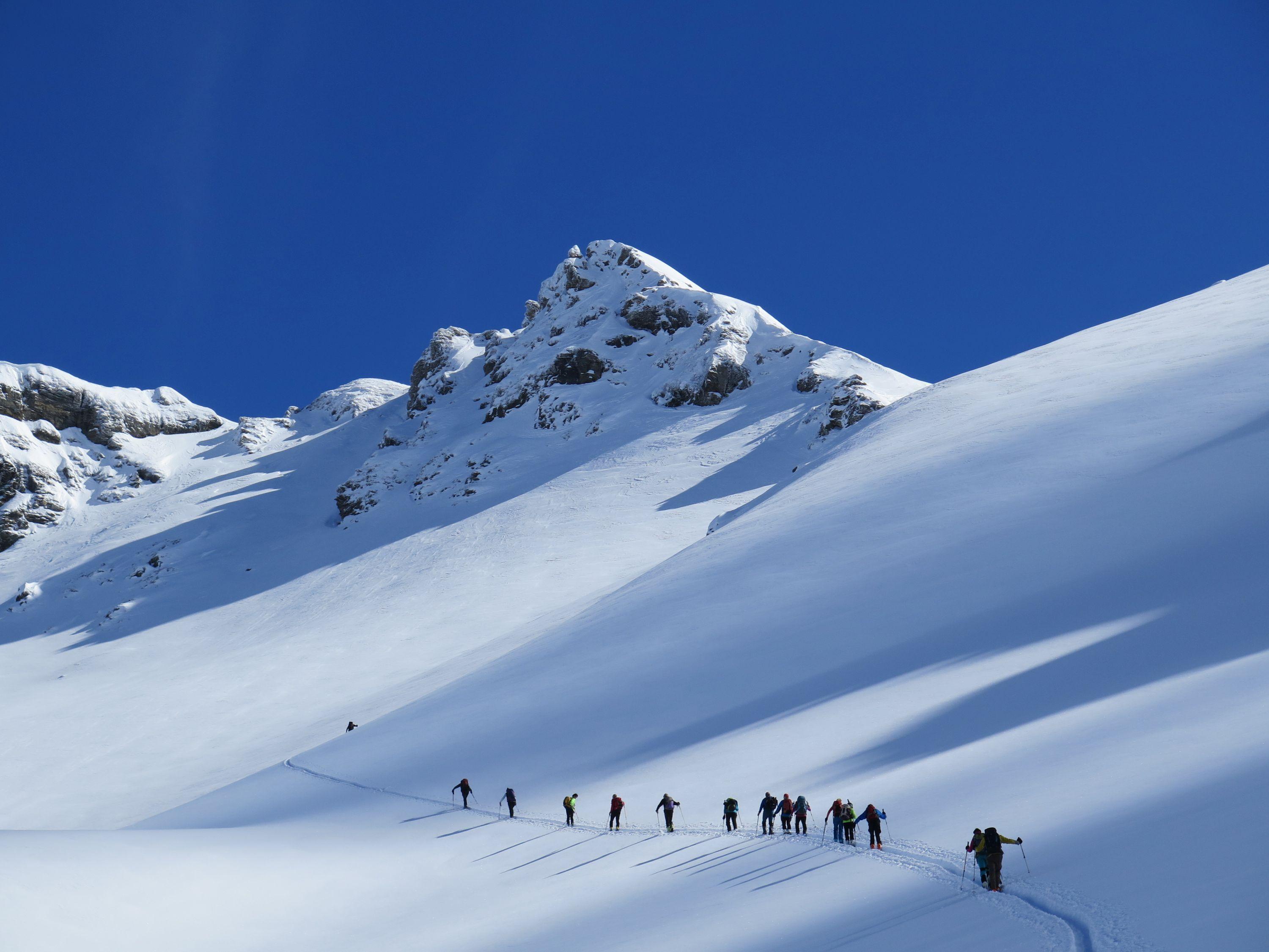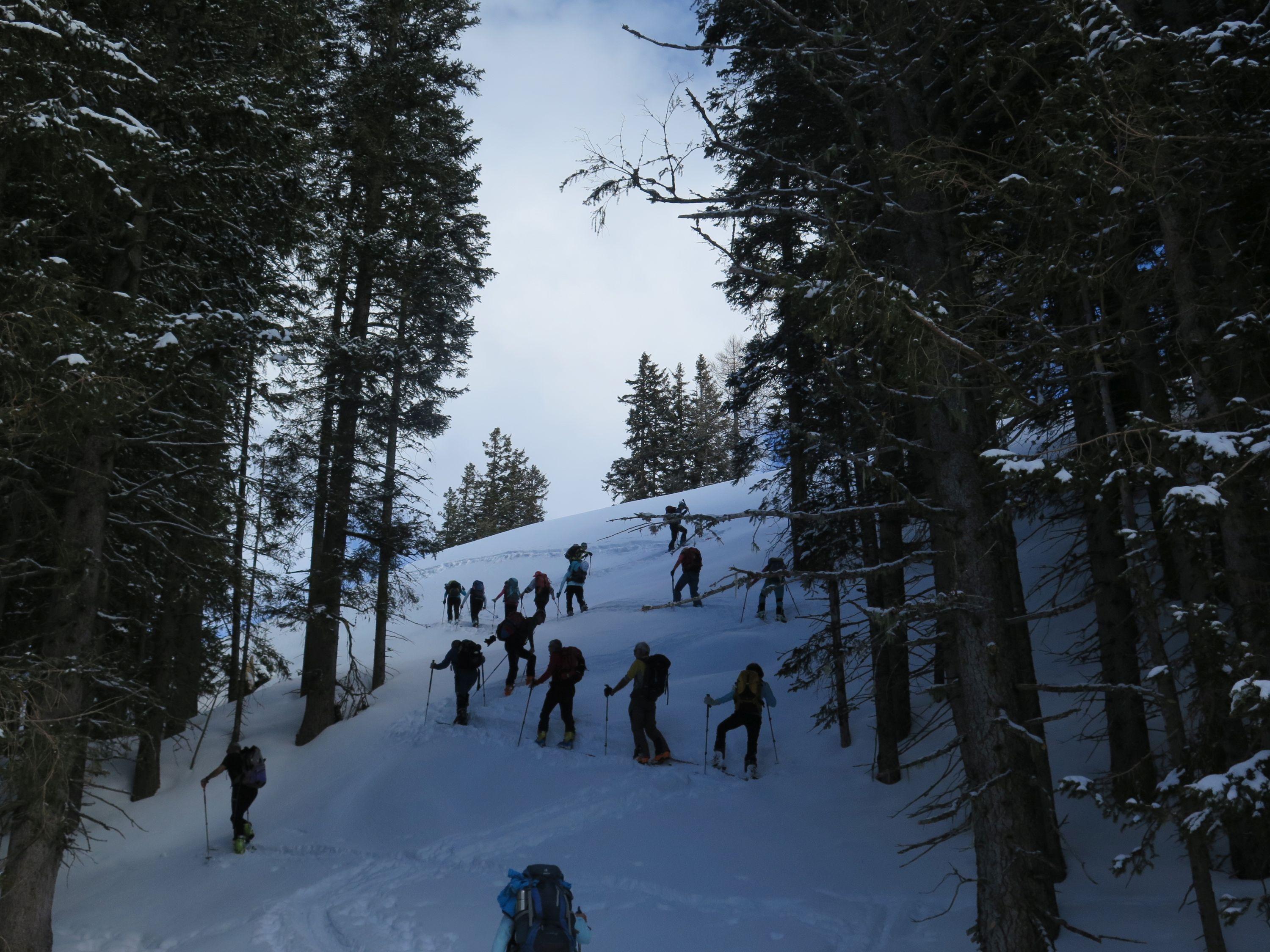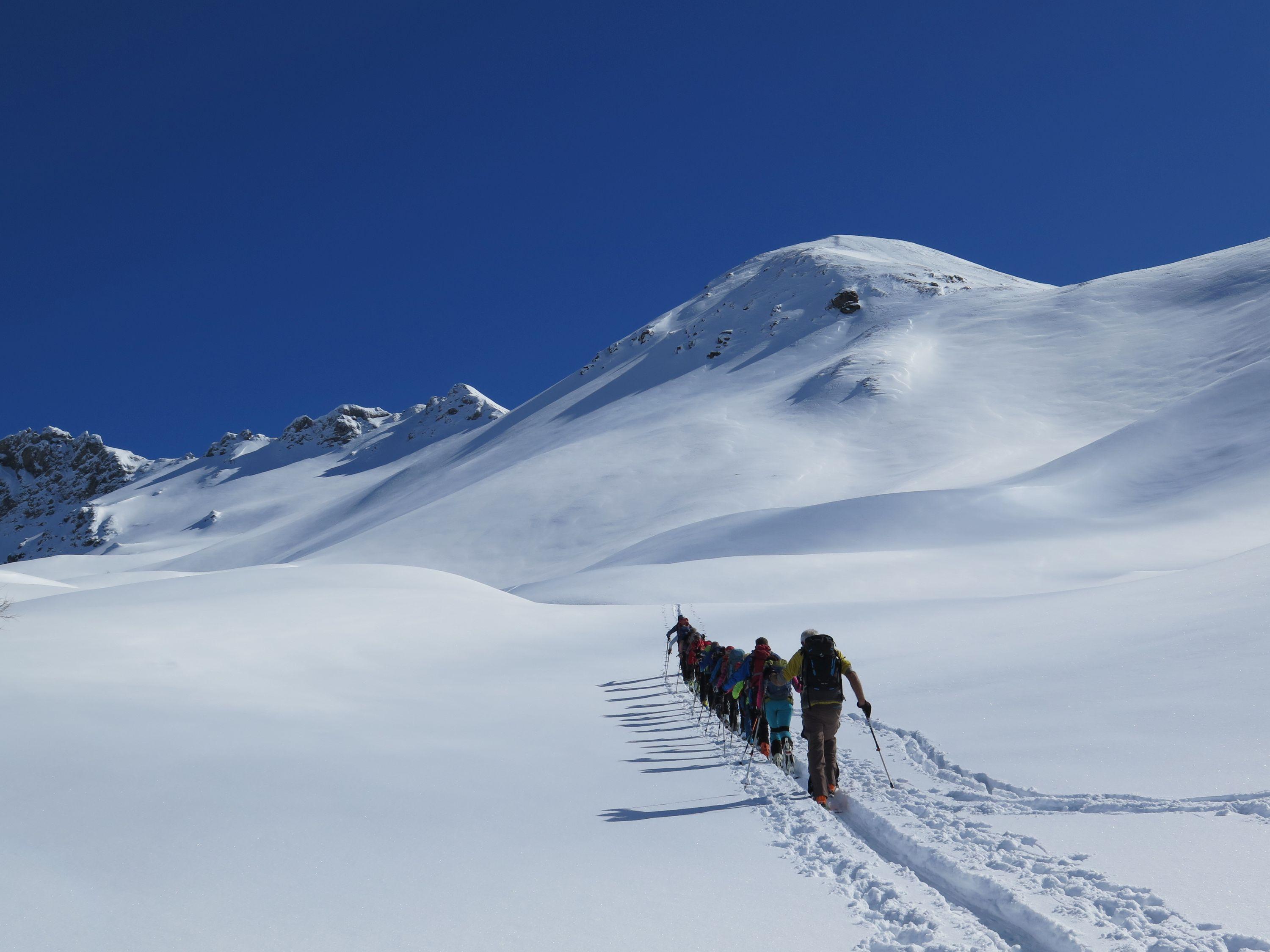 Schnee : Wiesenbereich leicht angeweicht, ab der Waldgrenze Neuschneeauflage bis ca. 20 cm, kurz vor der Scharte leicht windbehandelt.