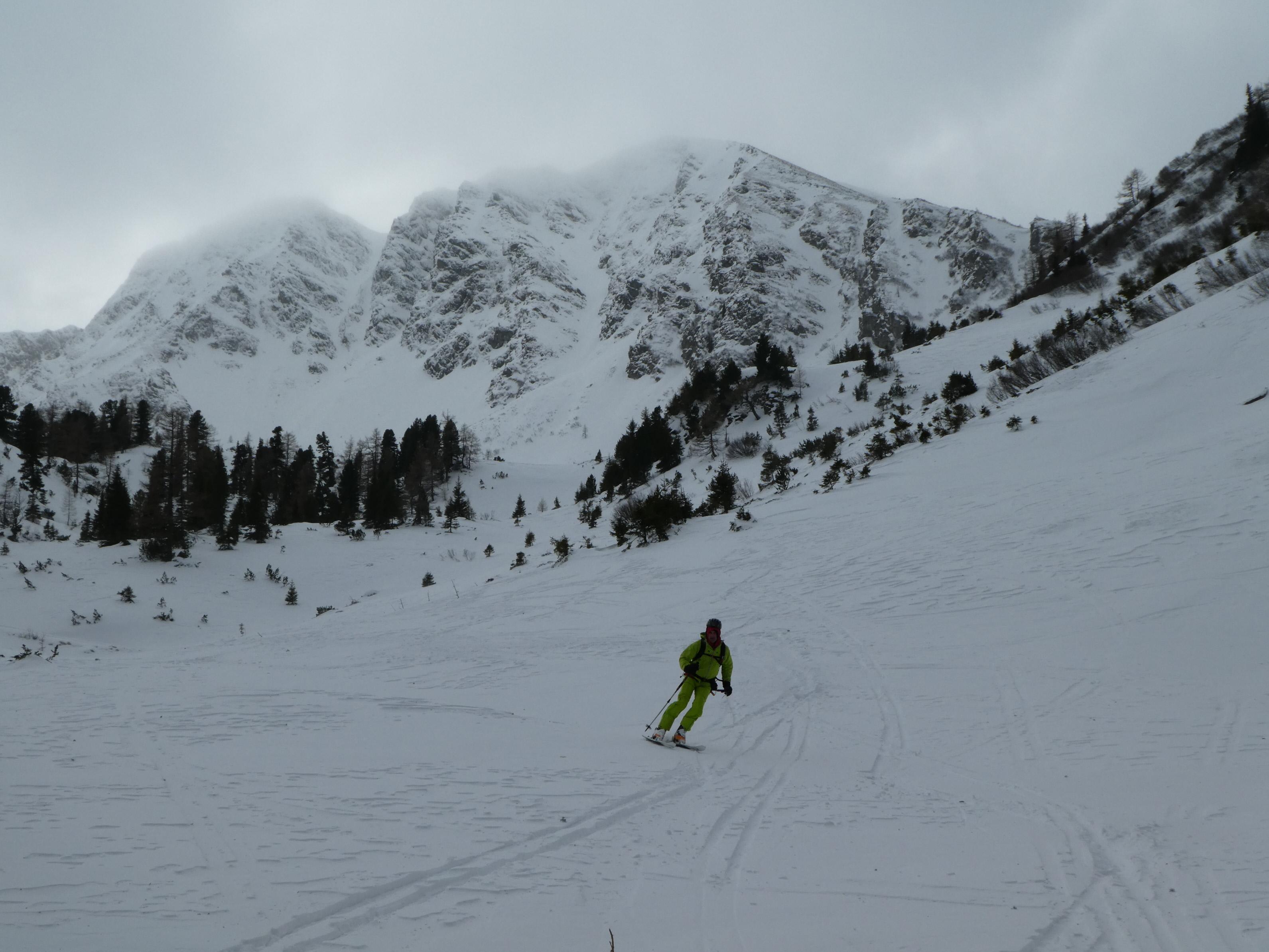 Die wegen der mittelsteilen, felsbegrenzten Gipfelrinne (lediglich im Ausstiegsbereich 47 Grad) rassige Tour hat ihren Ausgangspunkt beim GH Braumn im Triebental; die für die Tour sehr guten Schneeverhältnisse (griffiger Harschdeckel auch in der Rinne) werden mit dem angekündigten Neuschnee, der unter Wind fällt, bald Vergangenheit sein und wird die Tour in nächster Zeit so nicht mehr machbar sein