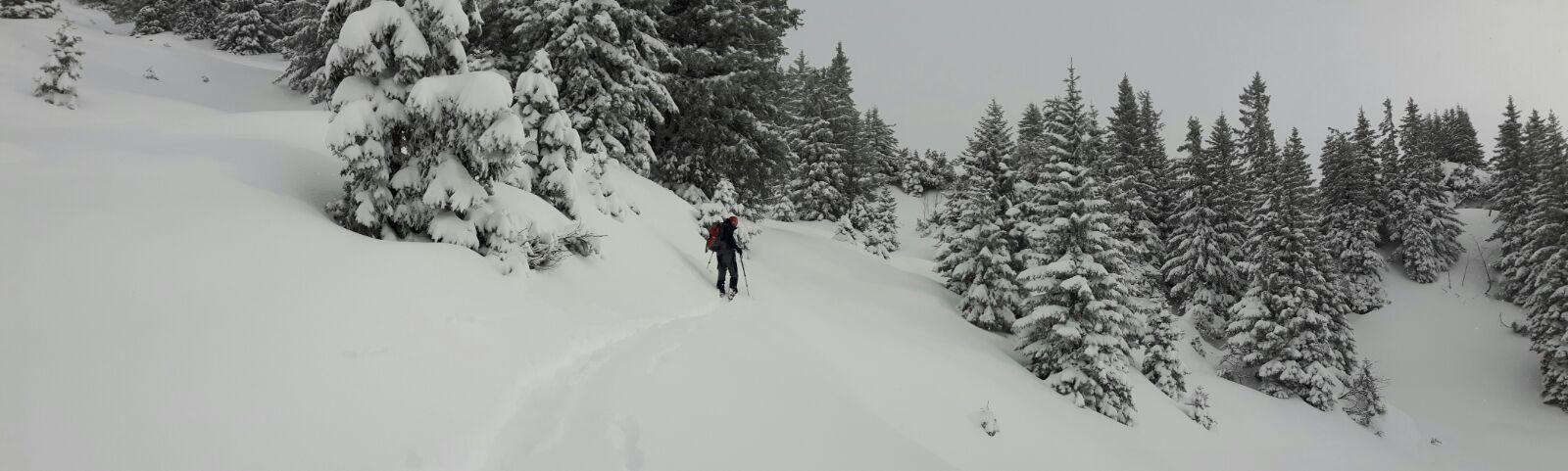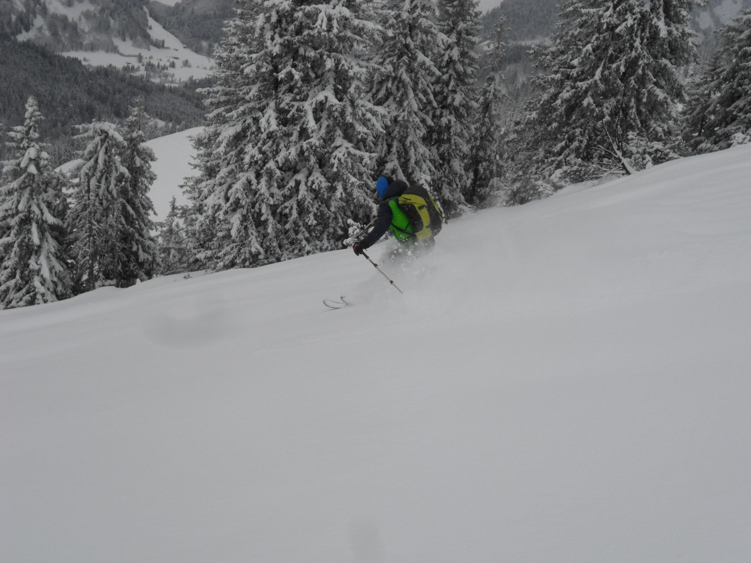 Spätestens mit dem heutigen Tag dürfte auch die Saison am Sonntagshorn eröffnet sein. Oberhalb der Almen zwischen 20-30 cm Neuschnee auf einer dünnen gefrorenen Unterlage. Sehr gute Abfahrtsbedingungen. Über die Latschen kommt man gut rüber. Unterhalb der Almen fehlte die Grundlage zum grossen Teil komplett. Deswegen war man heute besser mit dem Stoa-Ski unterwegs. Die Abfahrt war aber bis ganz runter möglich. Zur Mittagszeit zumindest noch.
