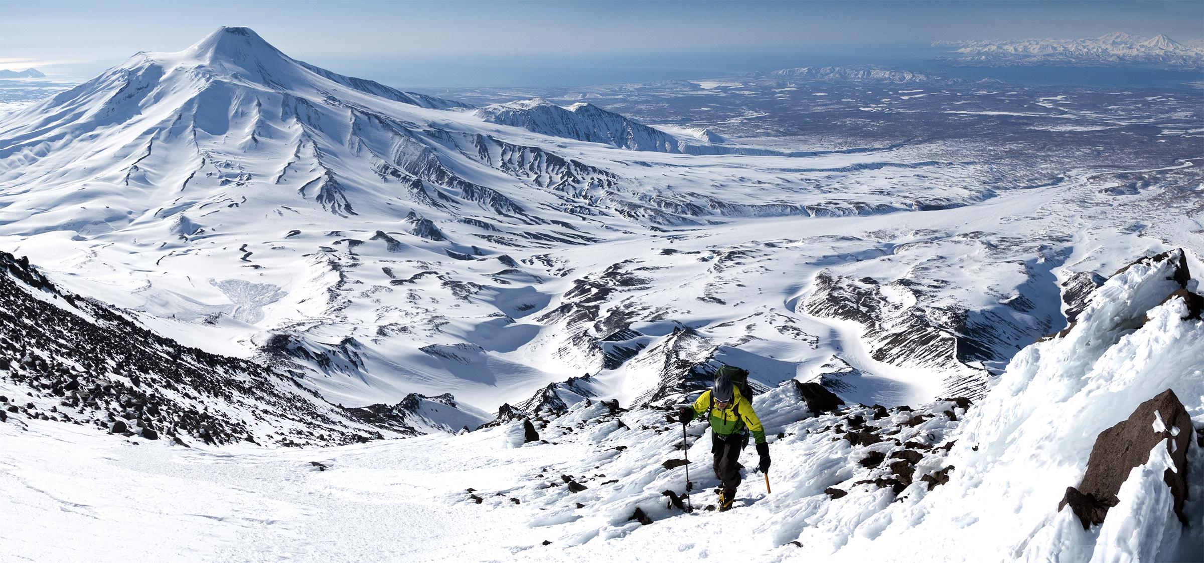 Ganz im Osten Sibiriens, zwischen Ochotskischem Meer und Beringmeer, liegt wie ein großer Fisch die Halbinsel Kamtschatka. Die Berge sind noch jung, der höchste, Kliuchevskaya Sopka, mit 4750 Metern ist gerade mal 7000 Jahre alt. Fumarolen, heiße Quellen, Basaltbomben und Schwefweldampf sind hier die Wegbegleiter.
