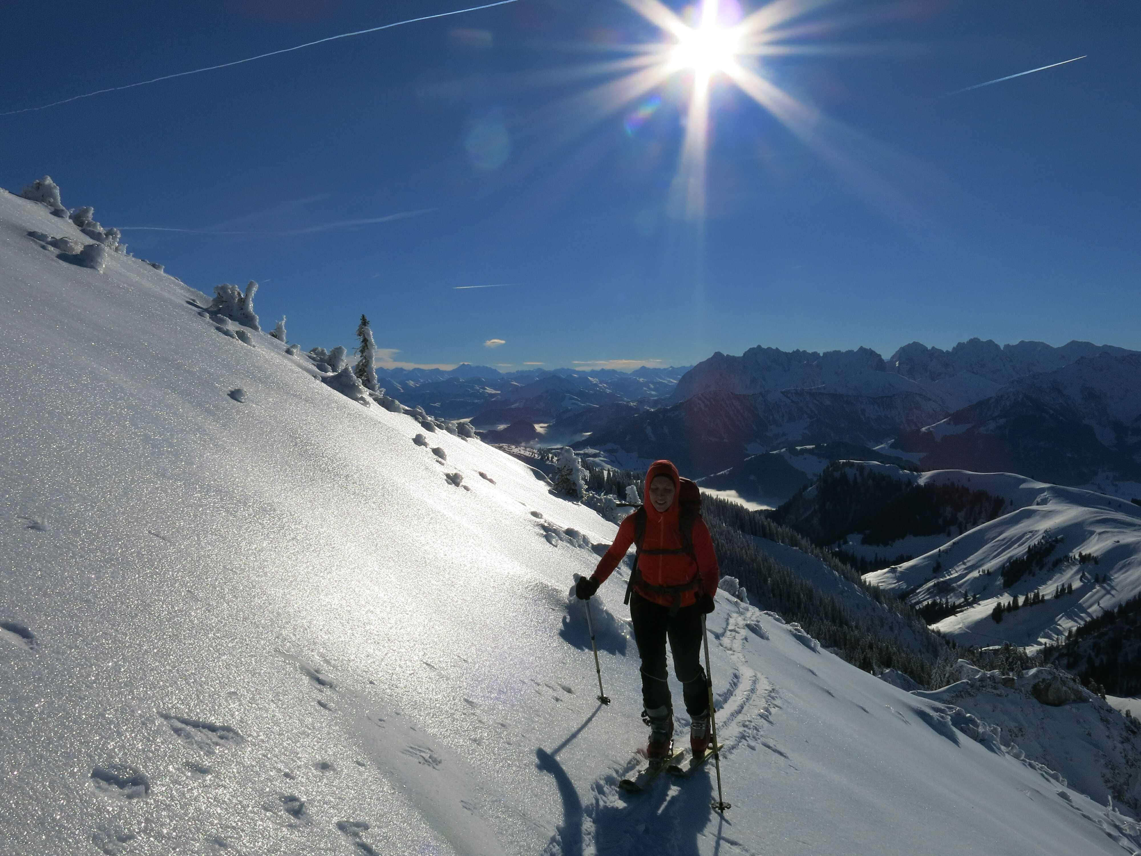 Von Ettenhausen über die Wuhrstein- und Wirtsalm zum Geigelstein (1808). Abfahrt übers Platt und retour zum PP.