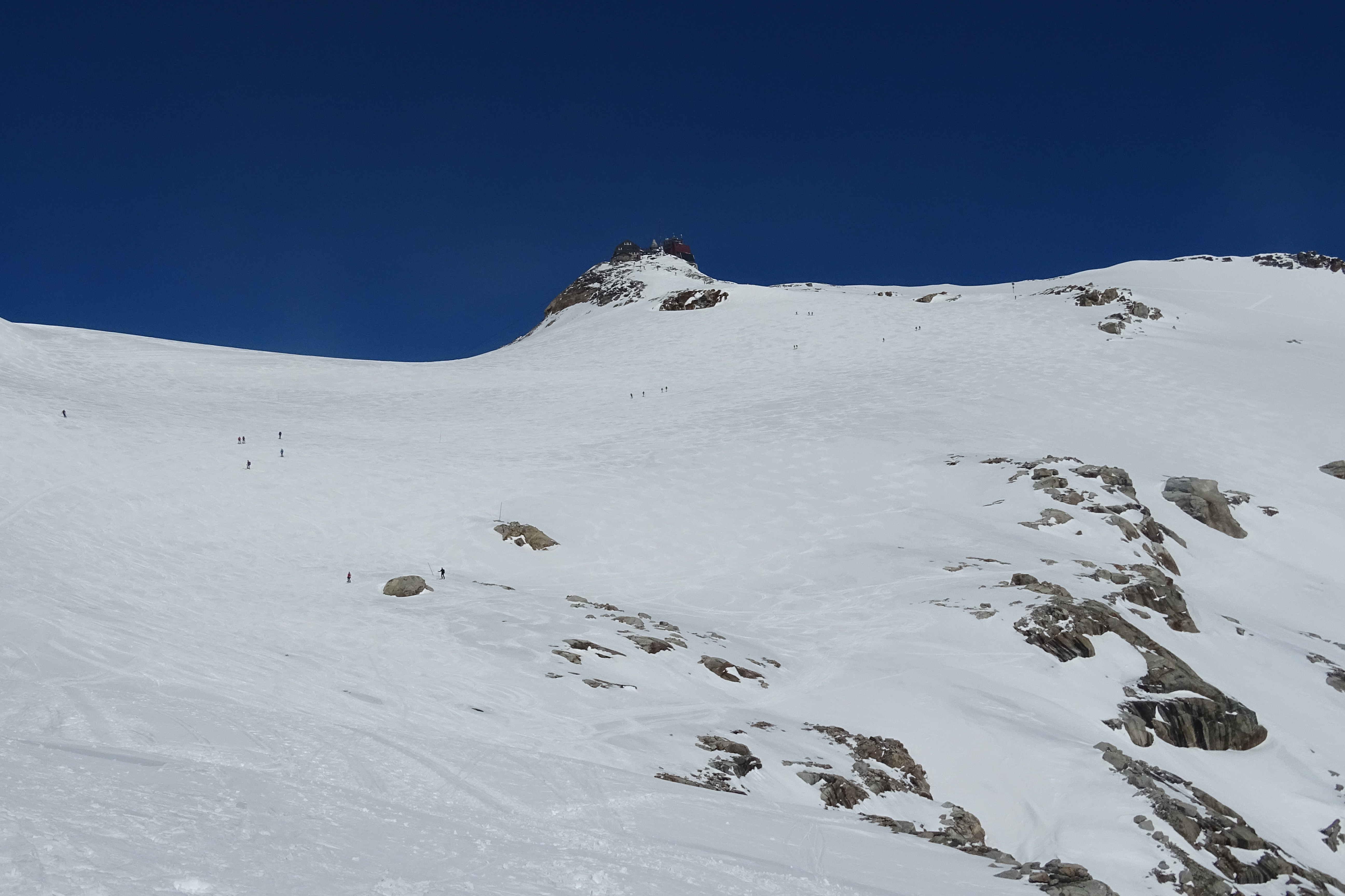 Abfahrt ziemlich spät (kurz nach 14h). Gipfelhang: Firnsulz, der Hang zum Gletschertor: war wohl sowas wie fester Pulver, durch die vielen Spuren war der aber kaum mehr erkennbar. Ab Neubau: da wars etwas tiefer und sehr zerfahren, im Finale dann Buckelpistenrodeo.