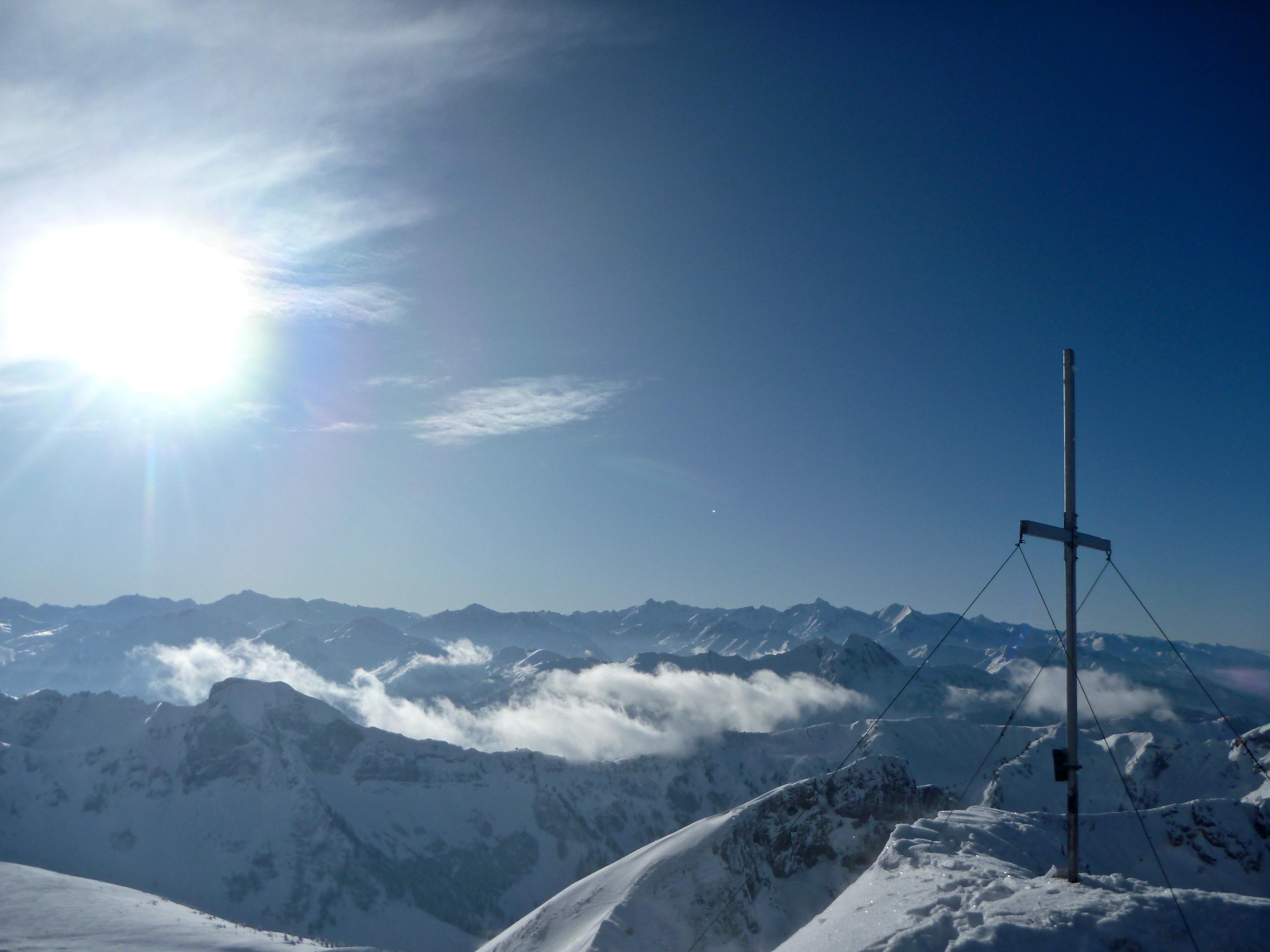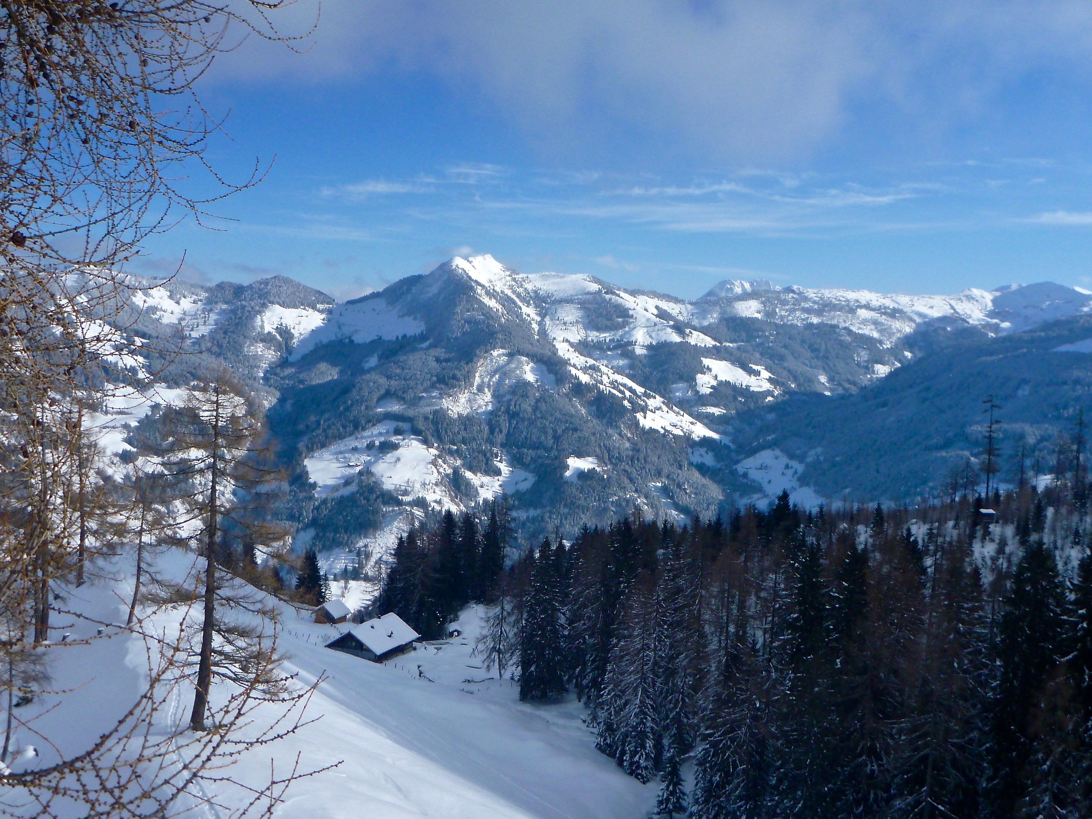 Schneelage: am Start unten im Wald viel zu wenig Schnee, auf den Wiesen gehts gerade noch, ab Iglalm perfekt, Pulver, im Gipfelhang knietiefer Stapfschnee.
