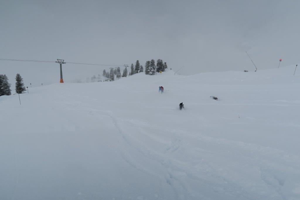 Die Piste war schon ausreichend präpariert. Oben hatten wir etwa 20 cm Neuschnee.