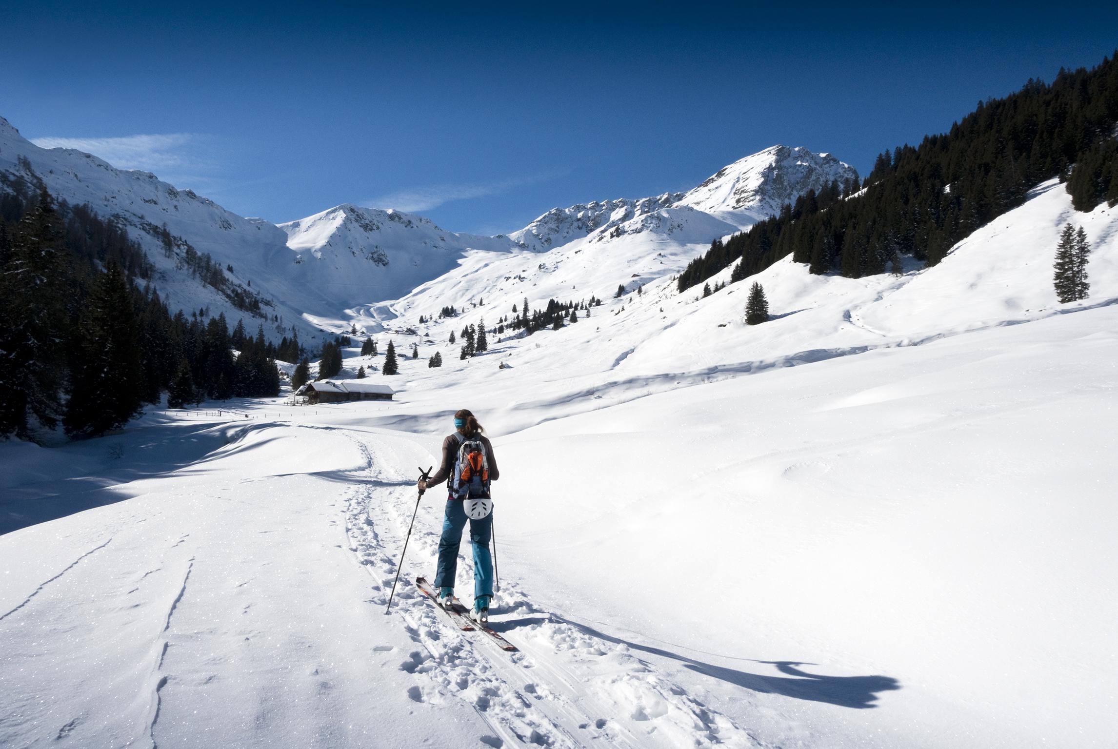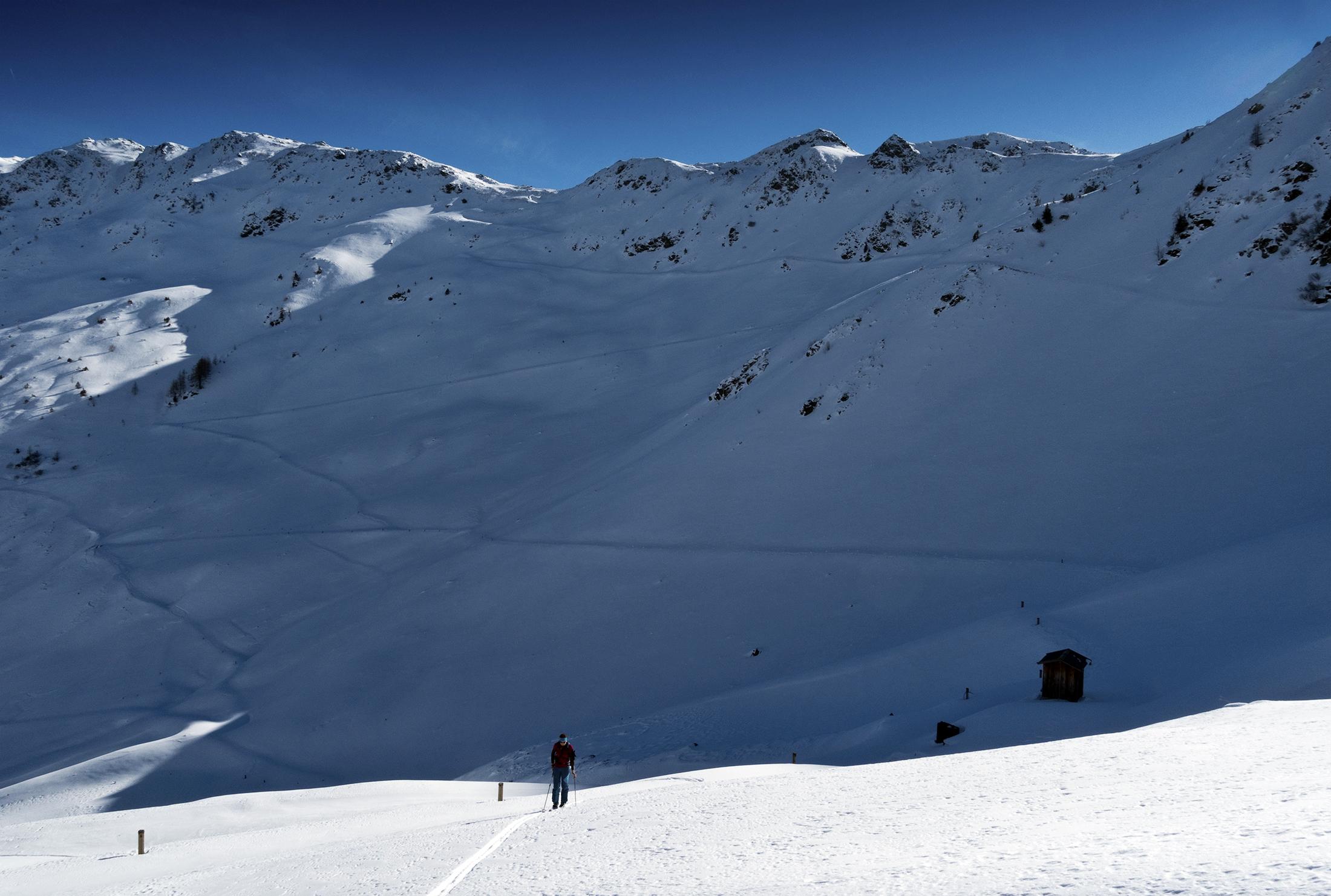 Wenn man den Vogelalpgraben bis in den Talschluss geht, lässt man die zahlreichen Spuren und Tourengeher vom und zum Schusterkogel hinter sich.