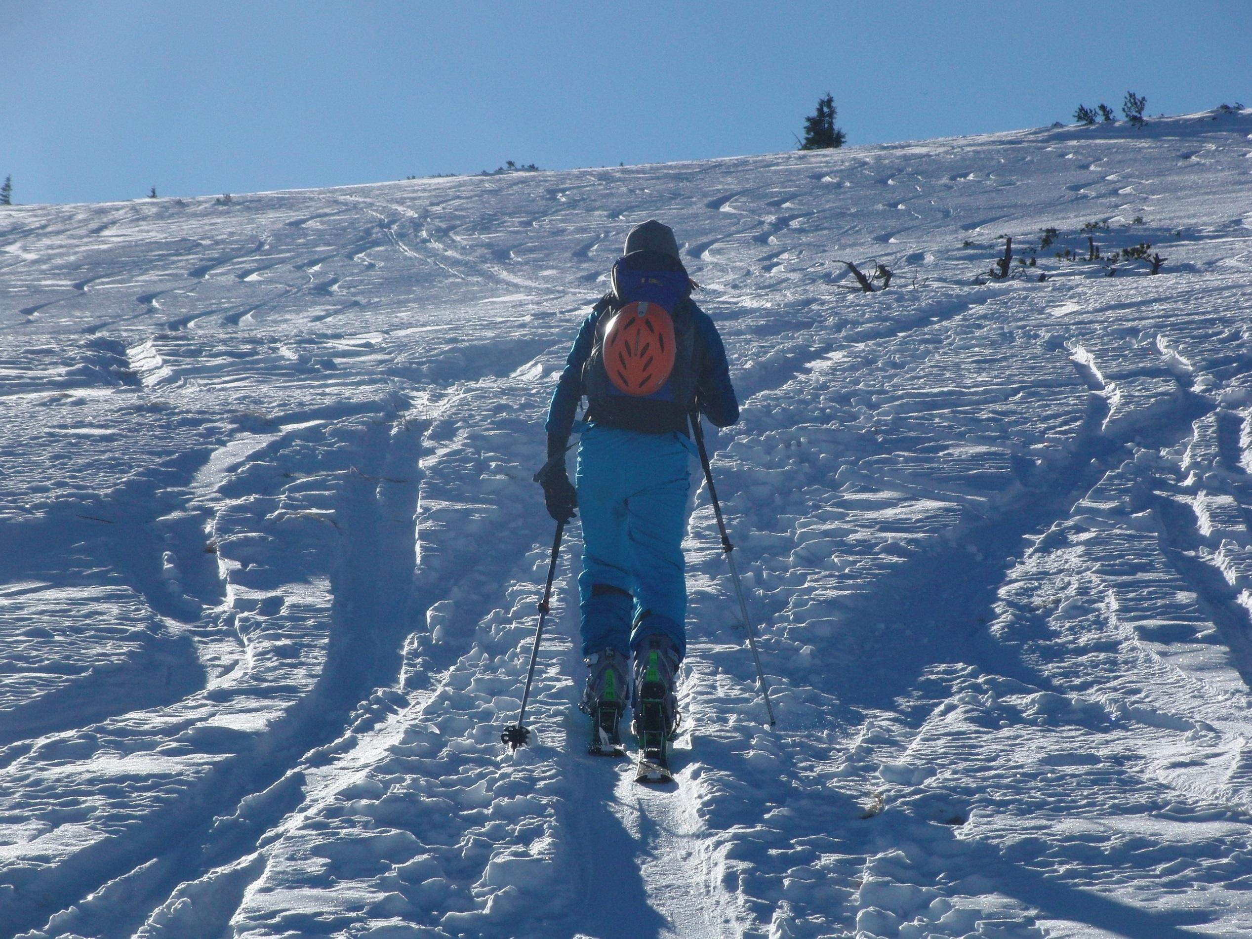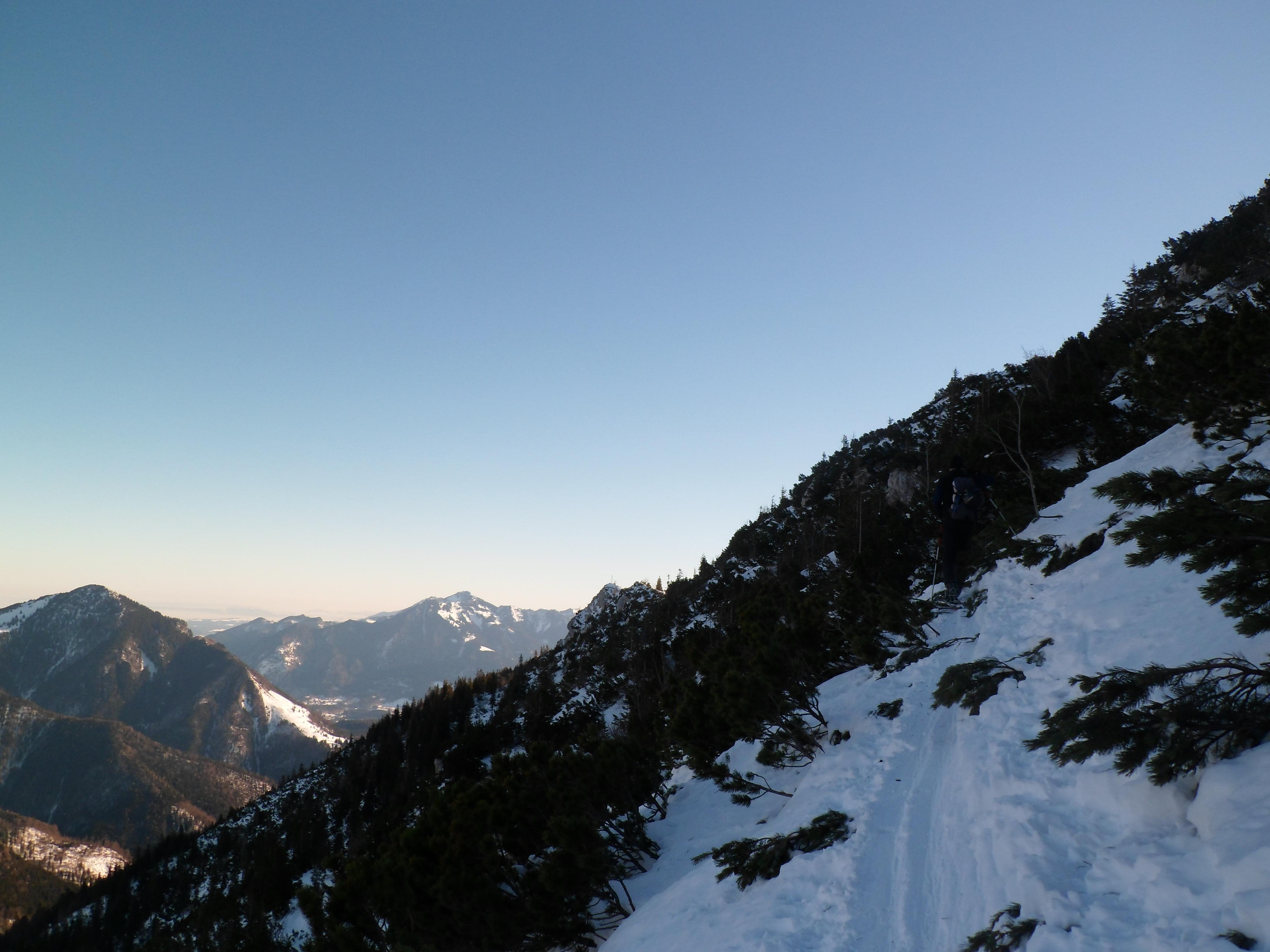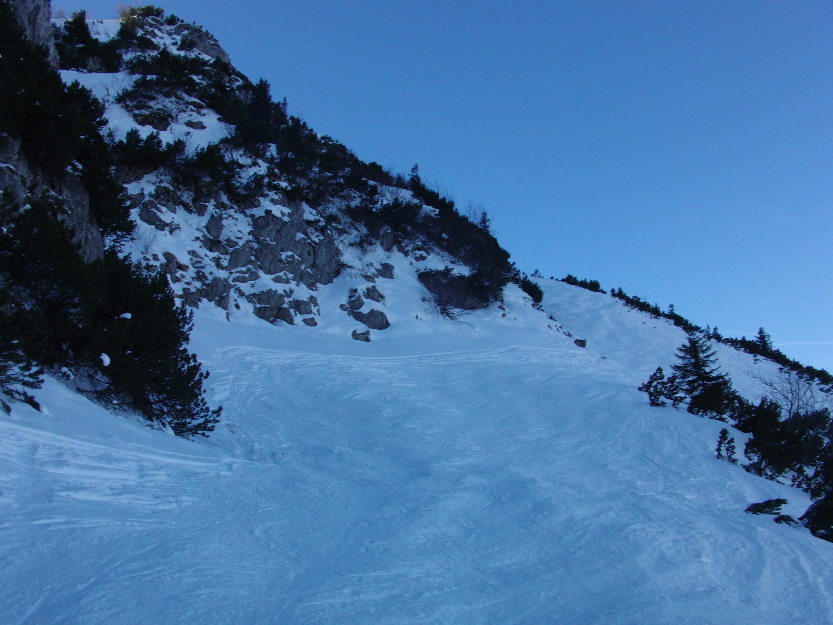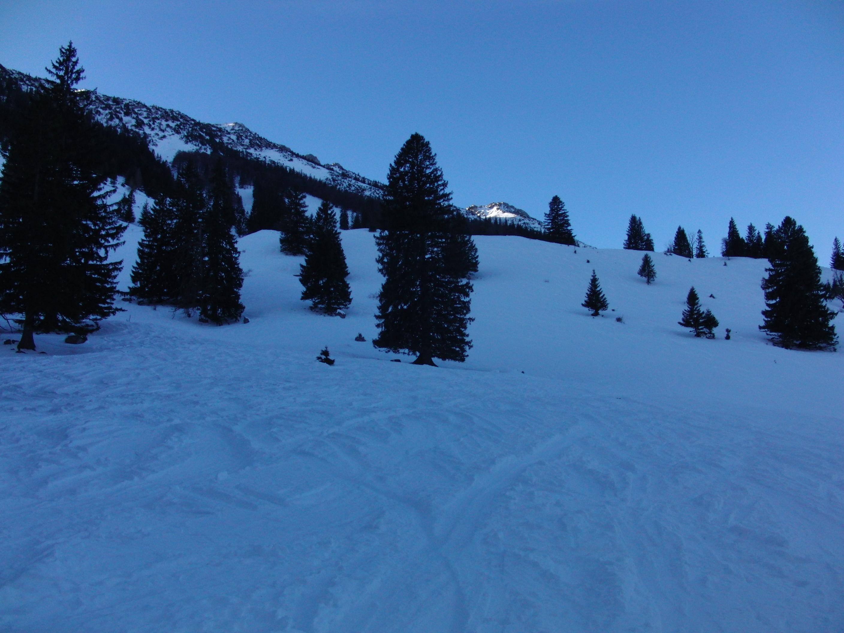 Man kann im Hochwinter auch spät losgehen, das frühe Austehen hat sich jedoch angesichts der aufsteigenden Gruppen, die uns bei der Abfahrt entgegenkamen wieder gelohnt. Wir waren die meiste Zeit allein.