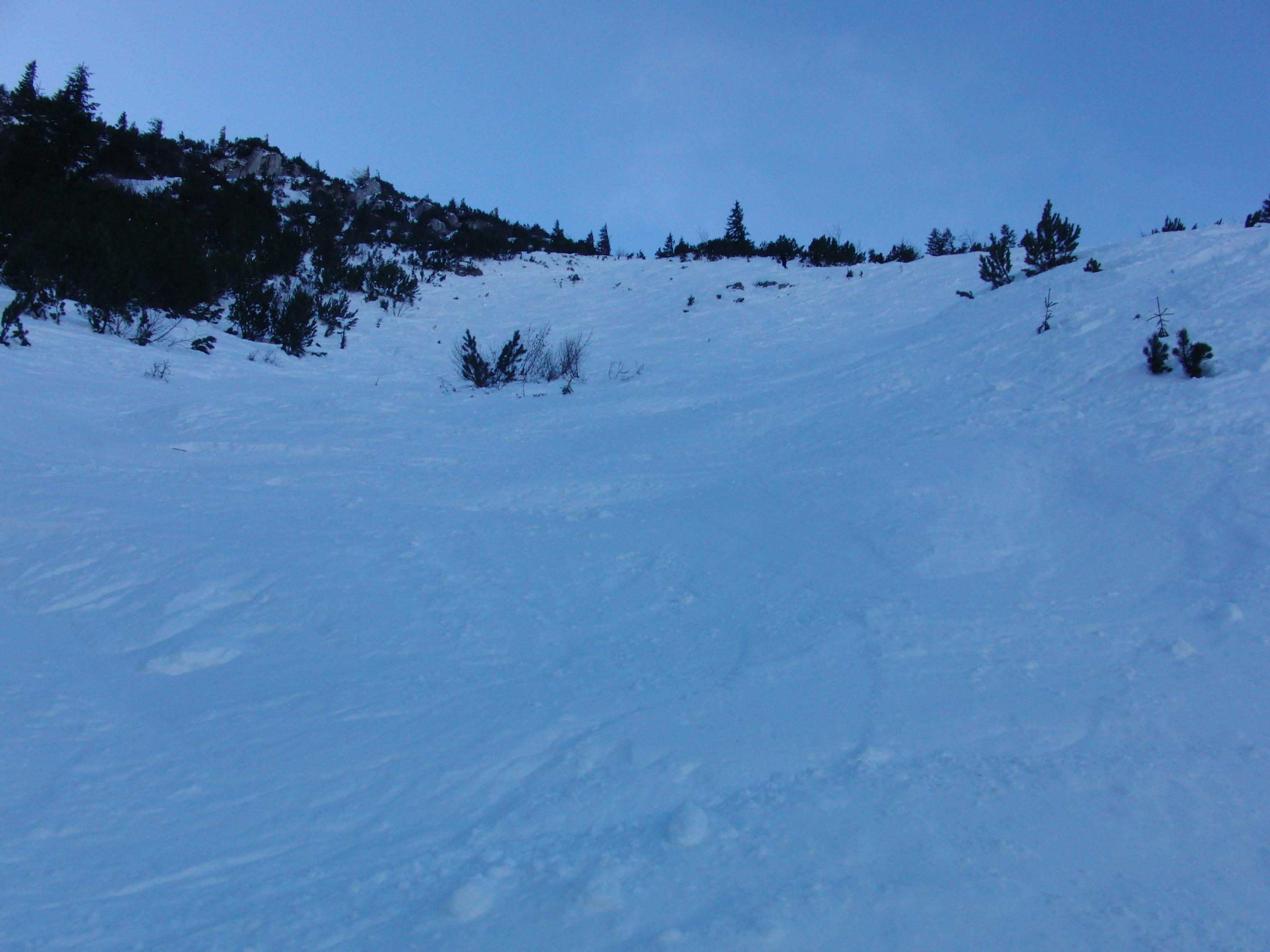 Die Aufstiegsspur zu den Aschentaler Wänden ist trotz häufiger Begehung noch griffig, lediglich im oberen Teil fühlt man sich im Latschendschungel. Der Schnee in der Abfahrt ist durch die nordseitige Ausrichtung gut konserviert, im oberen Teil pistenartig eingefahren, die Buckel sind aber schön weich. Im unteren Teil und oberhald der vorderen Dalsenalm fanden sich noch Möglichkeiten für eigene Spuren.