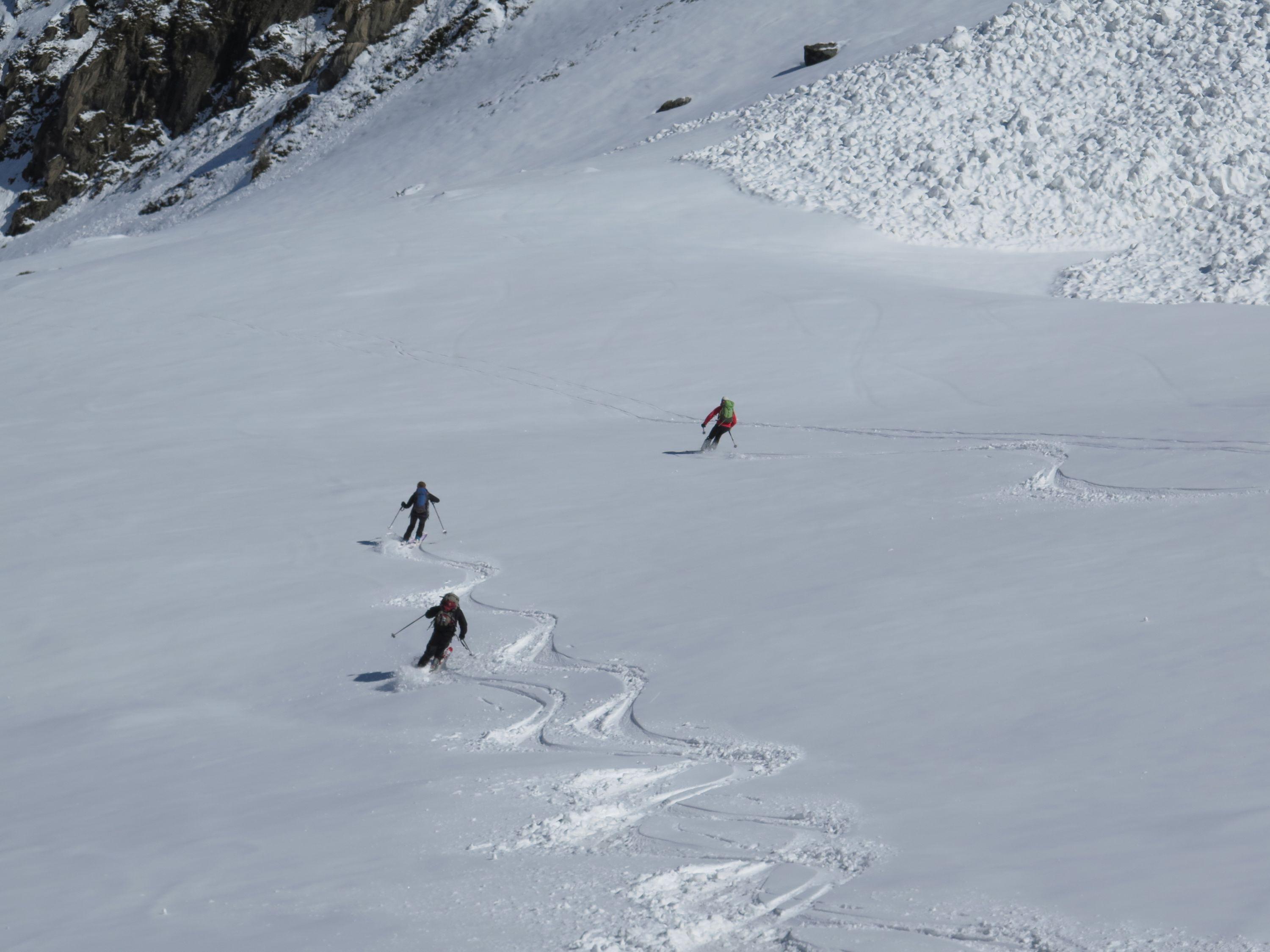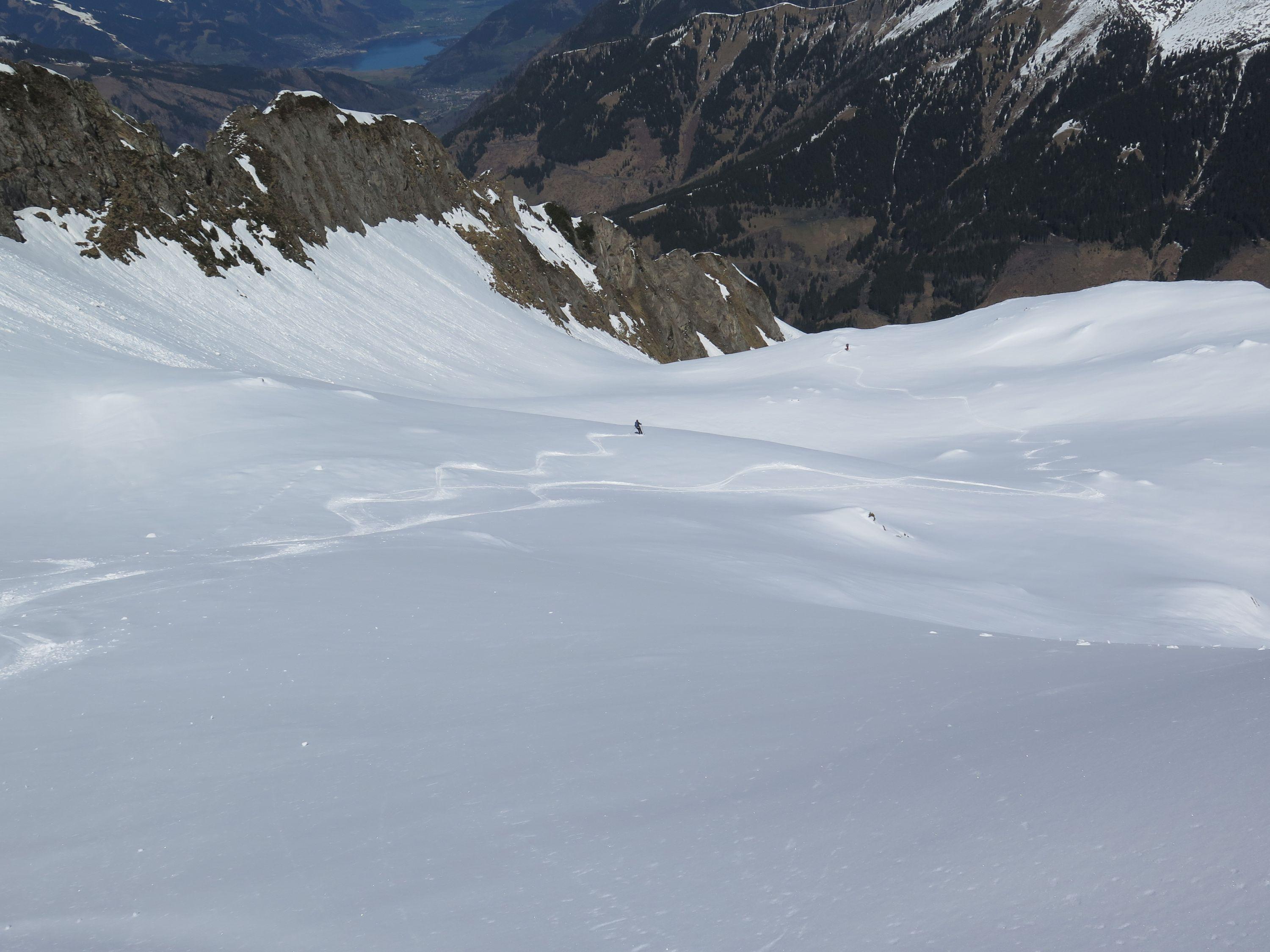 Abfahrtsverhältnisse : Firn, im mittelteil brechender Harschdeckel,letztes Stück sumpfig