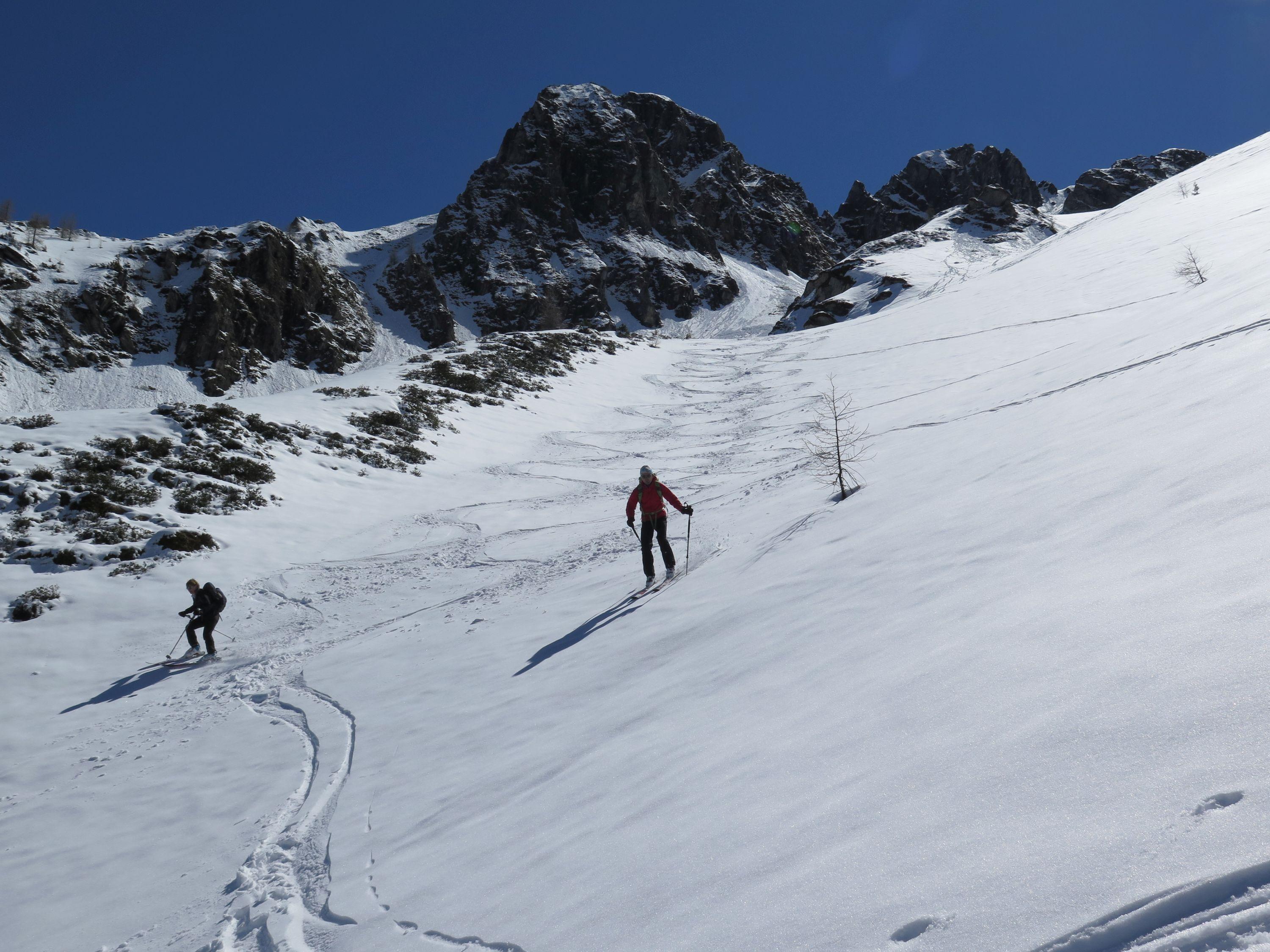 Starten bei herrlichem Wetter von Bad Fusch zur Embach-Hochalm, 1/2 Std. Schi tragen, danach gehts die weiten Mulden, das einsame Hochtal bis zum steilen Gipfelhang, welcher vom Neuschnee bereits entladen, daher die Scharte zum W-Grat gut zu begehen war - Skidepot! Hier geht es ca. 100hm den alpinen West-Grat zum Gipfel. Ein traum - Panorama Blick!