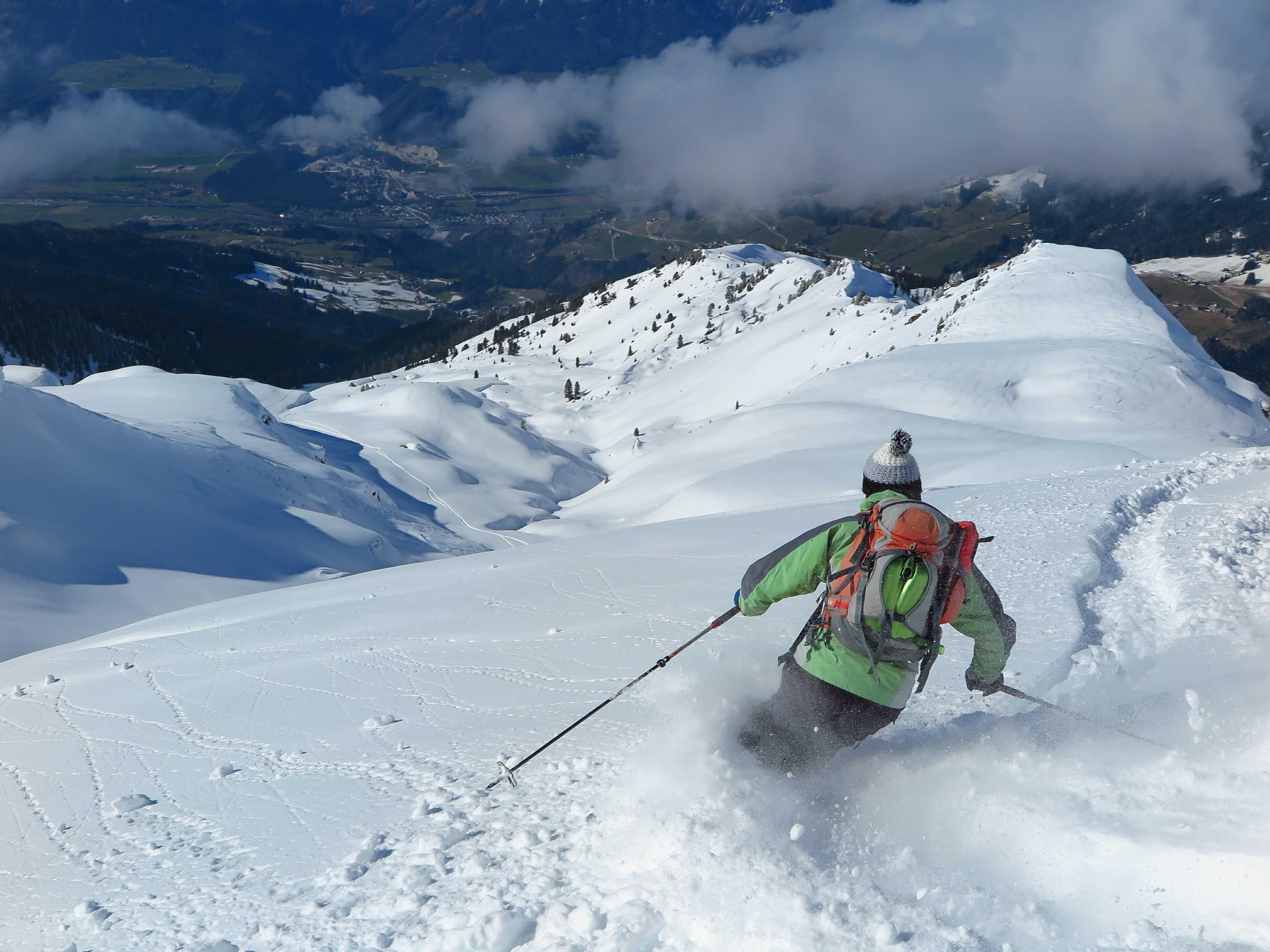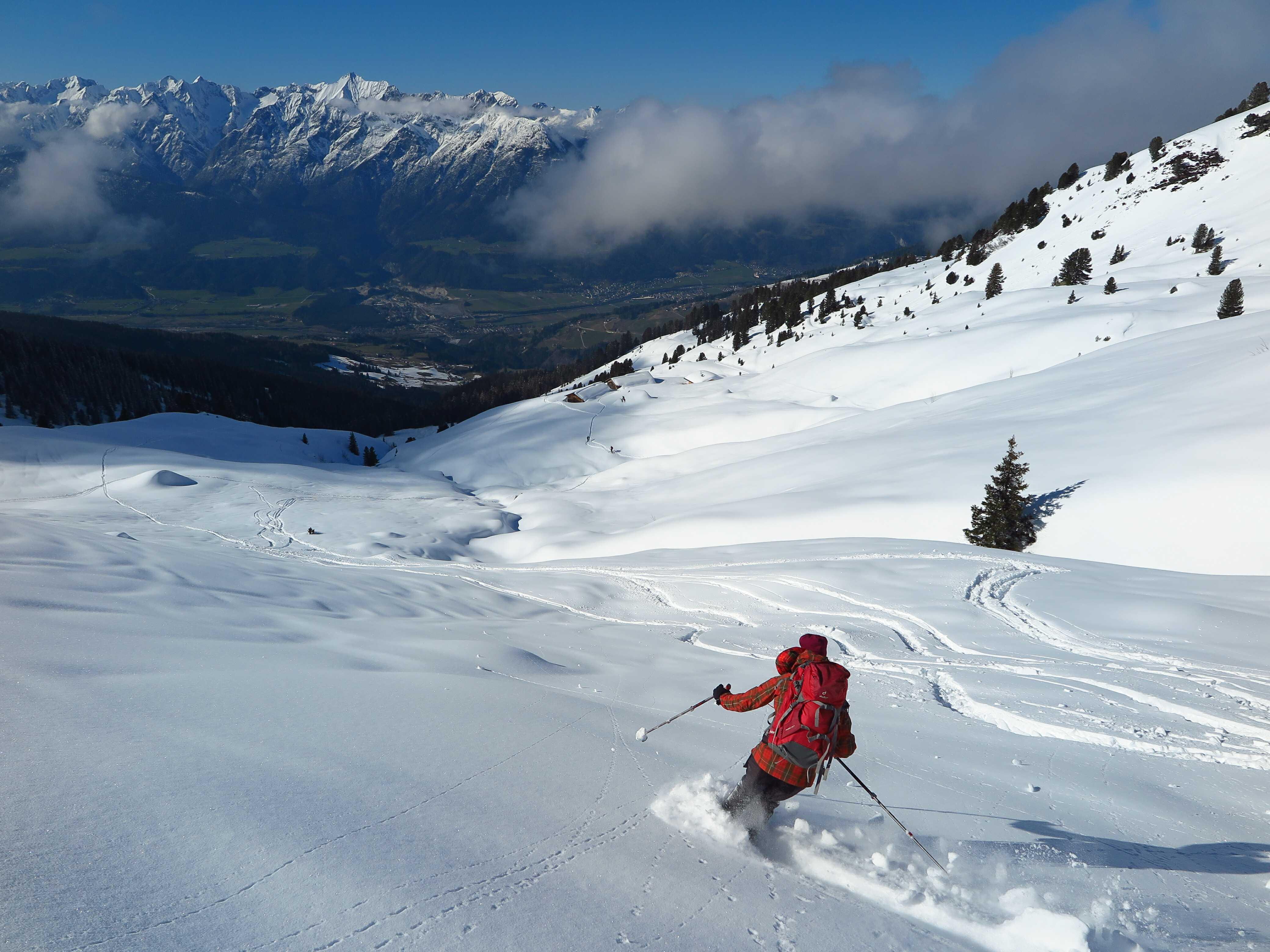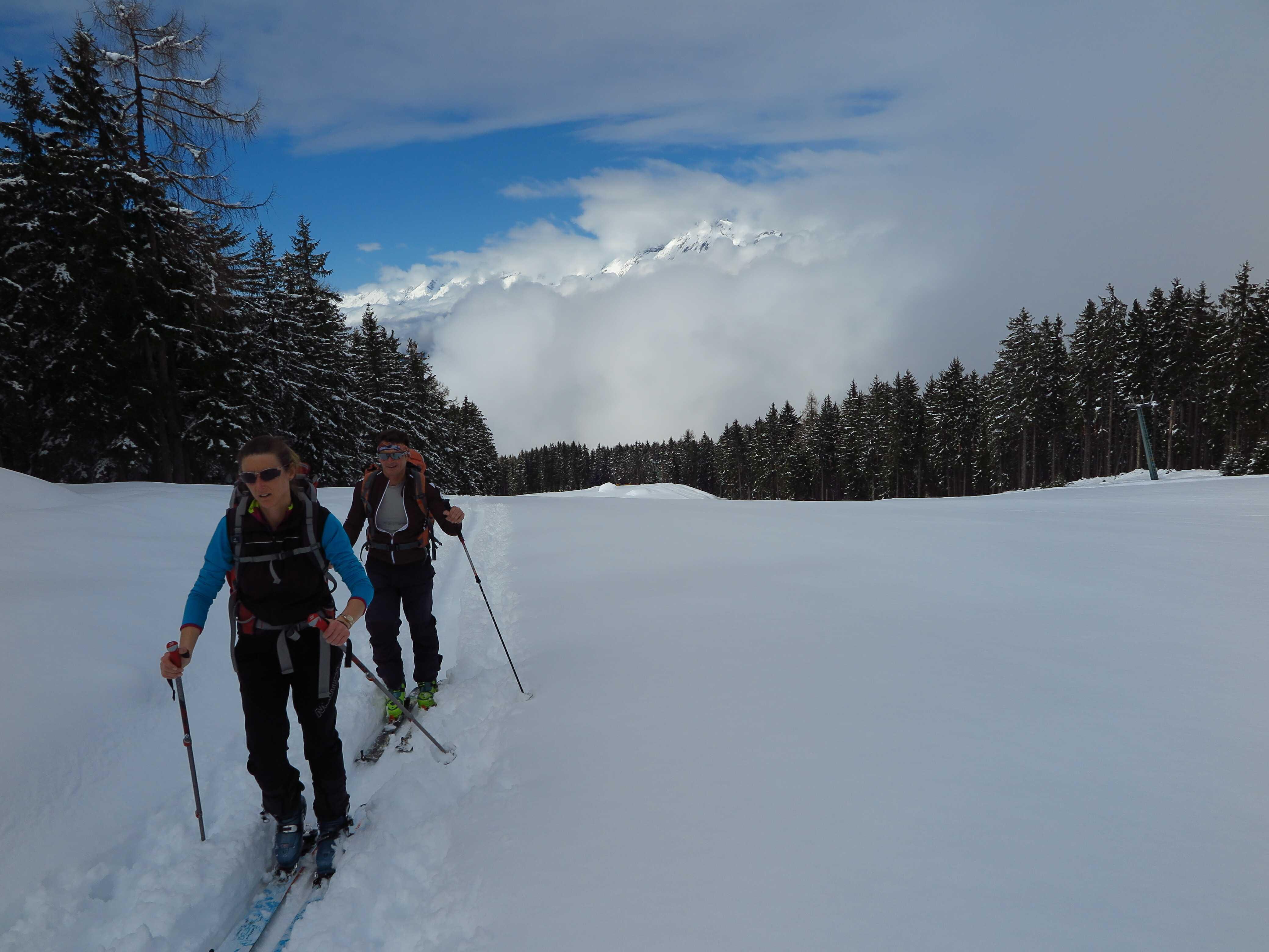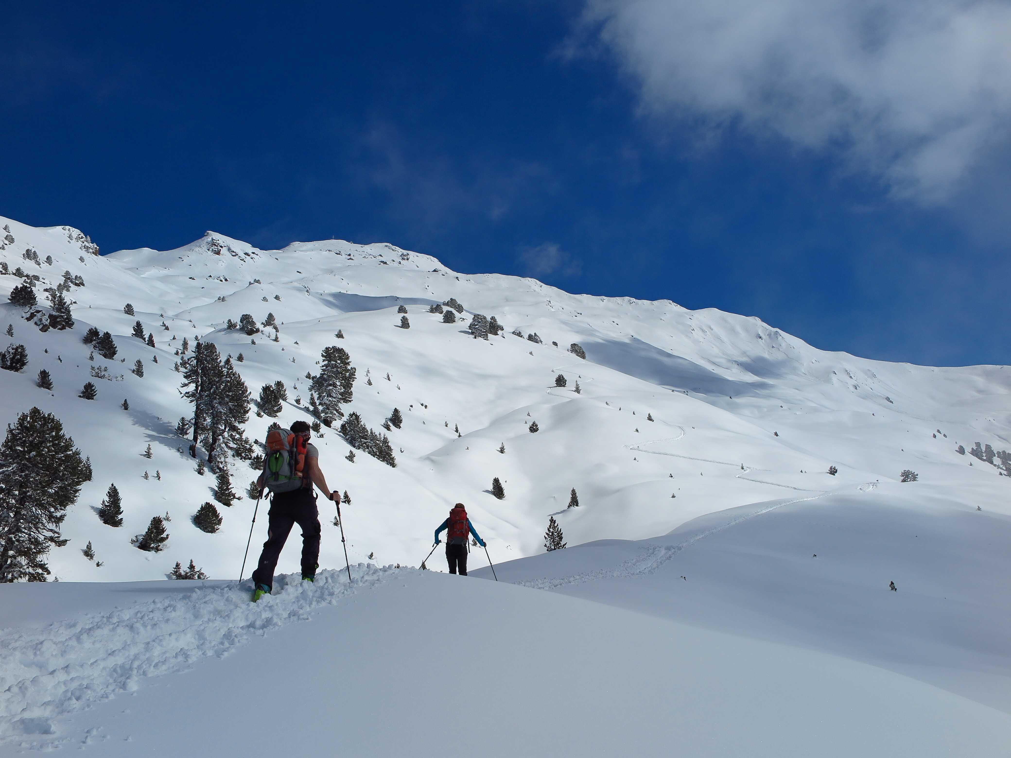 Von Weerberg/Hausstatt (ca.1300) über die Skipiste und den Waldwegen unterhalb des Nonsbergrückens auf die freien Hänge oberhalb der Nonsalm hinübergequert. Von dort über die schönen W-Hänge auf der Route, die von Innerst heraufkommt zum Gipfel (2506). Abfahrt über die N-Hänge zur Lafasteralm am Ziehweg und zurück zum PP.