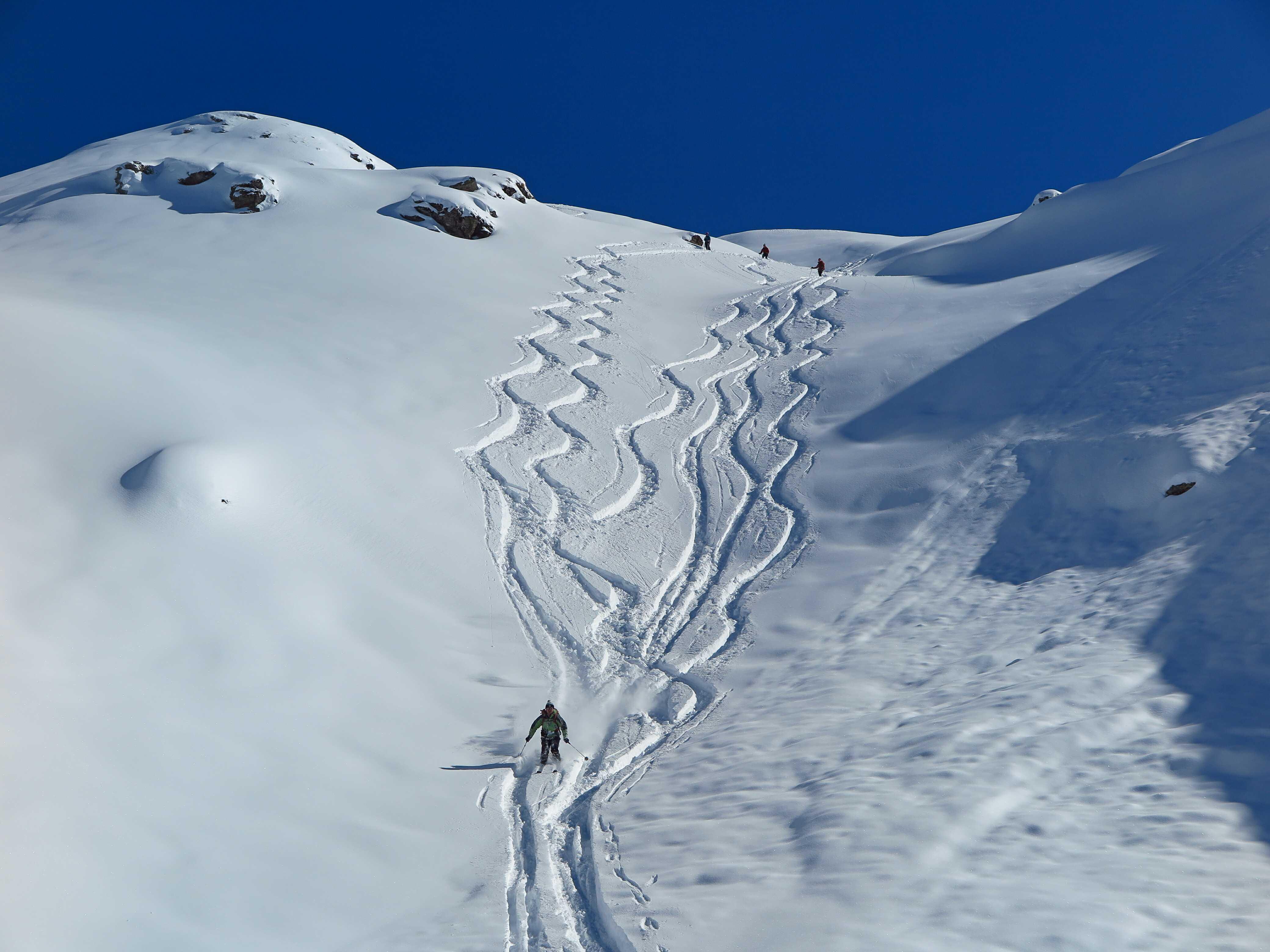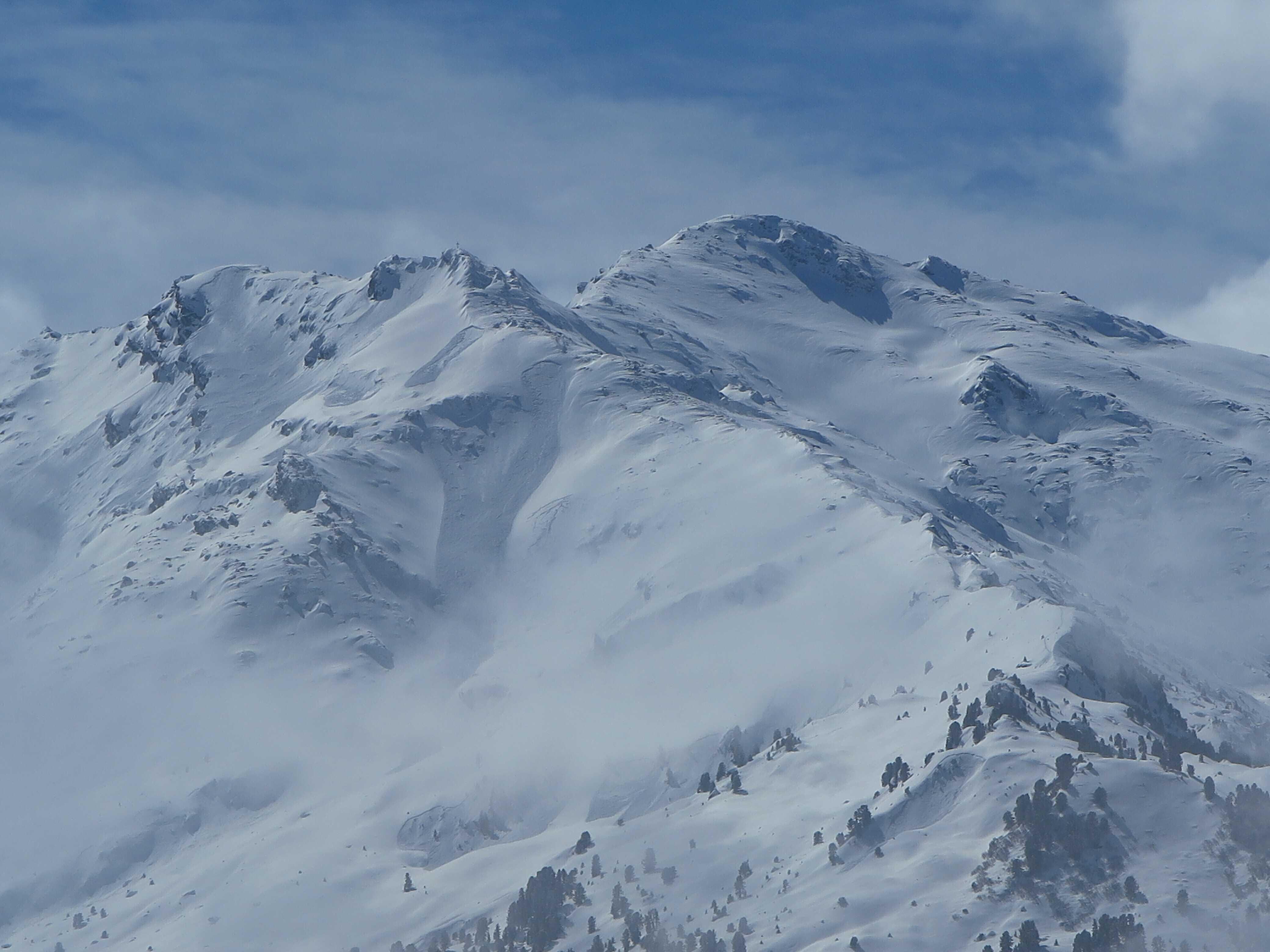 Lawinenbeobachtungen: Zahlreiche Neuschneeabgänge aus steilen Hängen hauptsächlich O- , aber auch W-seitig waren an den umliegenden Bergen zu erkennen.