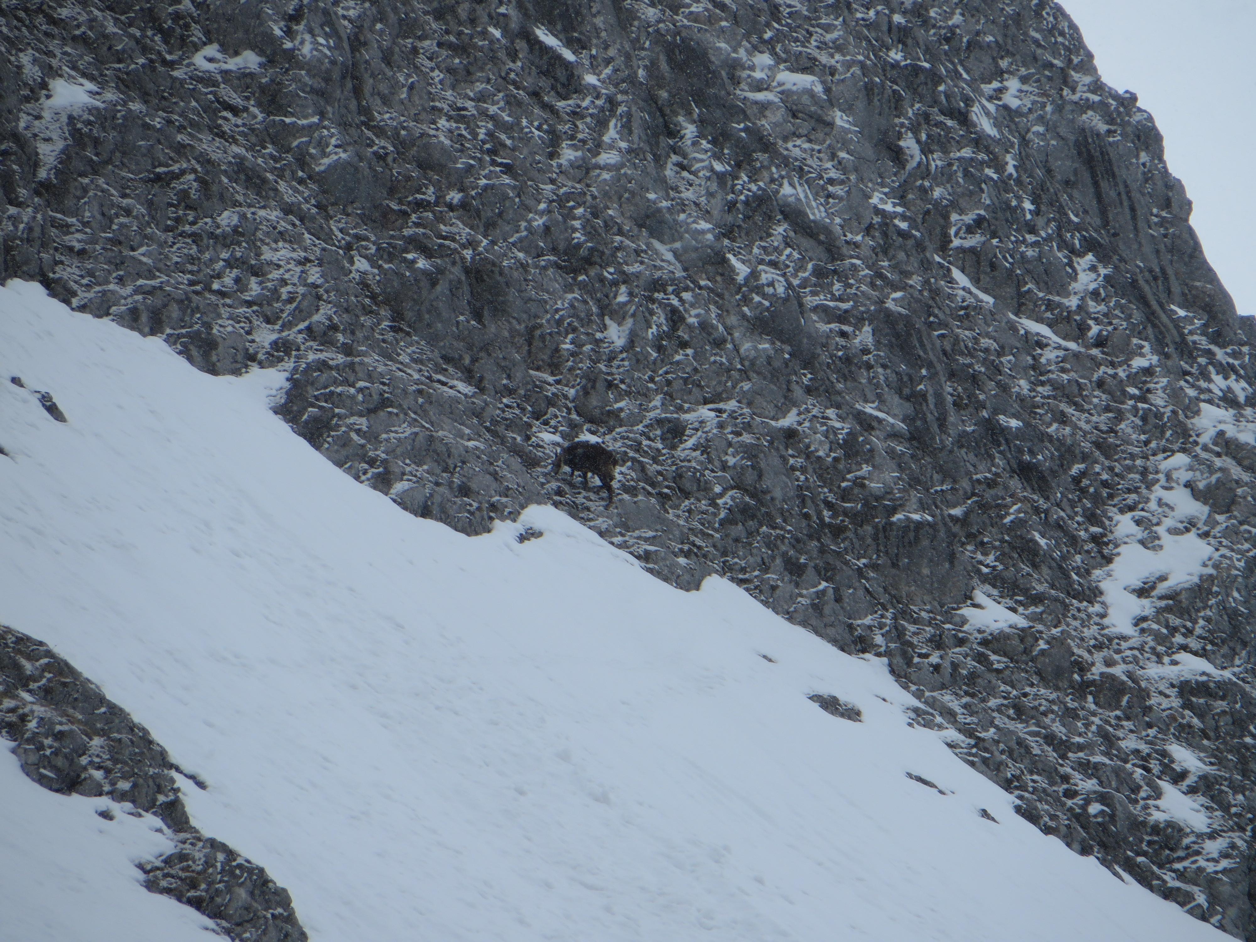 Weil die Saugasse von St. Bartholomä aus nach verwehtem Neuschnee als zu heikel eingeschätzt wurde, musste der lange Weg von Pürzlbach via Dießbachstausee und Ingolstädter Haus mit Durchquerung der Hochfläche des Steinernen Meers als Alternative um zum Kärlinger Haus zu kommen her (1. Tag), unterwegs bei schönstem Wetter so ziemlich alle Schneearten und doch recht viel Pulvriges. Nach der ersten Übernachtung am Kärlinger Haus auf den Funtenseetauern via Ledererkar (2. Tag), auch hier bei strahlender Sonne viel Pulver und doch auch in der Höhe deutliche Wärmeeinflüsse. Dann nach einer zweiten Übernachtung am Kärlinger Haus via Viehkogel zum Ingolstädter Haus und Übernachtung dort (3. Tag), wechselhaftes Wetter und Temperaturen knapp über Null. Schließlich (4. Tag) bei winterlichen Verhältnissen mit Schneefall und bis mittags bis etwa 15 cm Neuschnee Abstieg dem bekannten Sommerweg folgend zum Dießbachstausee und Versuch einen experimentellen Weg nördlich vom See zu finden (... da war doch so ein weißes Band was begehbar aussah... Aber: nicht empfehlenswert, hat nicht funktioniert.).