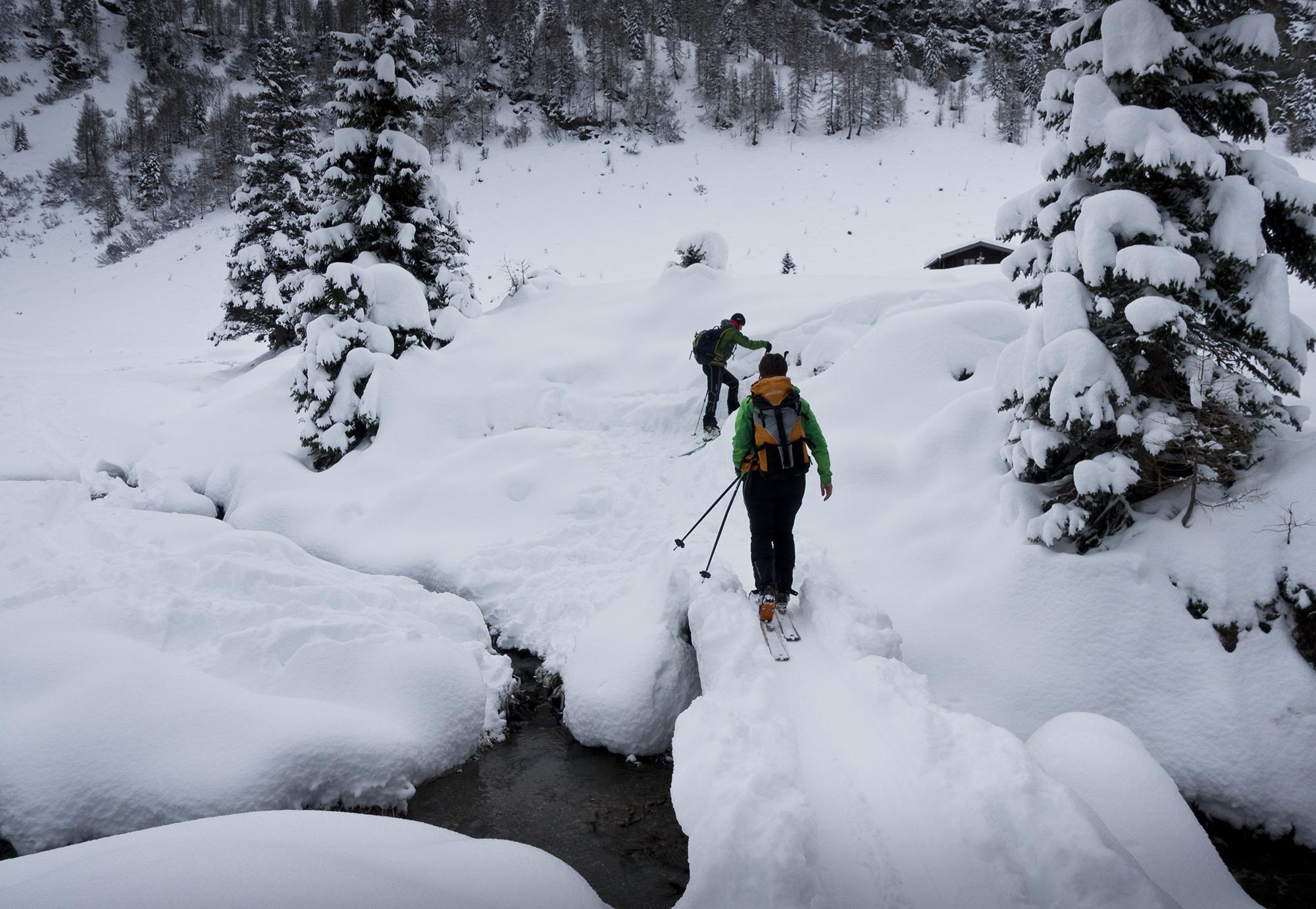 Die Straße zum Lenzanger ist offen, trägt allerdings eine geschlossene Schneedecke. Im Wald und im Kolmkar hatten wir 20-30cm ungesetzten Pulverschnee auf festerem Schneeuntergrund, hervorragend zu fahrender "Girl-Powder"(Naglik 2016, unveröff.)! Zu beachten ist, dass die Bachläufe noch offen oder nur trügerisch leicht zugeschneit sind.
