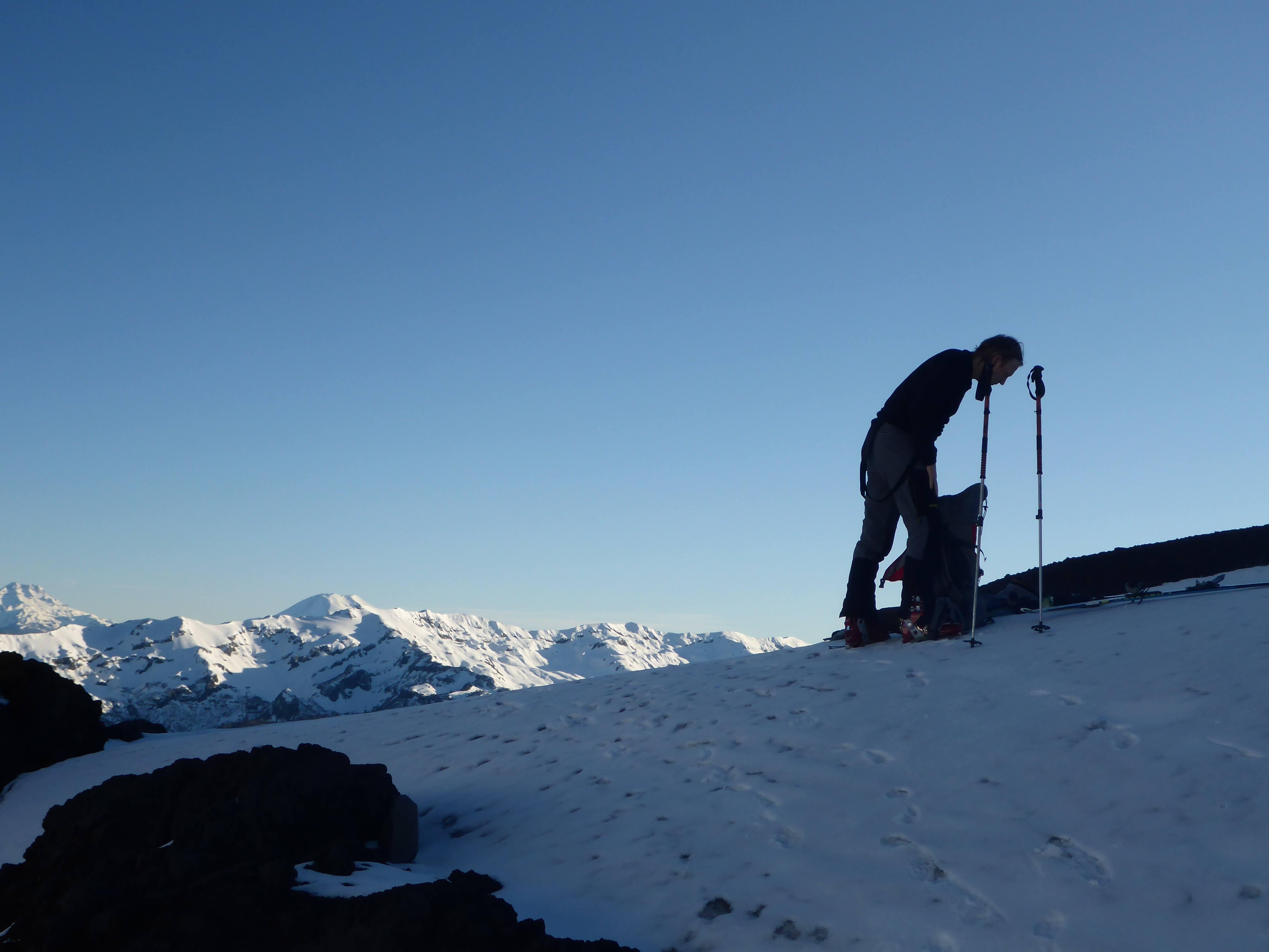 Insgesamt habe wir um die 6500 HM runtergerödelt, der eine mehr, der andere weniger. Leider habe ich nicht jeden Gipfel geschafft, aber das ist absolute Nebensache. Die Vulkane sind alle im Bereich von 2500 - 3150 Meter hoch, mit dem Llaima als höchstem Berg. Will man auf jeden Gipfel rauf muss man minimum 1200 HM bewältigen können, wobei man dabei noch nicht am Limit sein sollte. 1500 HM sollten problemlos zu schaffen sein. Denn die Weiten dort darf man nicht unterschätzen. Auf den Gipfeln weht meistens ein sehr frischer Wind. Die Hänge sind in der Früh meist brettlhart gefroren. Oft war auch ein Aufstieg nur mit Steigeisen möglich. Mit dem Wetter haben wir generell riesen Schwein gehabt, man hätte es mit Sicherheit auch schlechter erwischen können. :-).
