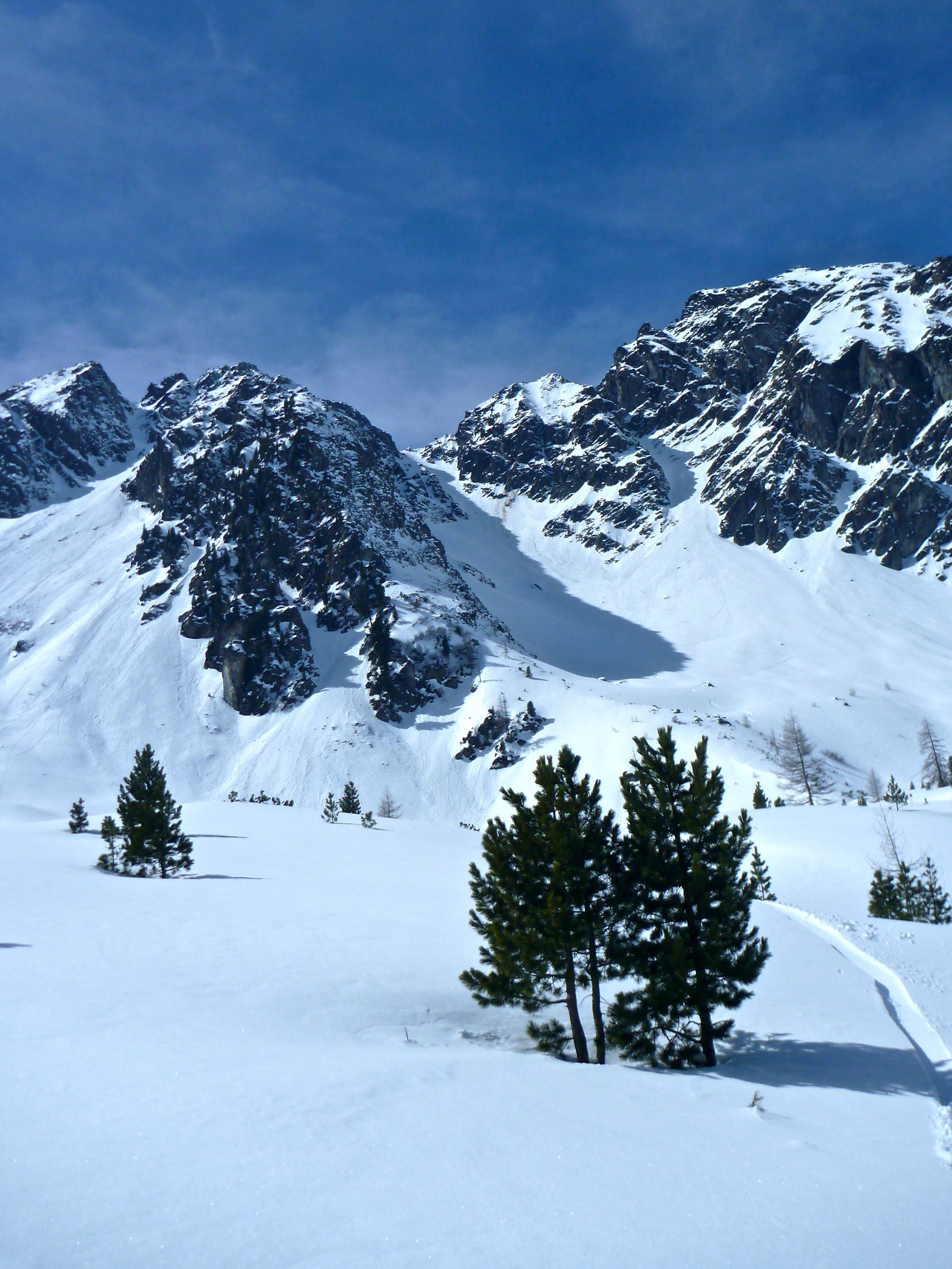 Schnee Lawinen: gerade noch genug von der Dorferhütte weg, heftiges Anstollen, ab 1900m mühsam, da 5cm pulverförmiger Neuschnee wegrutschte, Harscheisen halfen nur bedingt; einiges an Triebschnee, immer wieder kleine Schneebretter, Wummgeräusch 1x sogar auf einem relativ frischem Lawinenkegel, hab ich noch nie erlebt, allerdings LWS 1-2 (auch die Tage davor) und Mächtigkeiten gering, ansonsten wärs Wahnsinn gewesen.