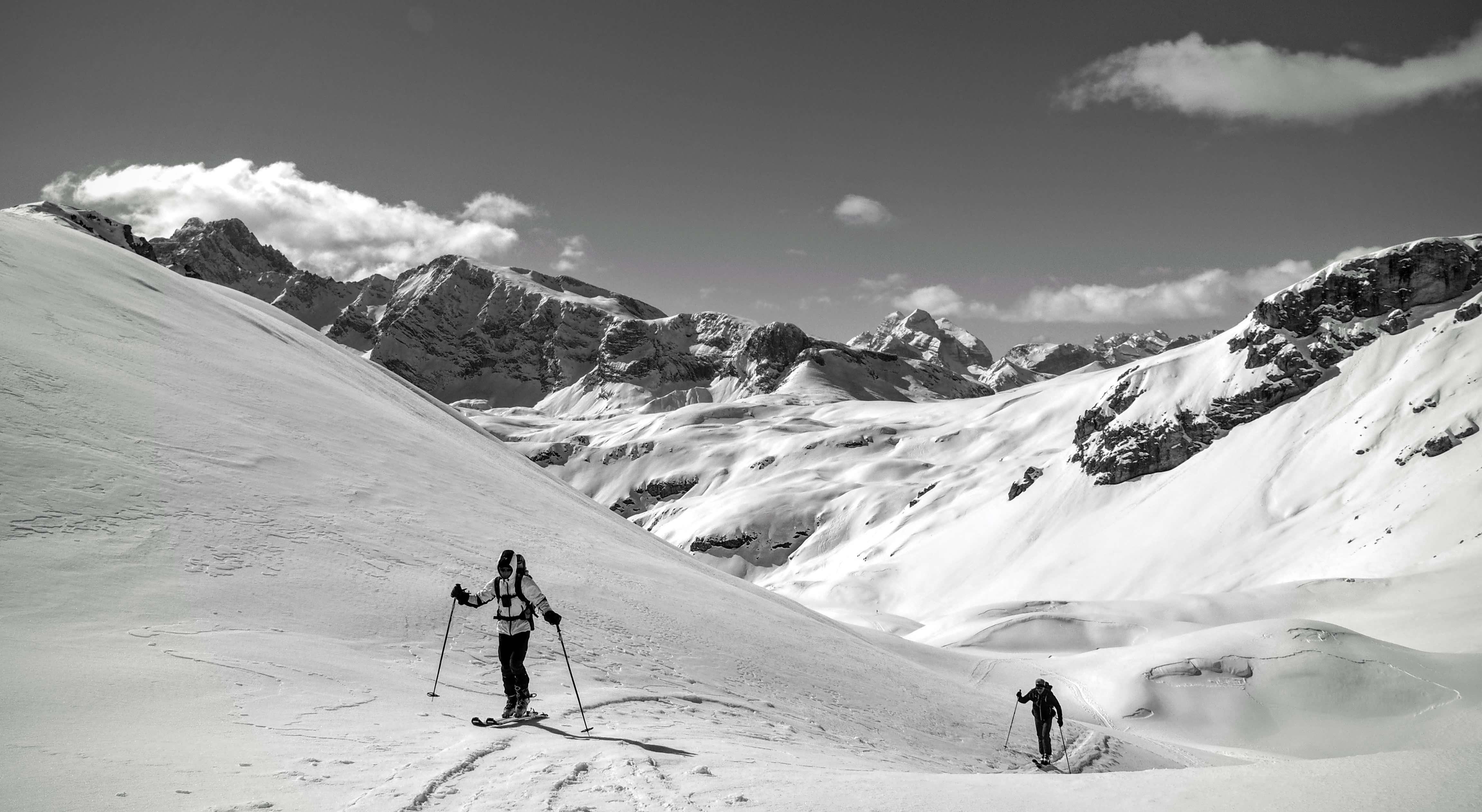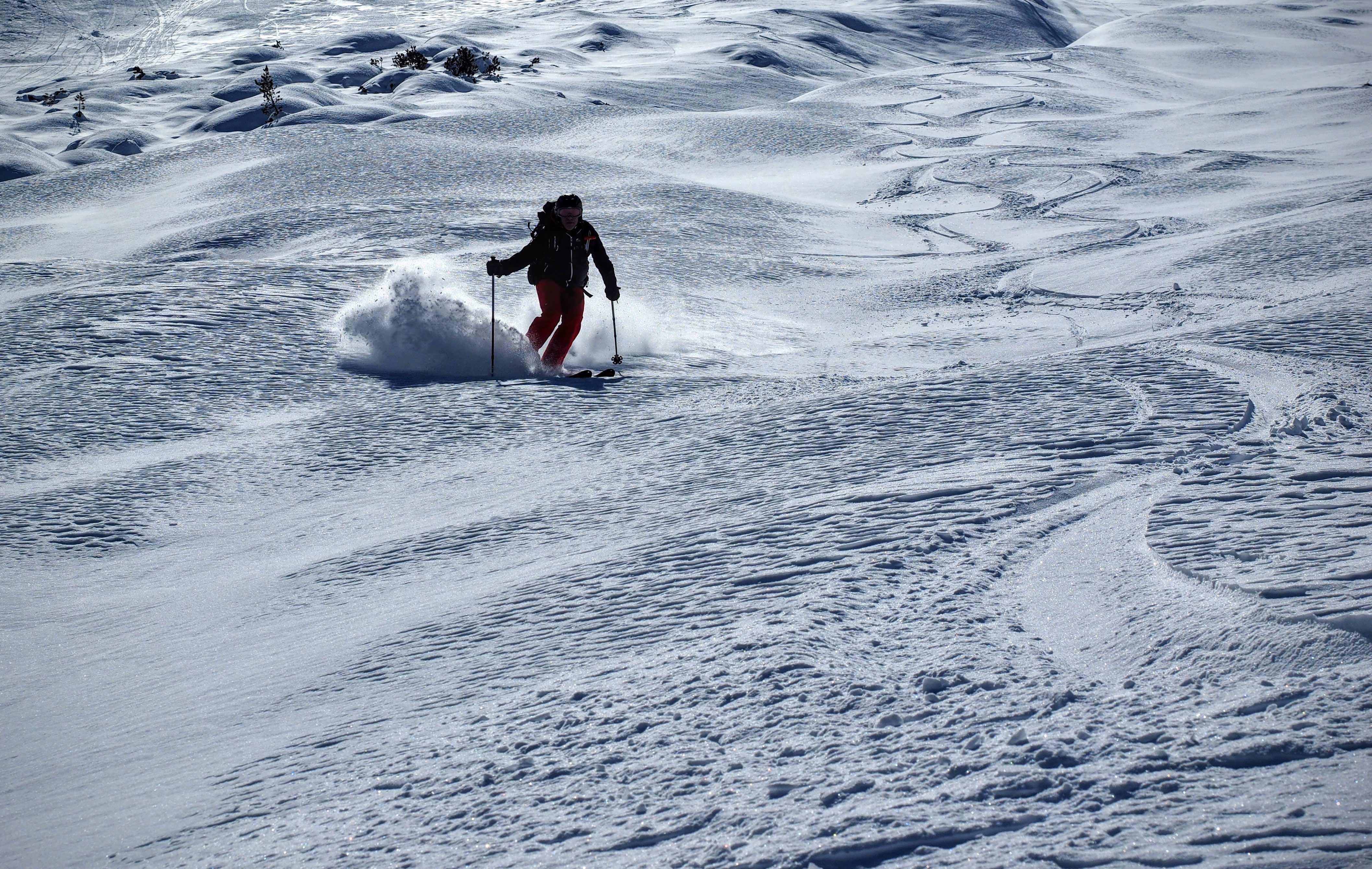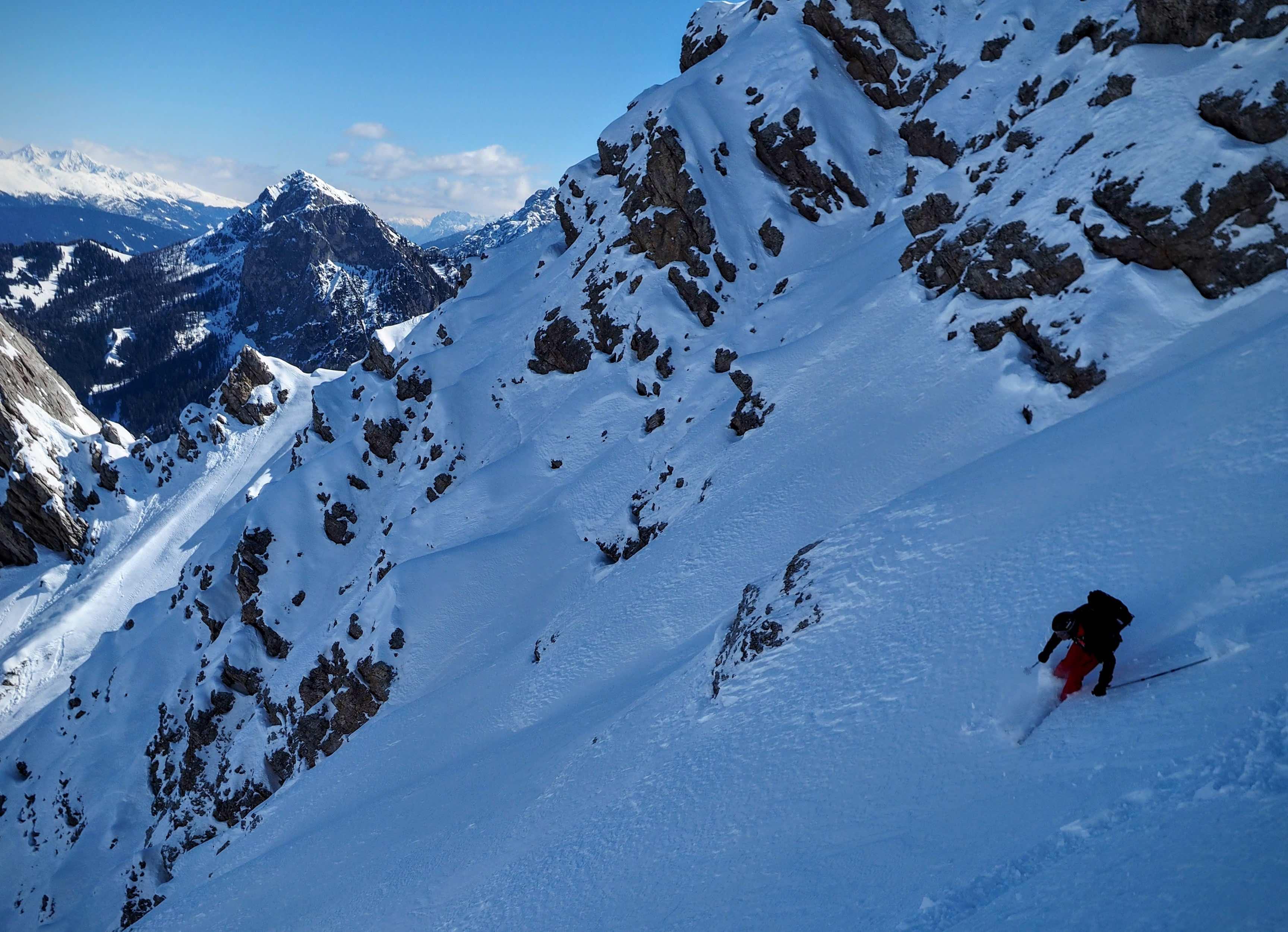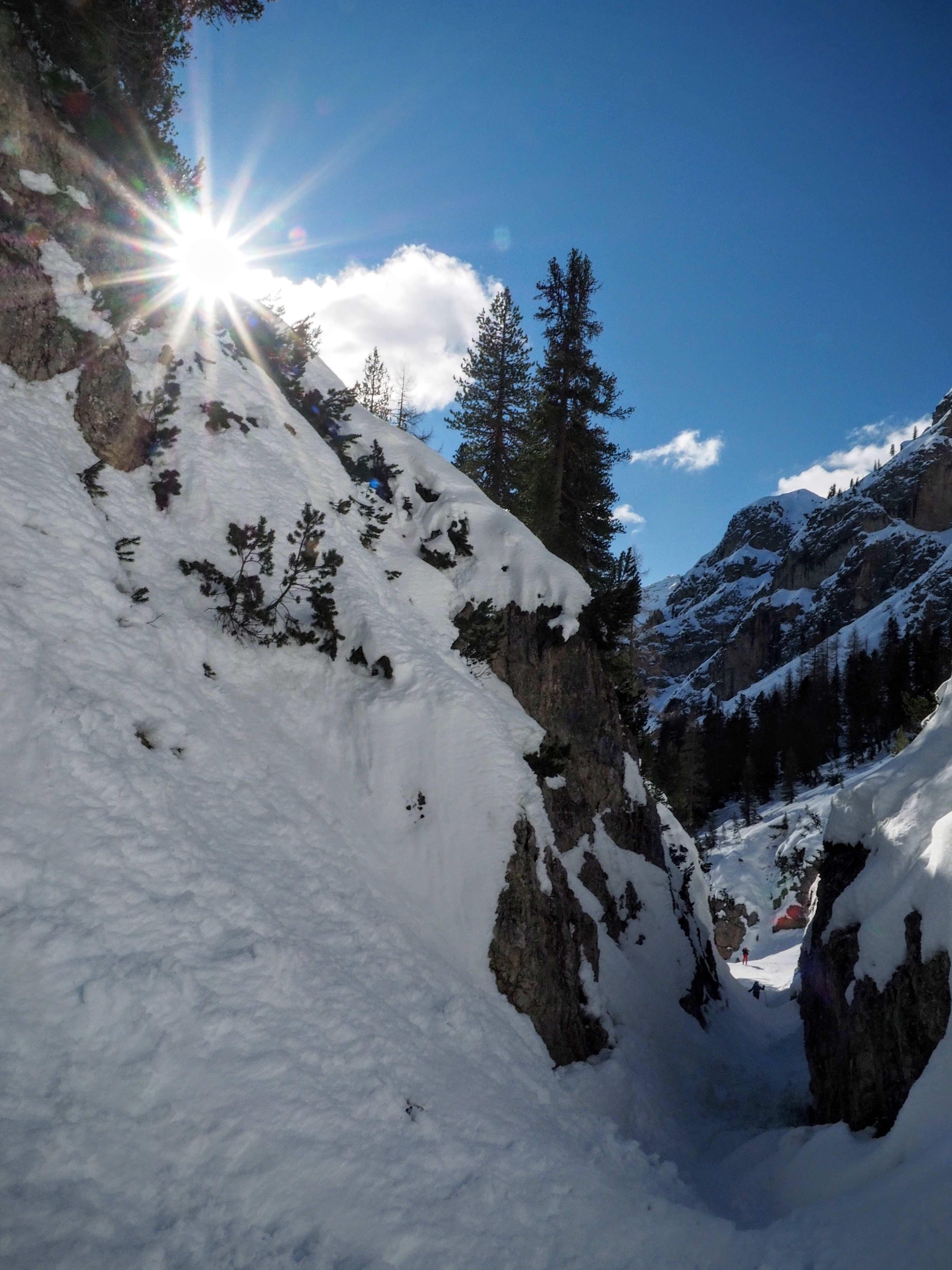 Schnee: Nordseitig, Scharte sehr schöner, gesetzter Pulver. Alle anderen Richtungen weniger empfehlenswert. Abfartspaß von der Rossalm hält sich in Grenzen. Stadllahn stark verspurt, Weißlahn ebenso. Schwalbenkofel unverspurt. Südseitig an diesem tag kein Firn.