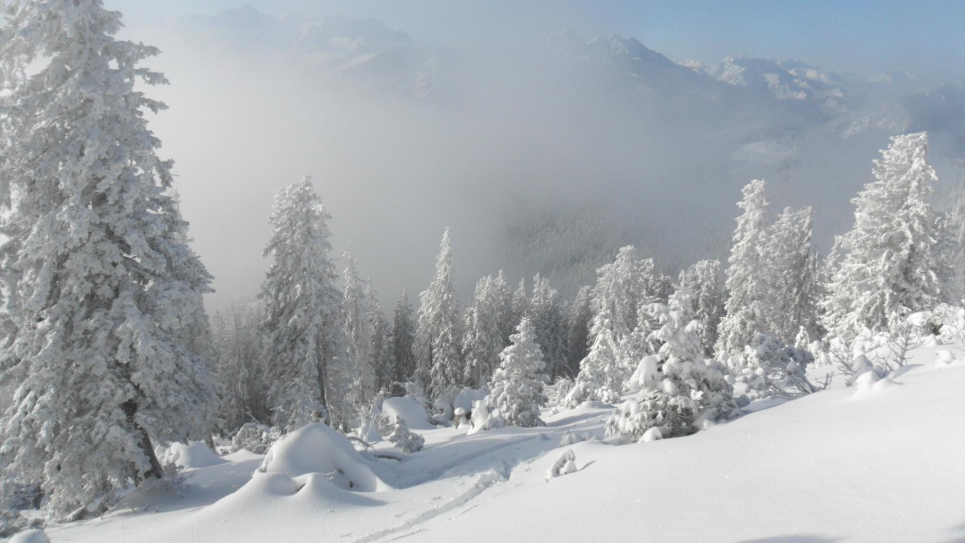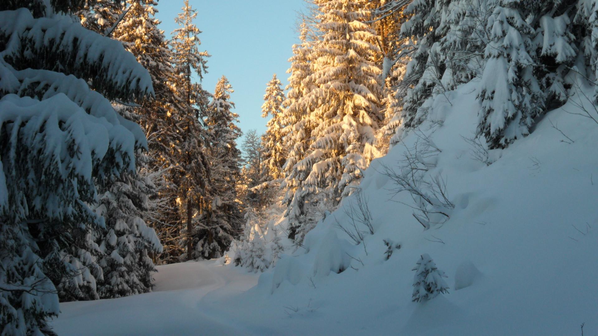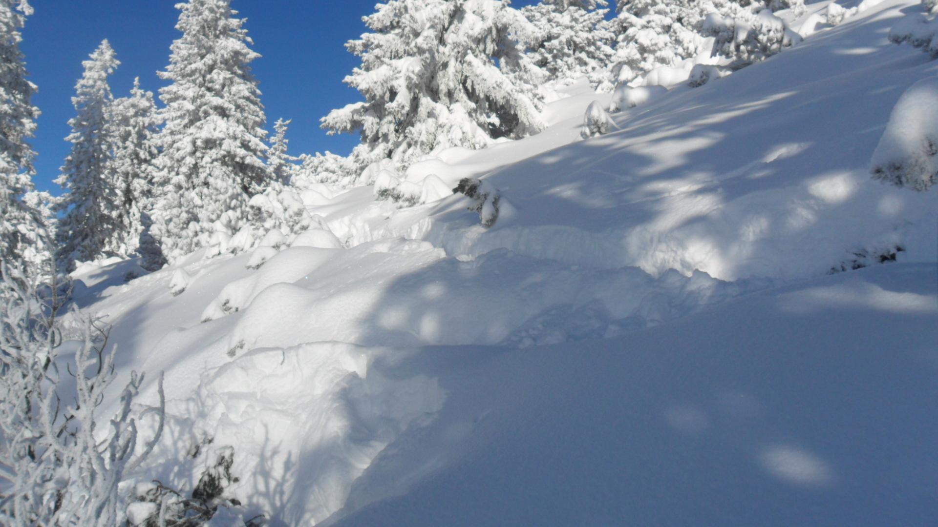 Anfangs war ich noch recht optimistisch bei bis zu 30 cm Neuschnee, der noch gestern Abend auf eine einsame Aufstiegsspur draufgefallen ist. Oben am Berg hatte es teilweise sogar 30-50 cm Neuschnee.