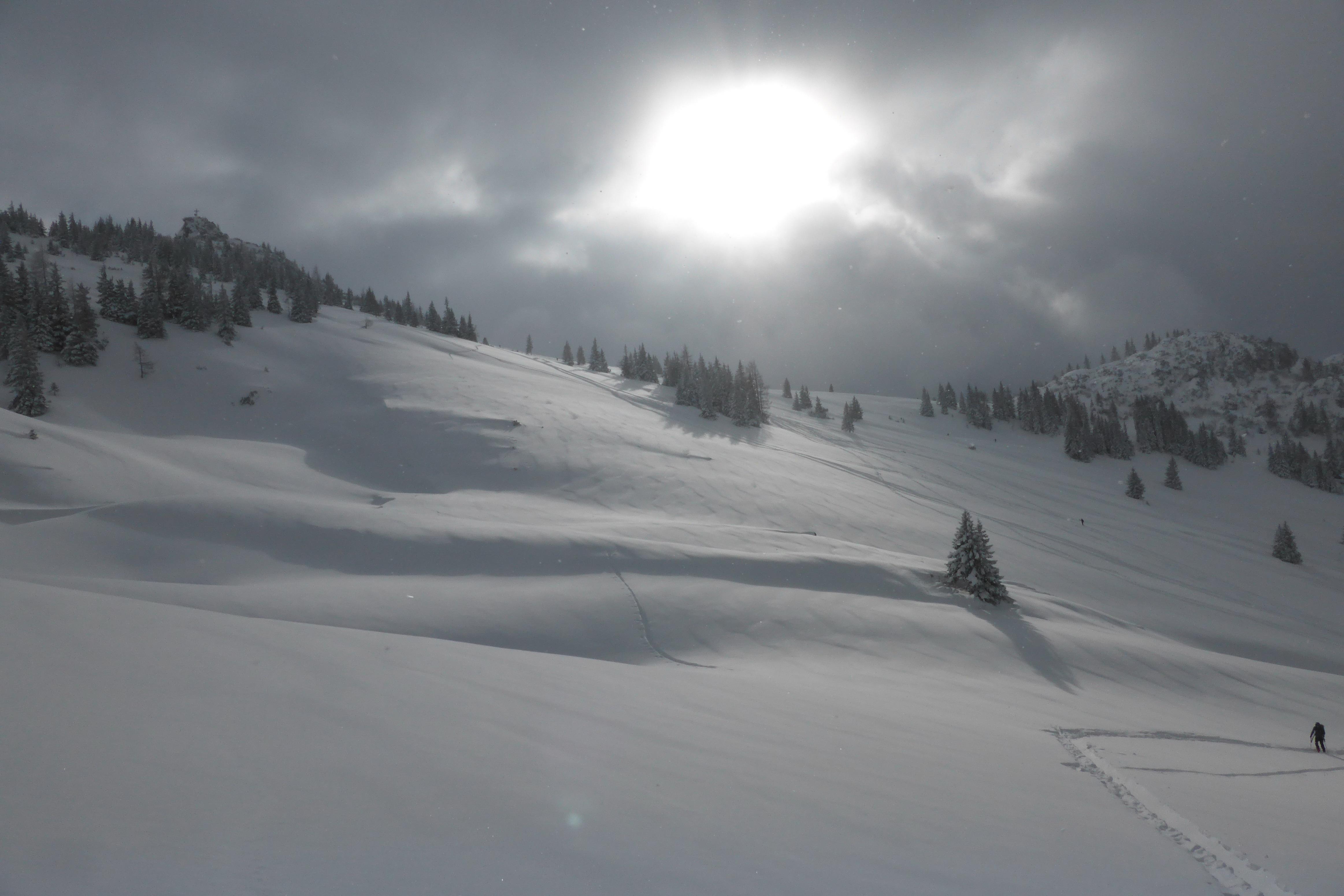 ...der Abfahrtsgenuss hielt sich aufgrund der Menge an flaumigem Neuschnee sowie der schlechten Sicht in Grenzen...das Gelände vom Peitingköpfl runter fast zu flach...