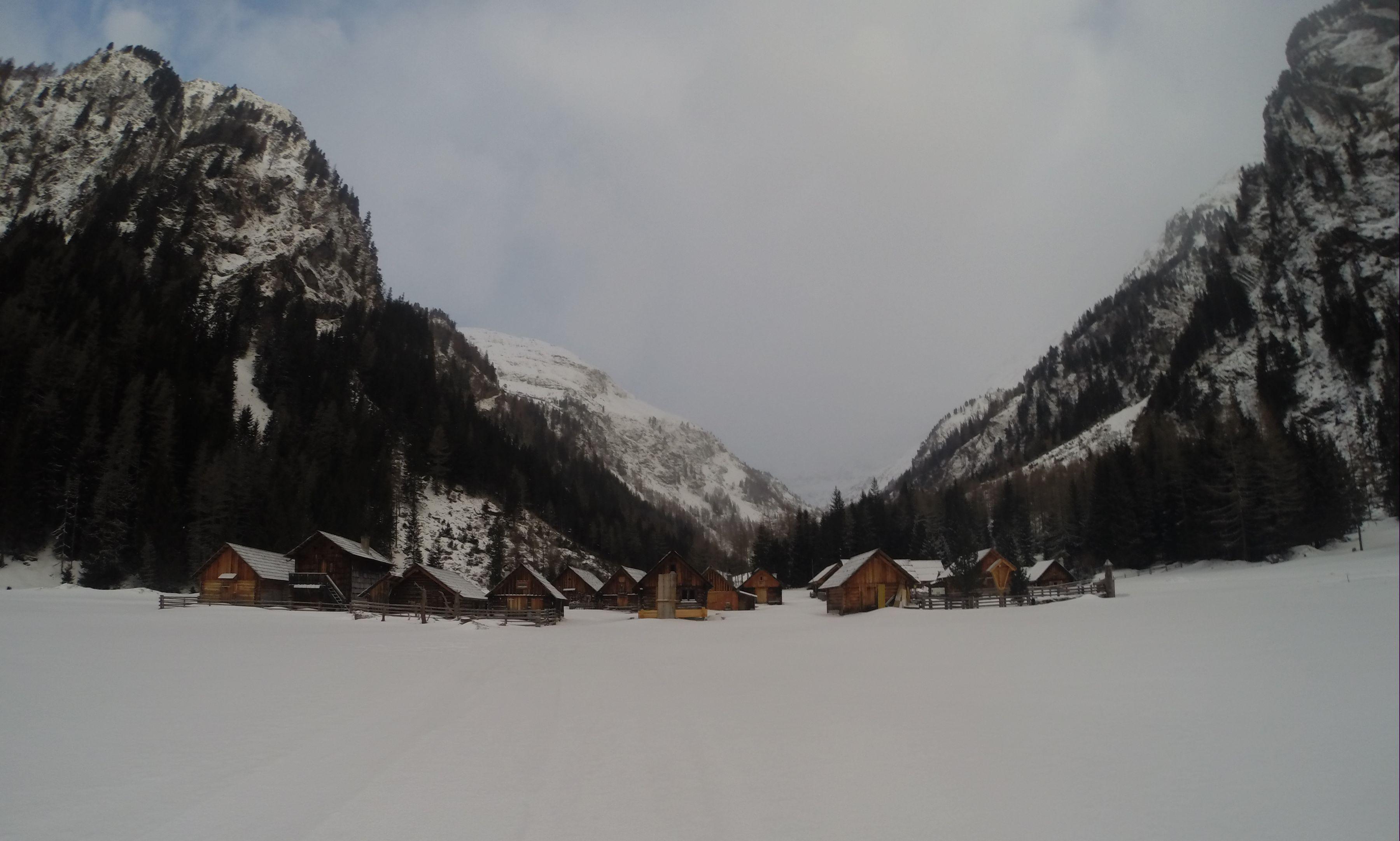 da heute Nordföhn angesagt war, wollte ich mal in den Lungau. Obwohl ich vorm wegfahren schon sehr verunsichert war über die Entscheidung, da vor der Haustür gut 20cm kalter Neuschnee lag. Nagut,.. gegen 6:30 gings von Hintergöriach bei sehr kalten und strengen Gegenwind Richtung Scharnock/Pietrach,.. das Göriachtal ist sehr schön und naturbelassen am Ende des Tals ist ein malerisches Hüttendorf, von da an steig es dann Richtung Göriachwinkel(ca.1800m) ca. 1std nis dahin meist Südausrichtung danach links haltend auf eine aufsteilende Scharte ab Landawirseehütte(ca.1950m) hat man das Ziel stets vor Augen(Nordost), und steig in alpiner Kulisse über 2 Kare auf, die den Weg vorgeben. Ein langer Zustieg zum Tourengelände, oben wartet eine tolle Landschaft mit dem mächtigen Hochgolling in engster Nachbarschaft. Es ist ein Abfahren bis zum Auto möglich obwohl es aufn Wanderweg zwischen Göriachwinkel und dem Hüttendorf falls kein Neuschnee dazukommt bald zum abschnallen.