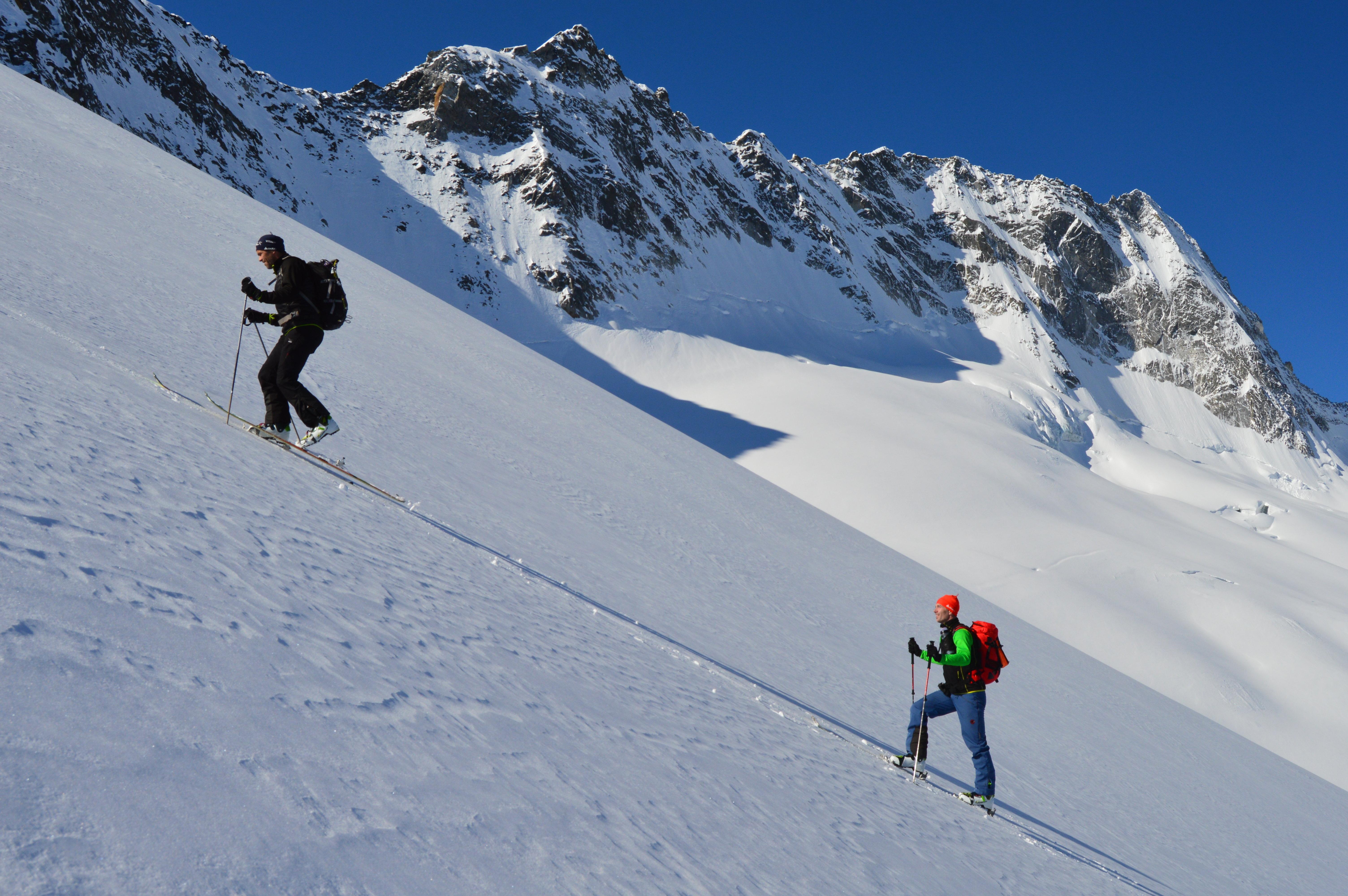 Blick von der Scharte auf unsere unberührten Abfahrtshänge