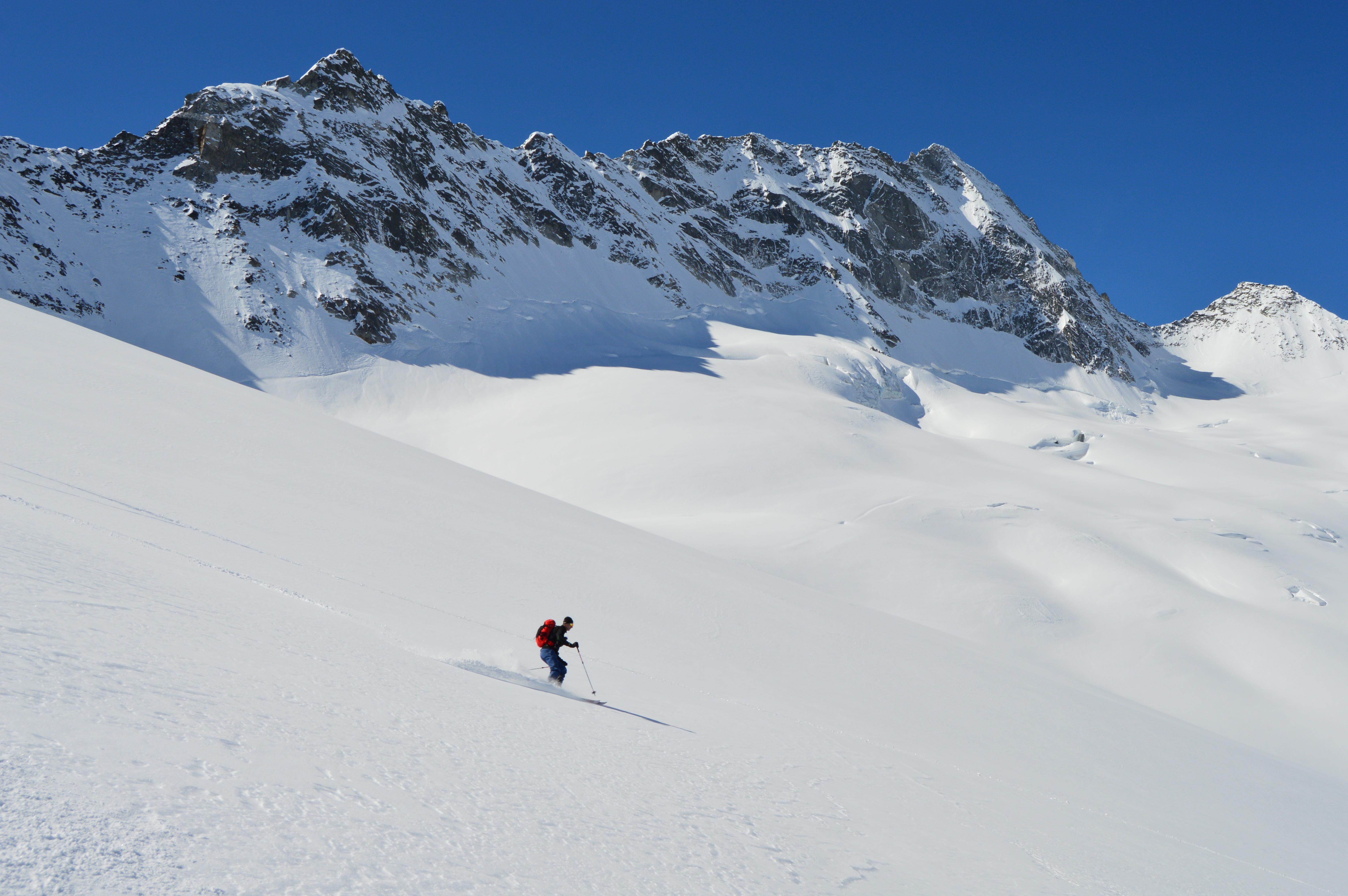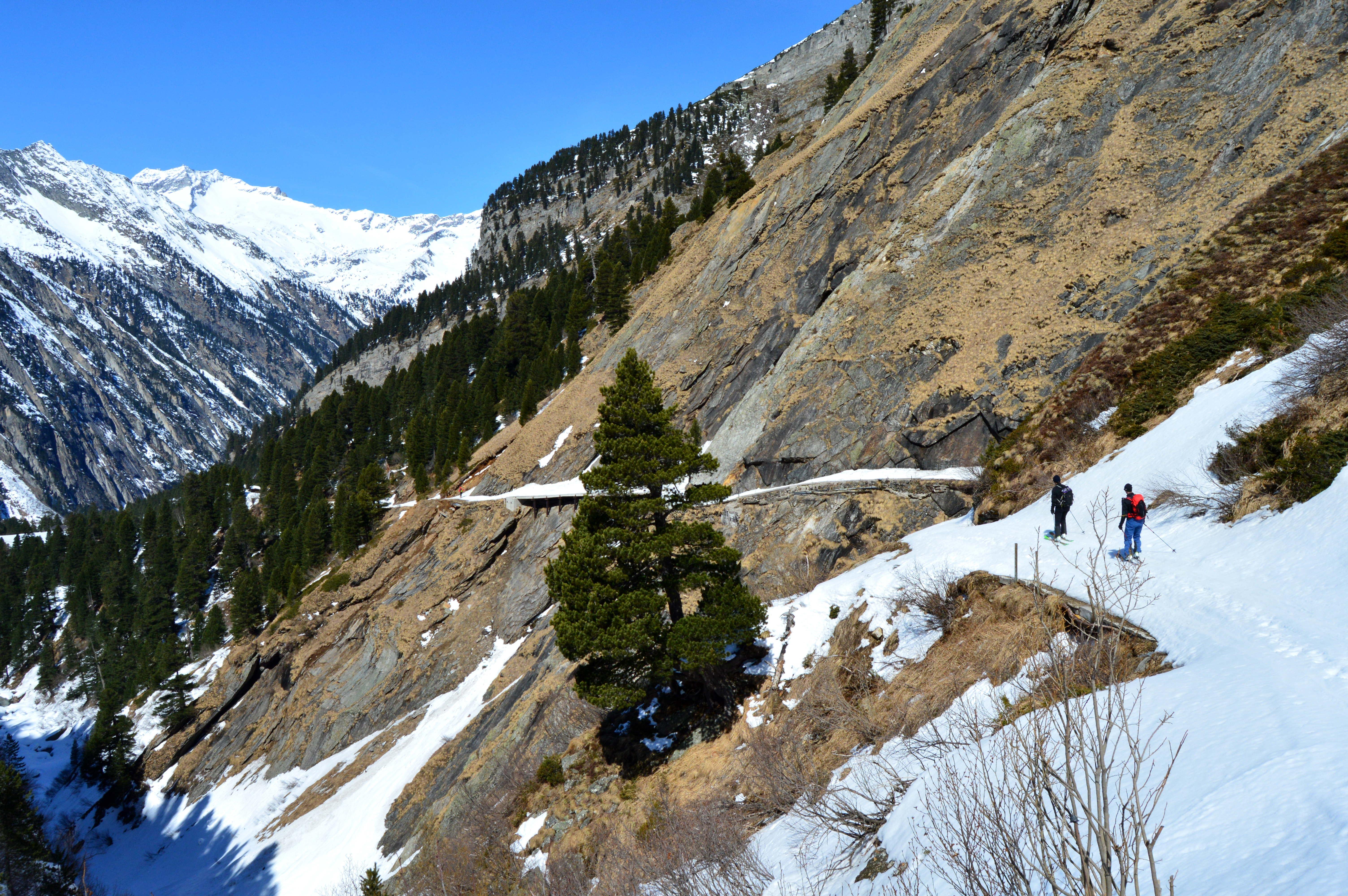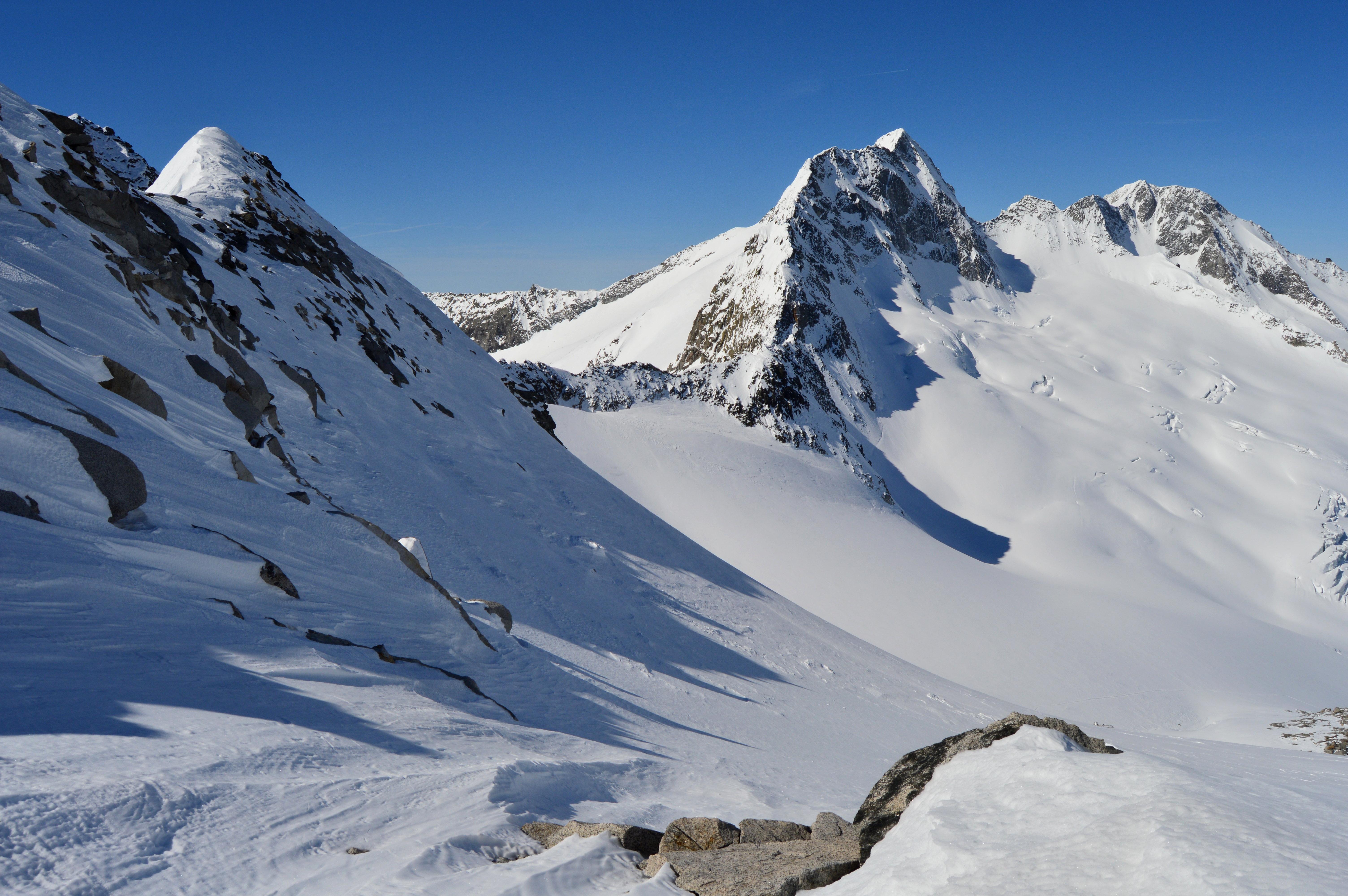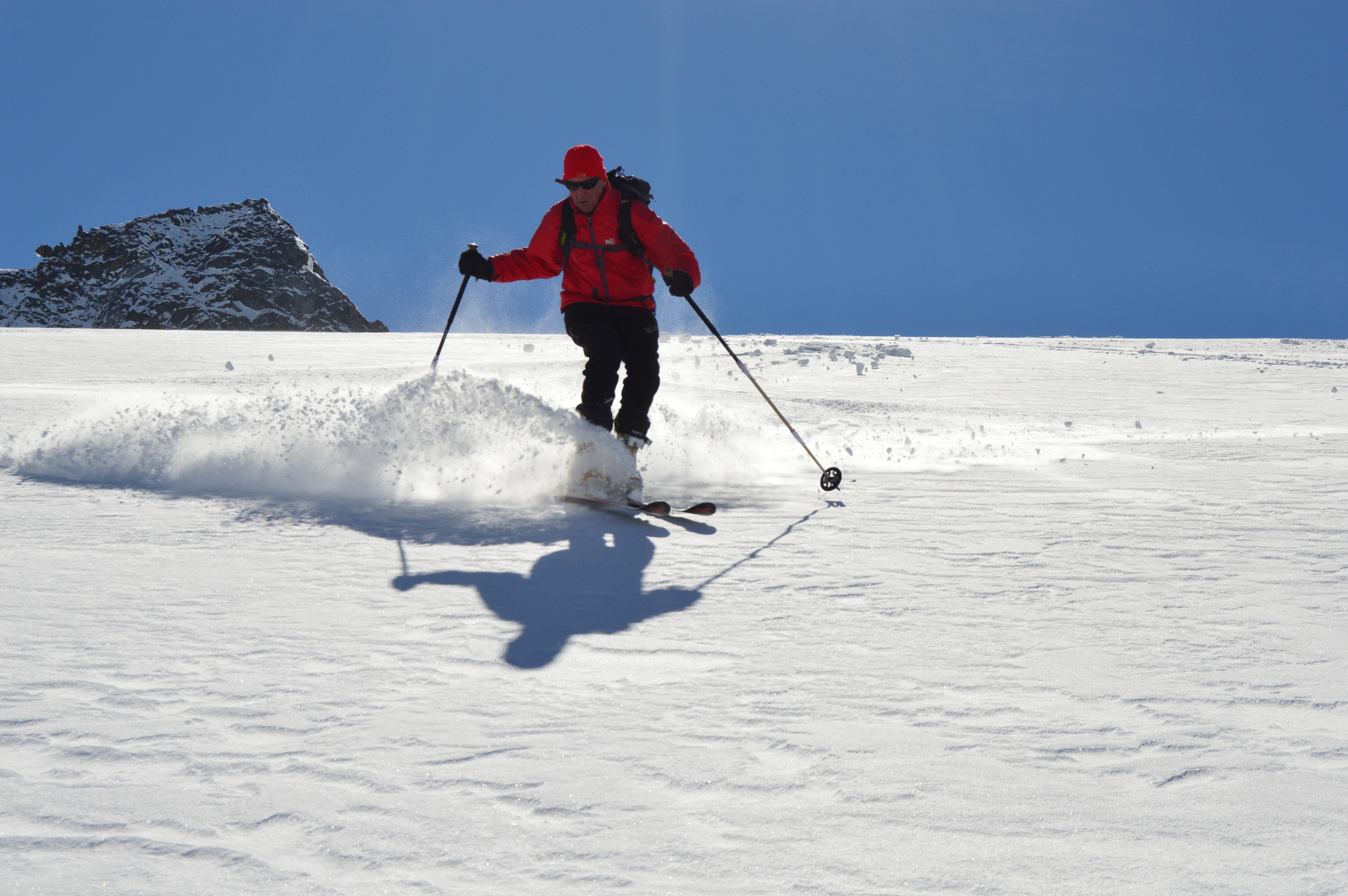 Die Tour ist noch vom Breitlahner weg mit Schi (bis auf 2-3 ganz kurze Unterbrechungen) möglich. Was allerdings die Erleichterung durchs Bike noch nicht möglich macht. Der Pulverschnee ging allerdings nur bis ca. 2200m runter. Der Wind hat vor allem unterhalb der Scharte deutliche Spuren hinterlassen. Unterhalb der Gletscherzunge war sportliches Wedeln im Bruchharsch angesagt.