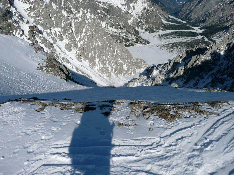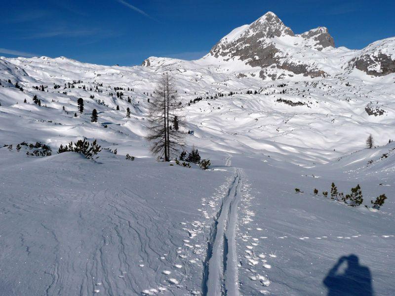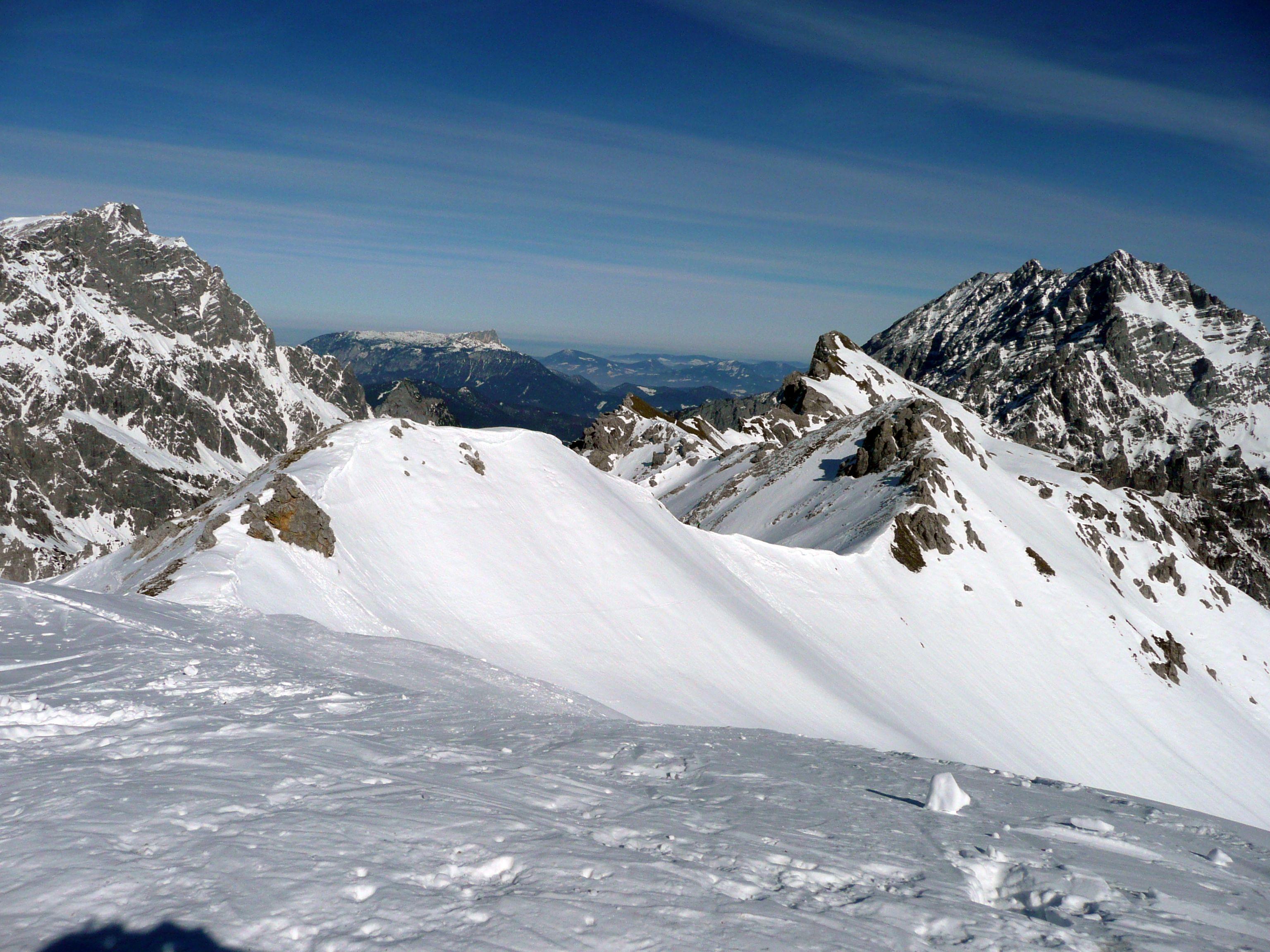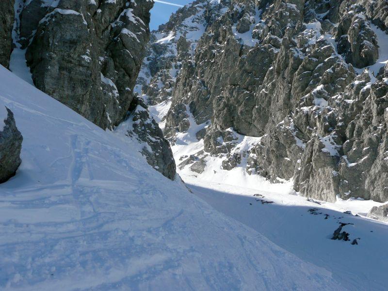 Wieder sind die Verhältnisse super, die Hochwies ist heute sehr angenehm zu fahren (Pulverschnee). Dann steht der letzte Anstieg (ca. 400 Hm) auf die Kematenschneid an. Von dort geht es zur Einfahrt in den Loferer Seilergraben, der schon gut besucht war und ebenso super zu fahren war.