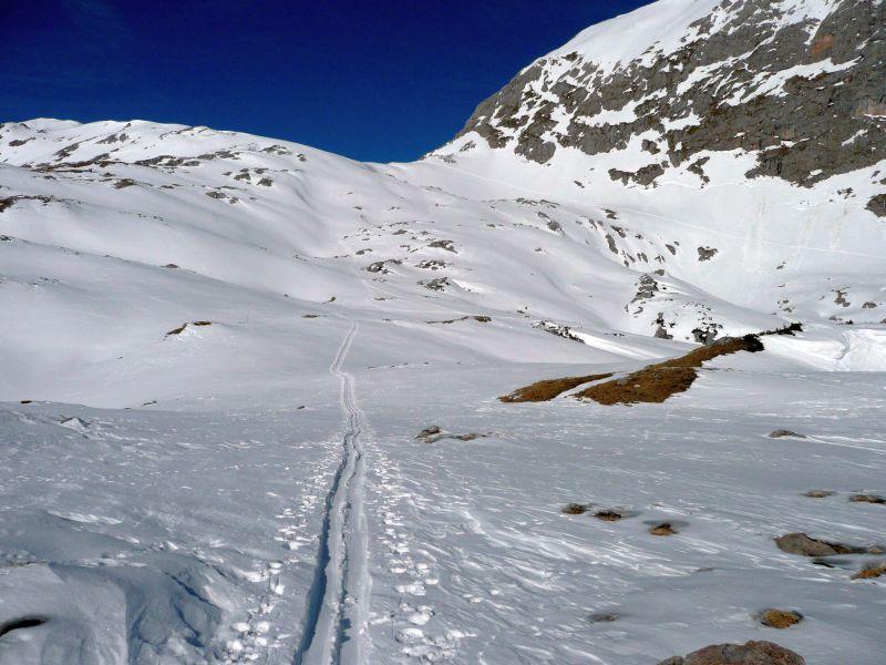 Das Wimbachgries kann momentan fast bis zu seinem Ende an der Wimbachbrücke mit den Skiern befahren werden. Das ist kaum noch zu toppen.