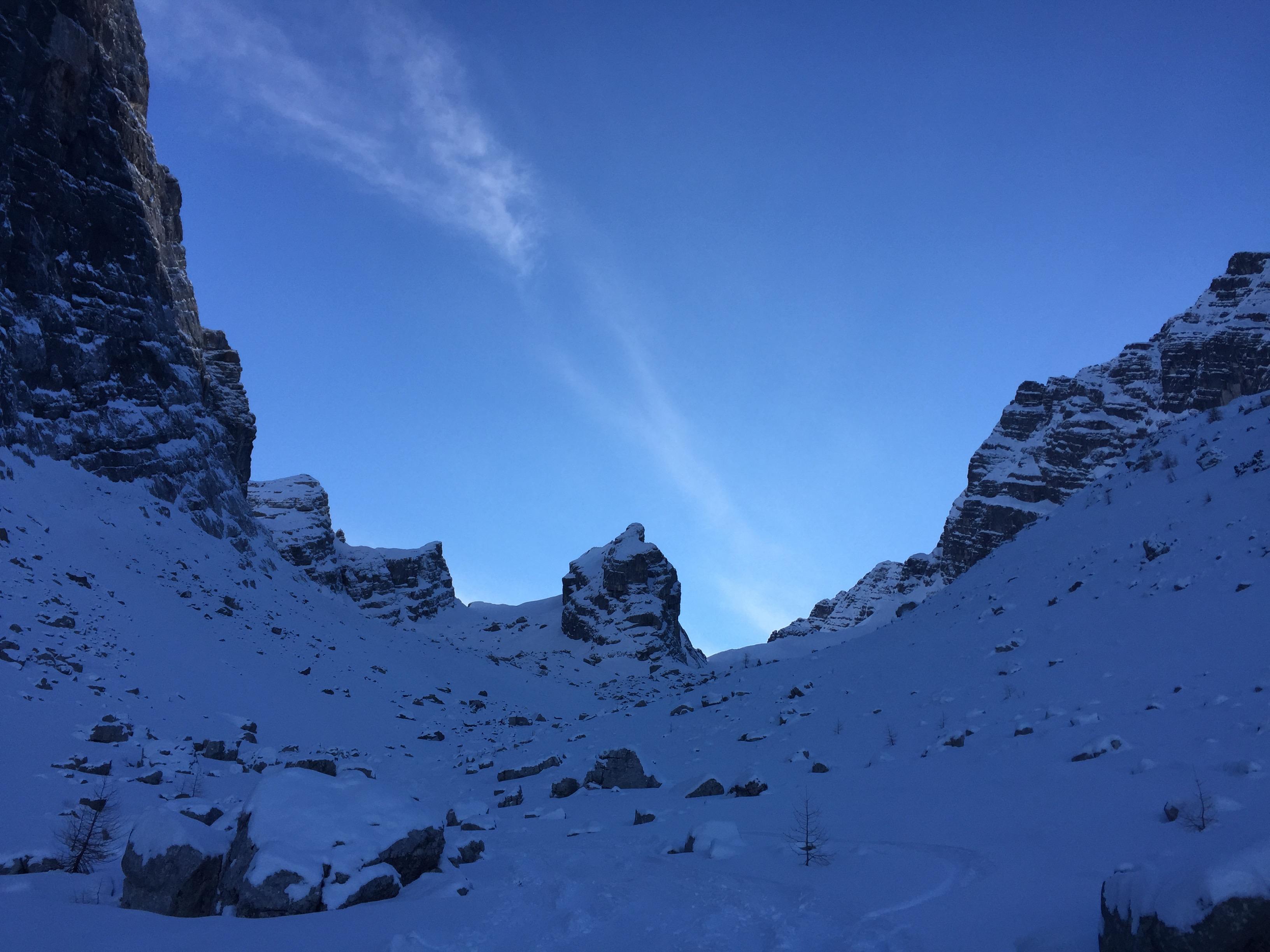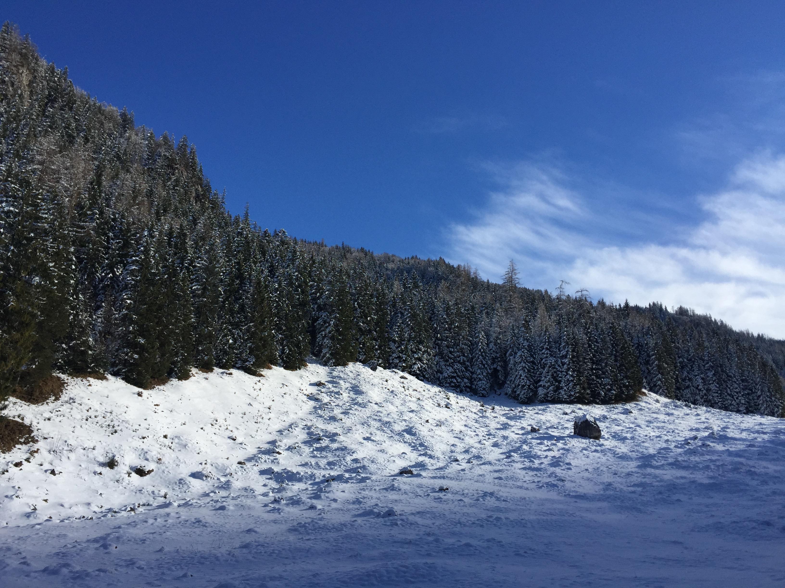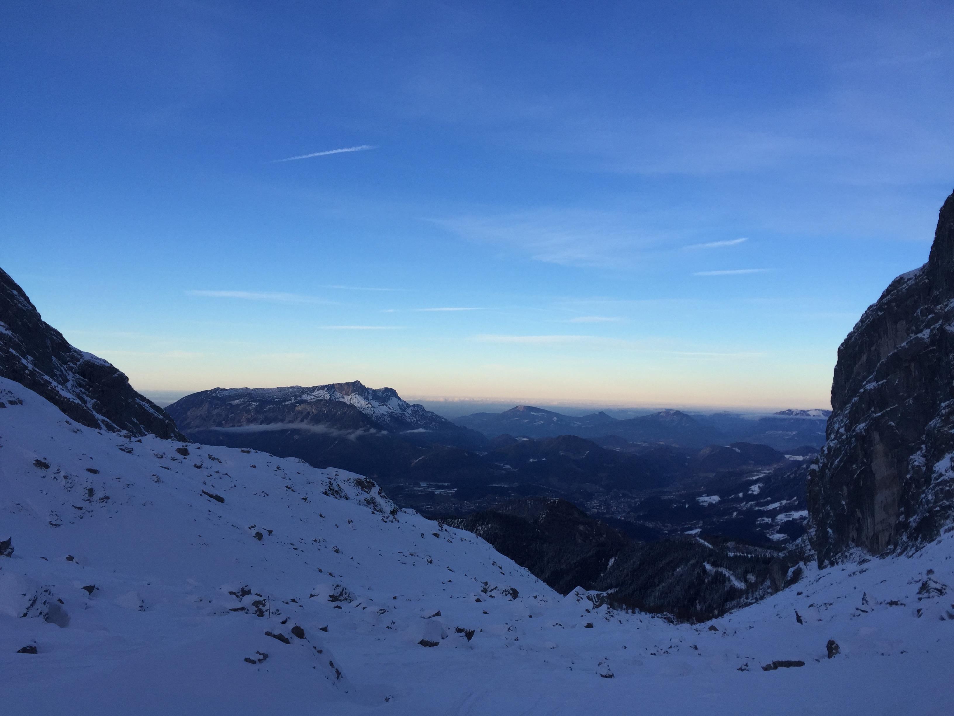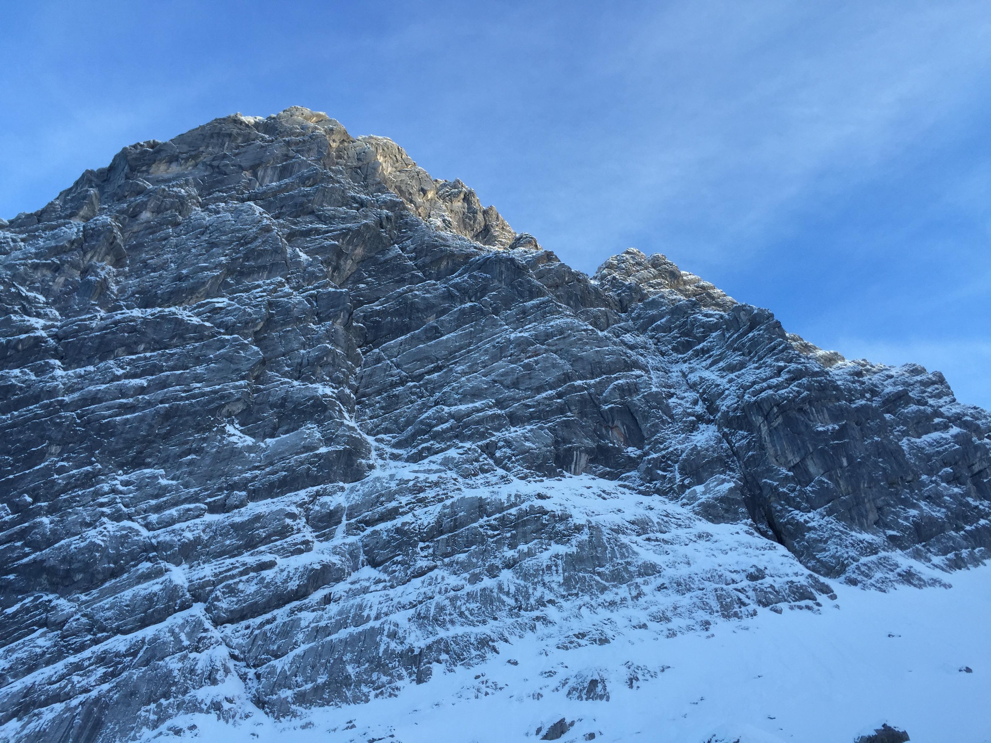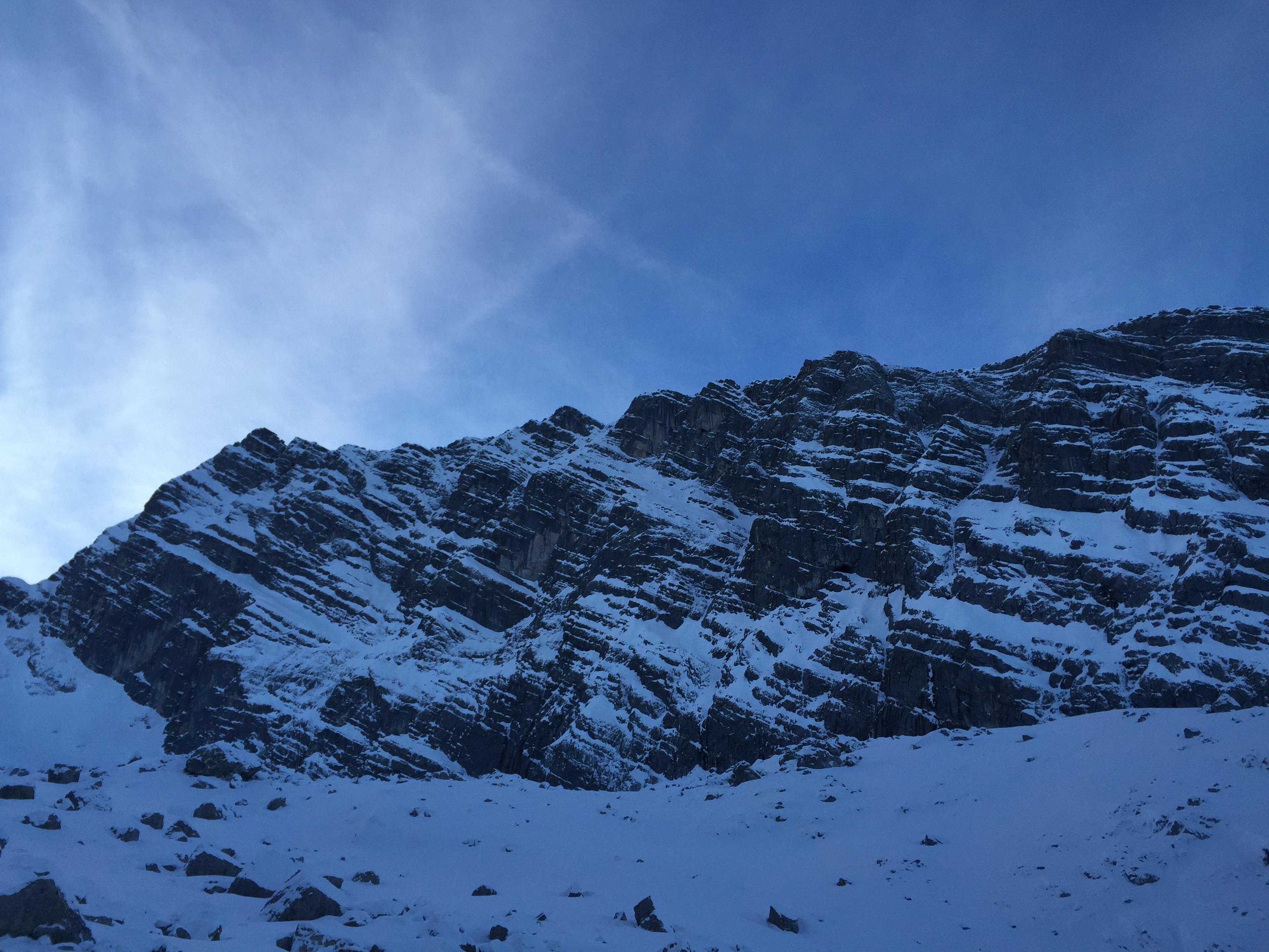 Start zur kurzentschlossenen Nachmittagstour vom Parkplatz Hammerstiel (nur ein anderes Auto da), auf der Kührointstrasse bis zur Benzinkurve und ab da auf der typischen Route ins Watzmannkar (oberhalb des Falzsteigs weitestgehend parallel zur Skiaufstiegsspur). Einzige Begegnungen waren die mit zwei Fahrzeugen auf der Kührointstrasse, im am Wochenende gefallenen Neuschnee viele Spuren vom Vortag.