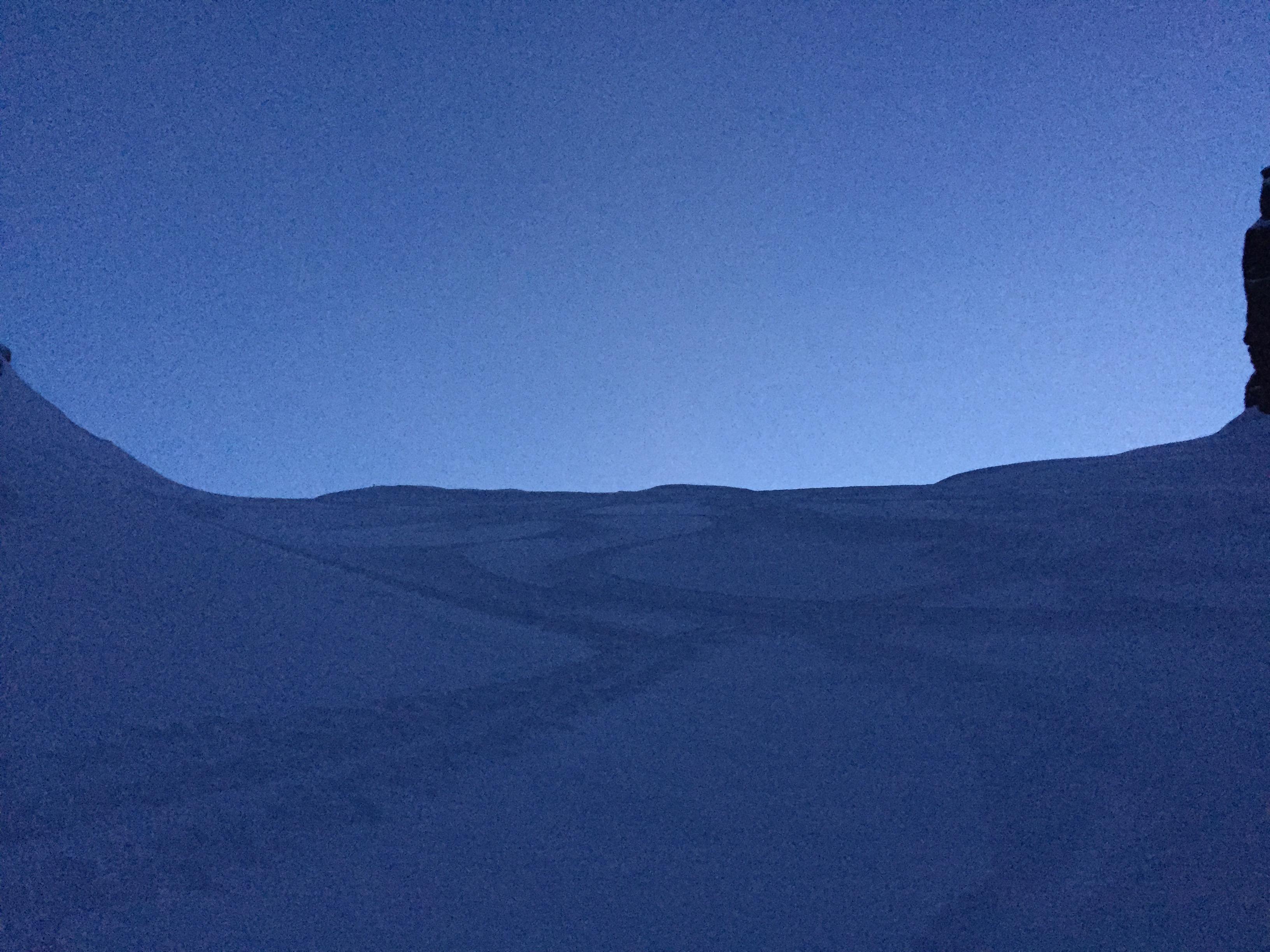Besonderheit: Im Watzmannkar nach oben hin sowie am Gipfelhang des Dritten Kindes noch einiger Platz für weitere Abfahrtsspuren im Pulverschnee! ;-)