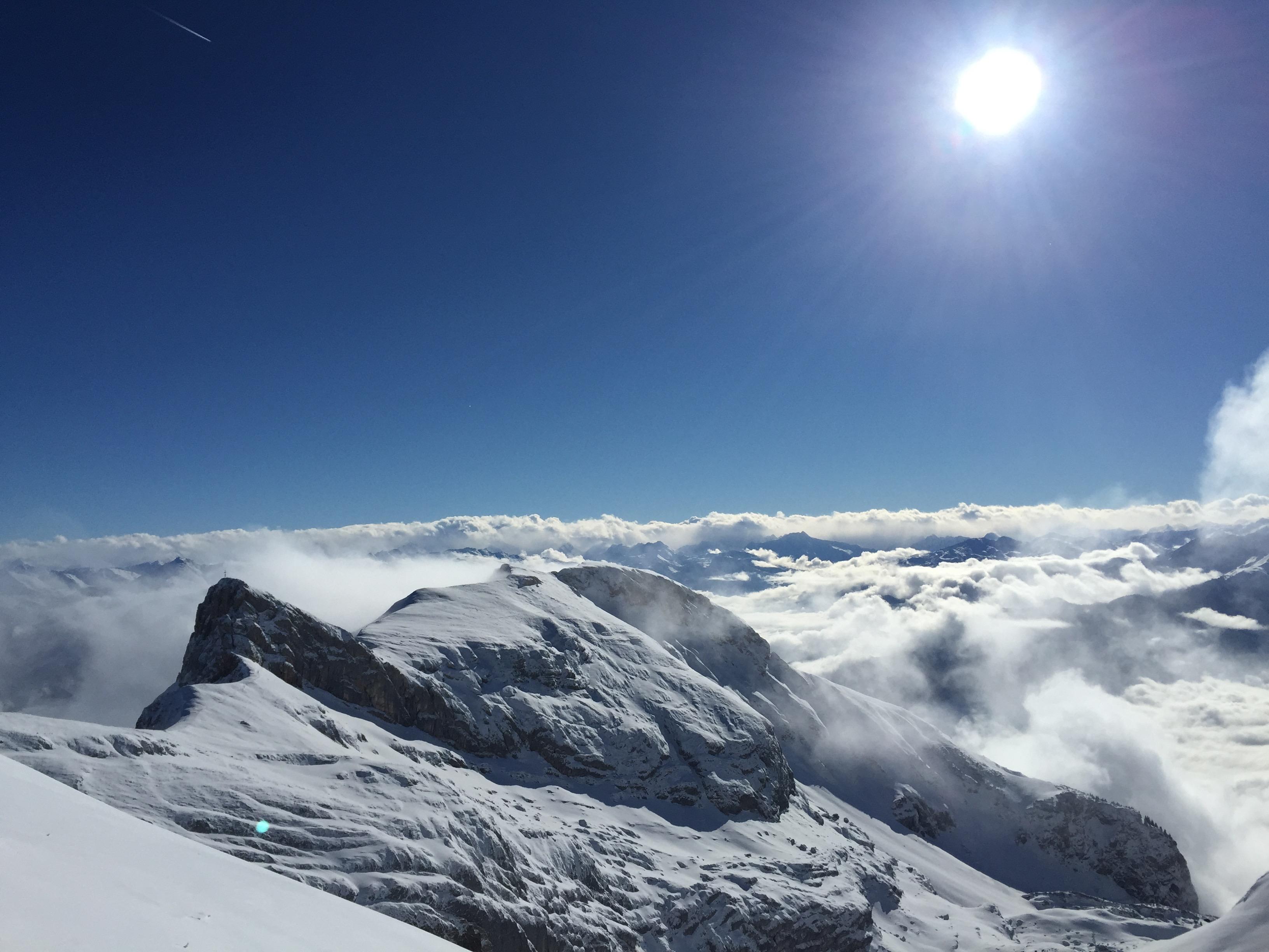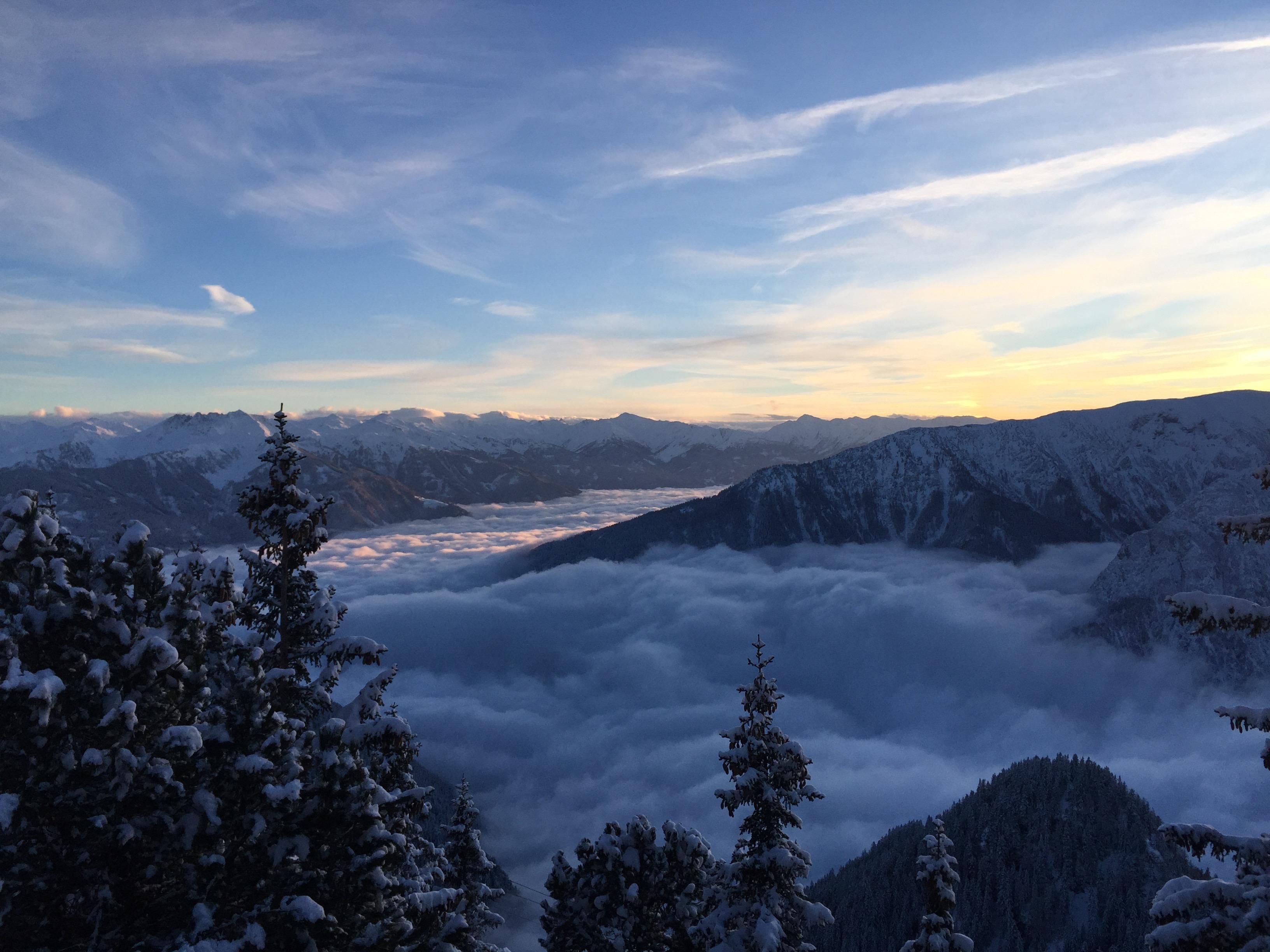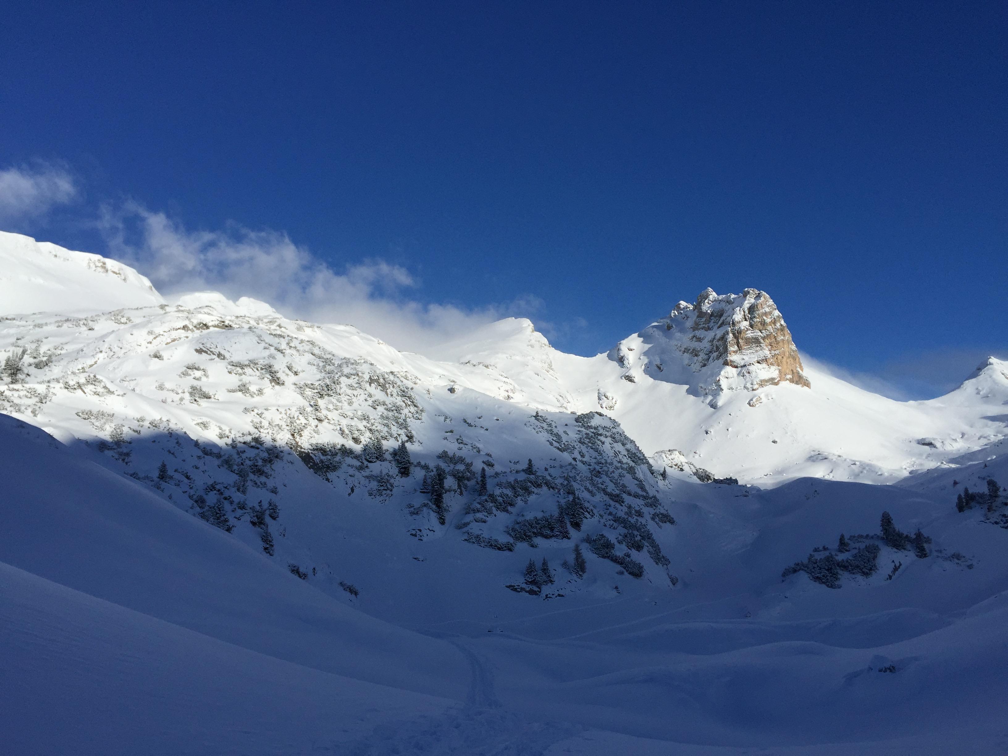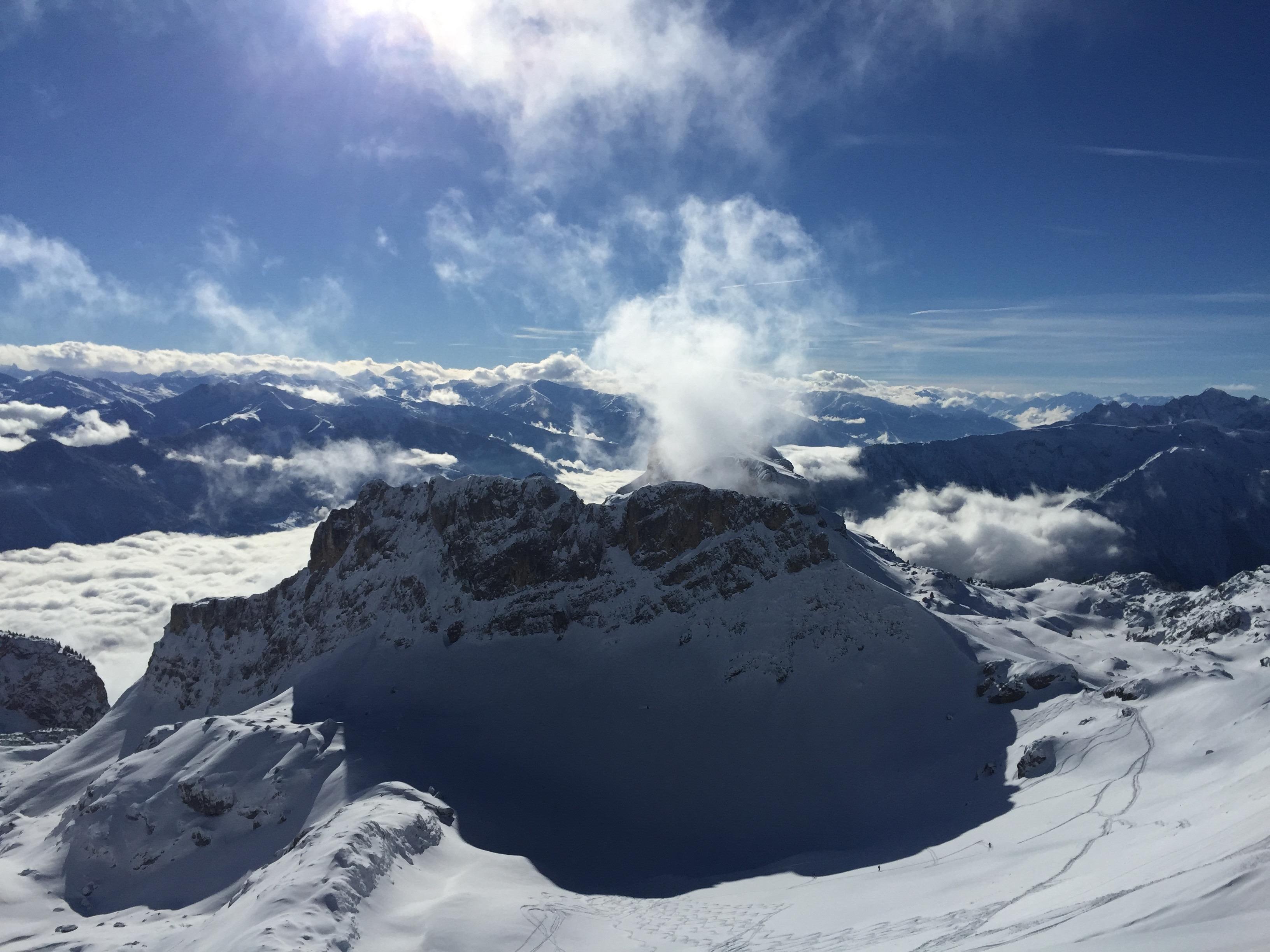 Auf etwa 15 cm frischem Pulverschnee und drunter Altschnee in variabler und insgesamt geringer Höhe im wechselnden Lichtspiel zur Rofanspitze, der Gipfelhang wegen fehlendem Schneefundament etwas unangenehm zu gehen, am Gipfel stürmisch mit deutlichen Schneefahnen und eiskalt, dafür ein phänomenales Panorama in alle Richtungen.