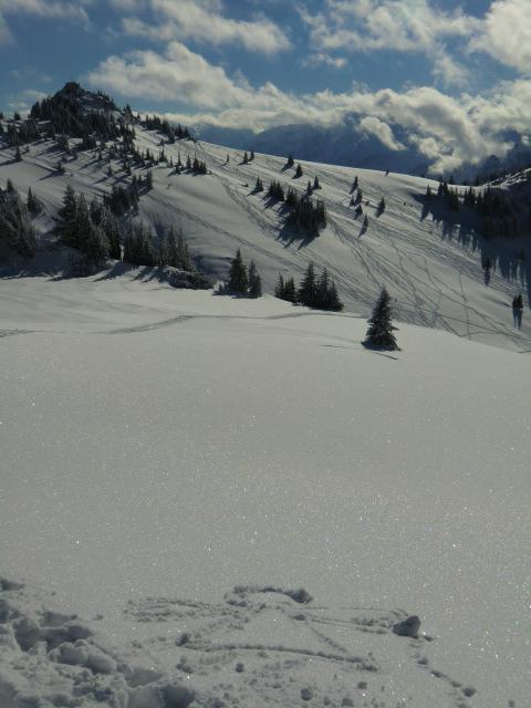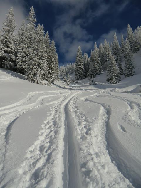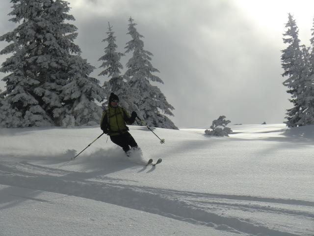 Das war ja klar, daß es heute ein Pulverschneegewühle geben wird. Die frische Lieferung bescherte uns >50cm lockeren Staubzucker - ein süsses Vergnügen oben oben bis unten incl. intermediärer Kaffeepause am sonnigen Schrempfkaser. Alles hat passt. Die blaustichigen Bilder waren unvermeidbar.