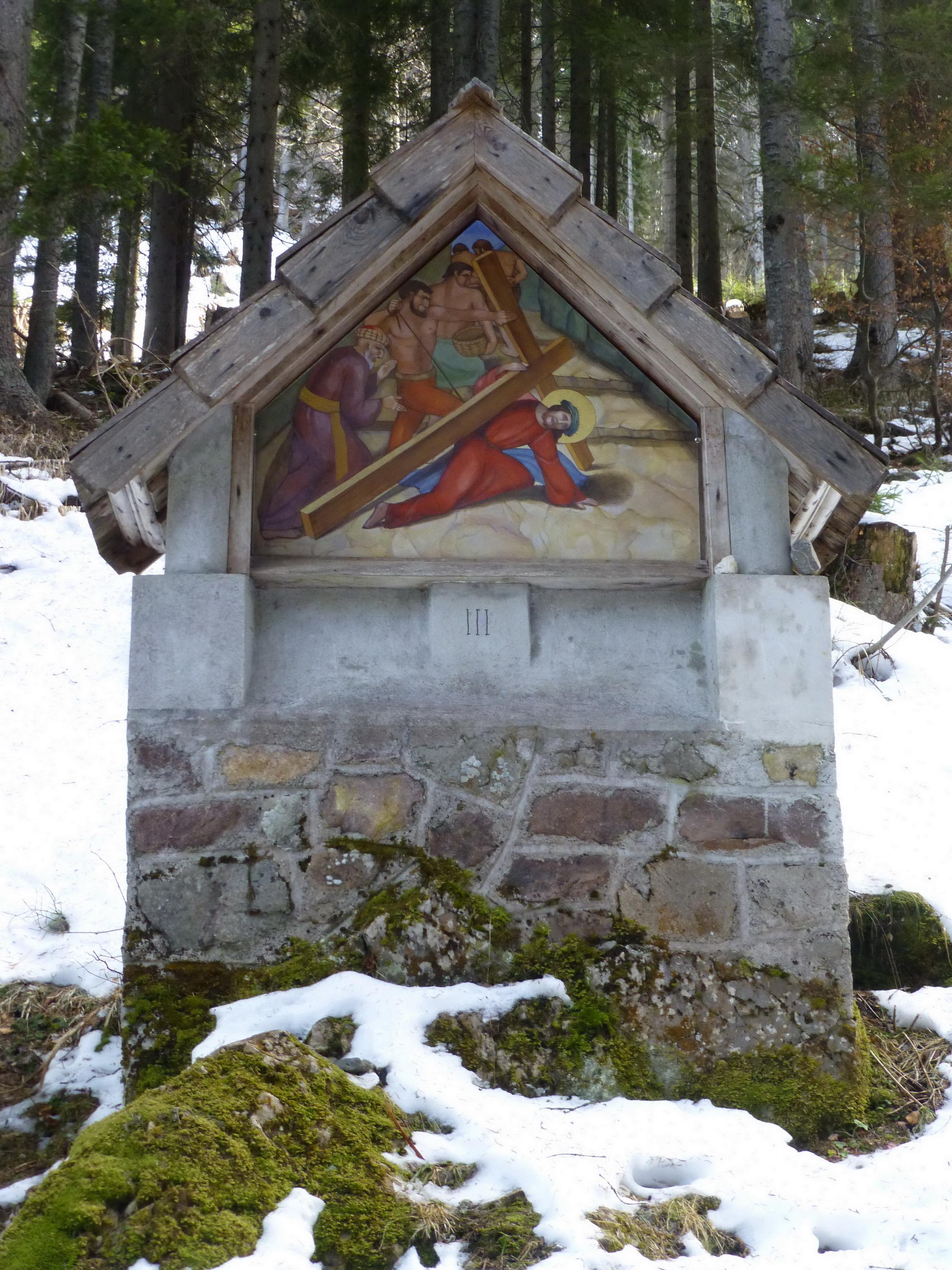 über den Kreuzweg Richtung Monte Lussari/Svete Visarje/Luschariberg - am Sattel Abzweigung nach links zum Cacciatore...